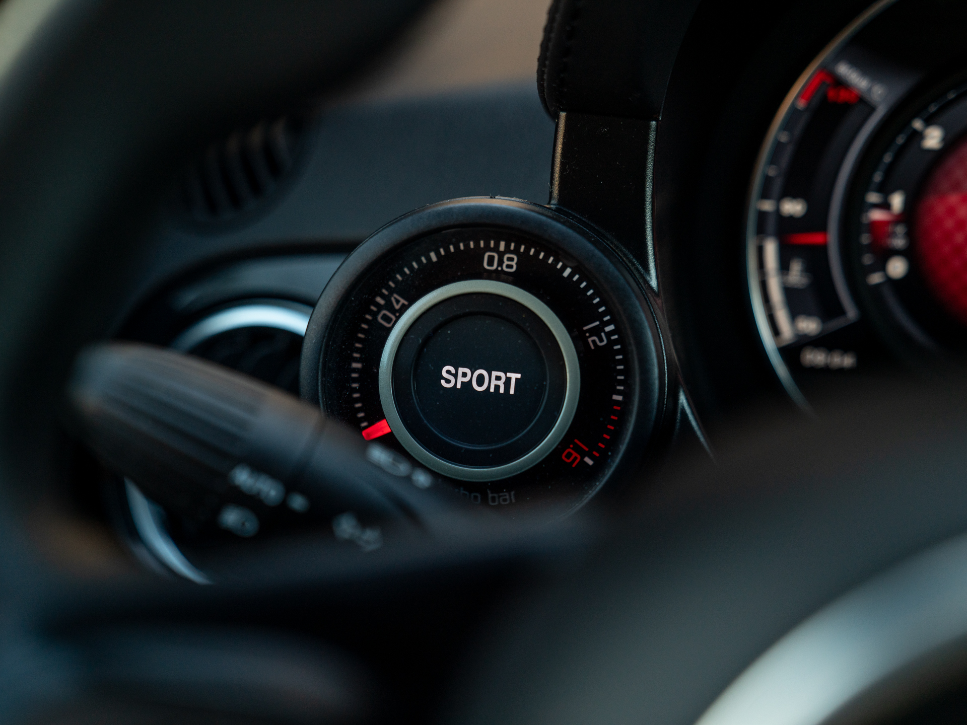 Van binnen vinden we fraaie half-lederen/alcantara zetels met Tricolore en type-aanduiding in de hoofdsteunen. De handbak in combinatie met de pittige 1.4-turbomotor zorgt gegarandeerd voor een glimlach op ieders gezicht.