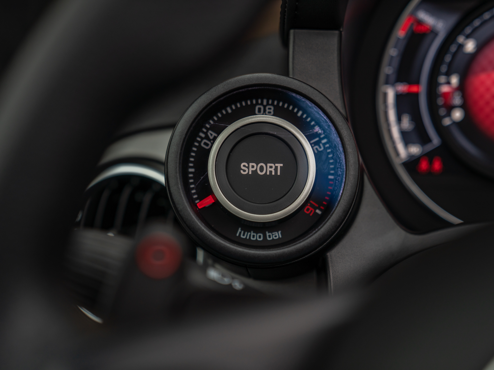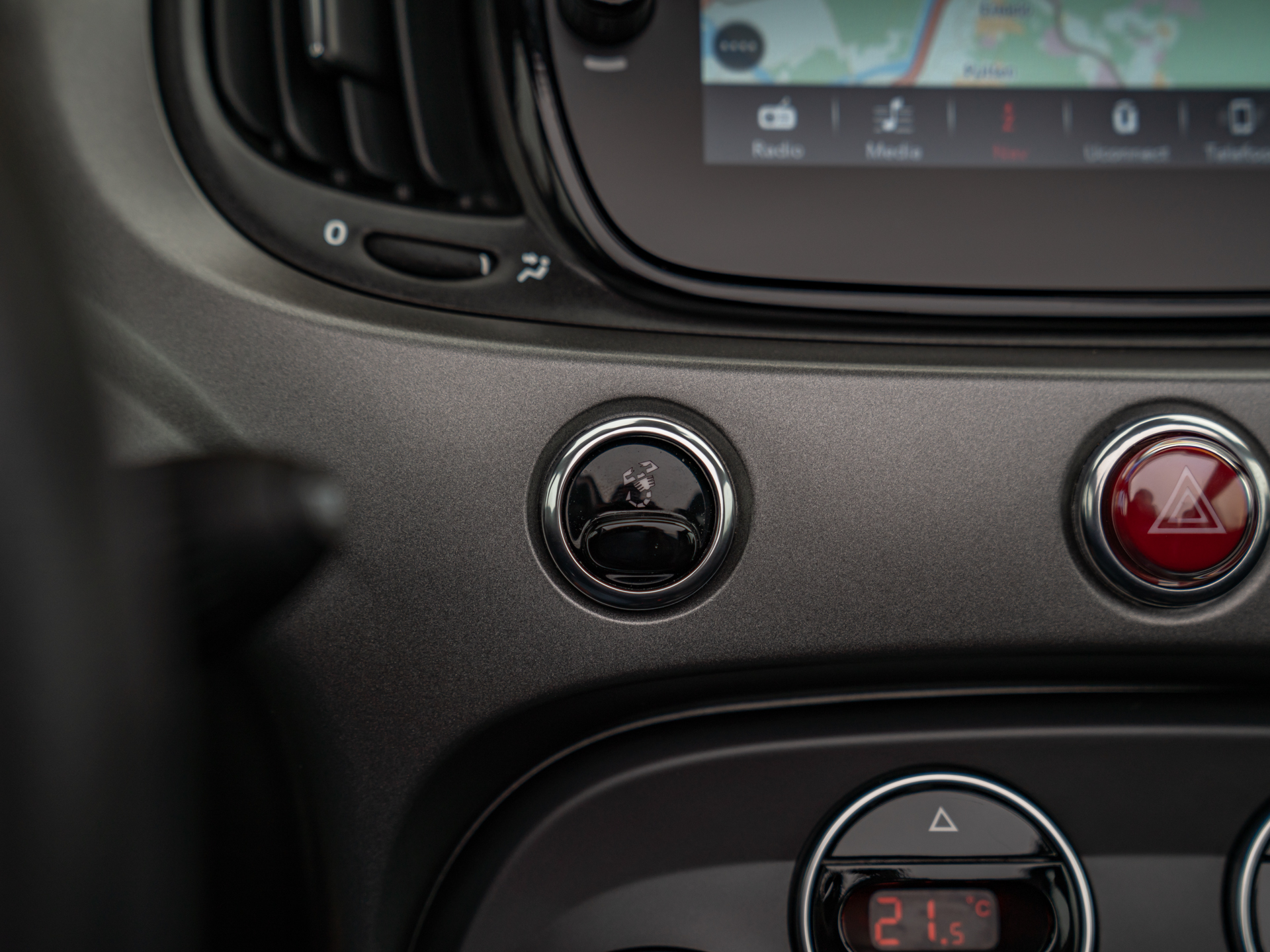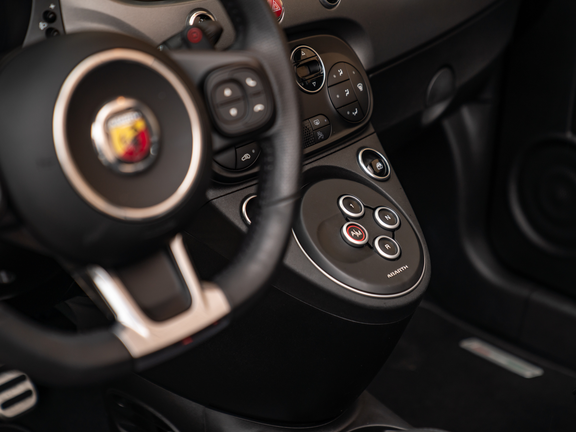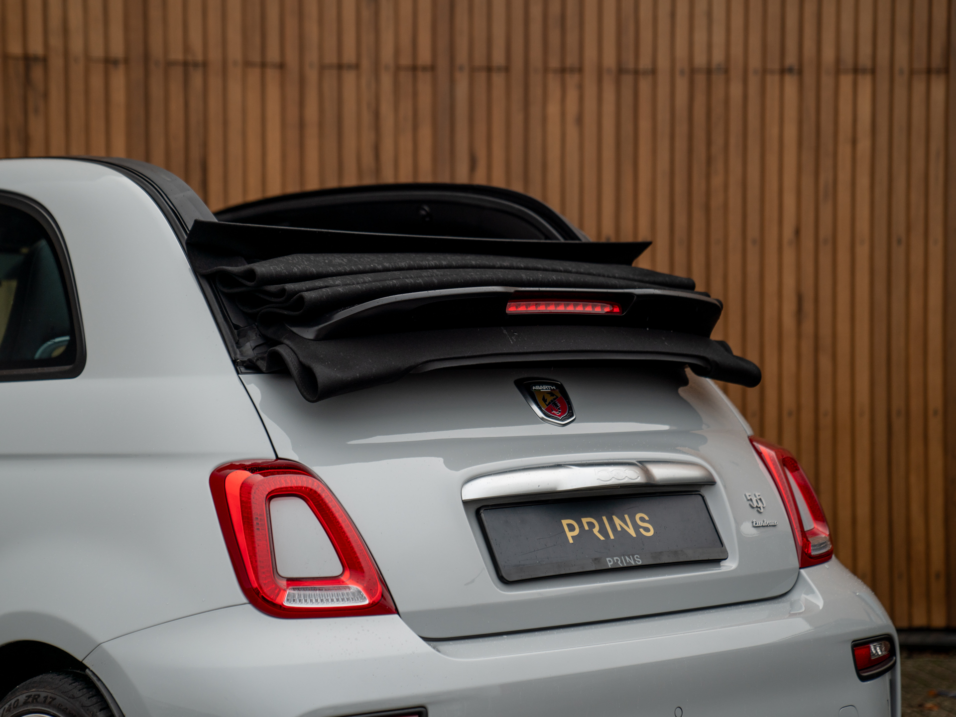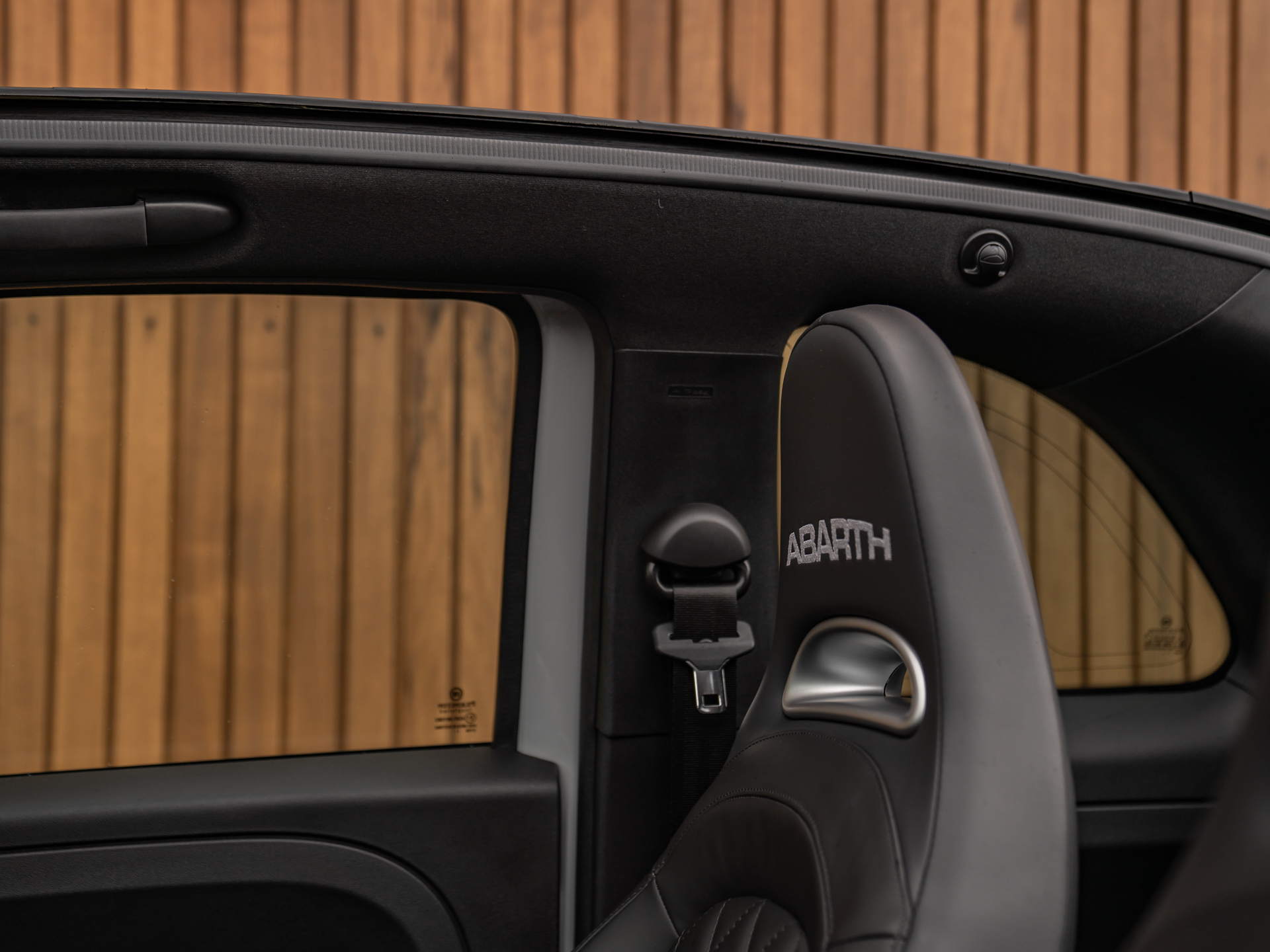 Nieuw binnen: Abarth 595 C Turismo in het Grigio Campovolo met super chique Nero lederen interieur voorzien van Diamond stitching en extra’s als Beats audio en Xenon koplampen.