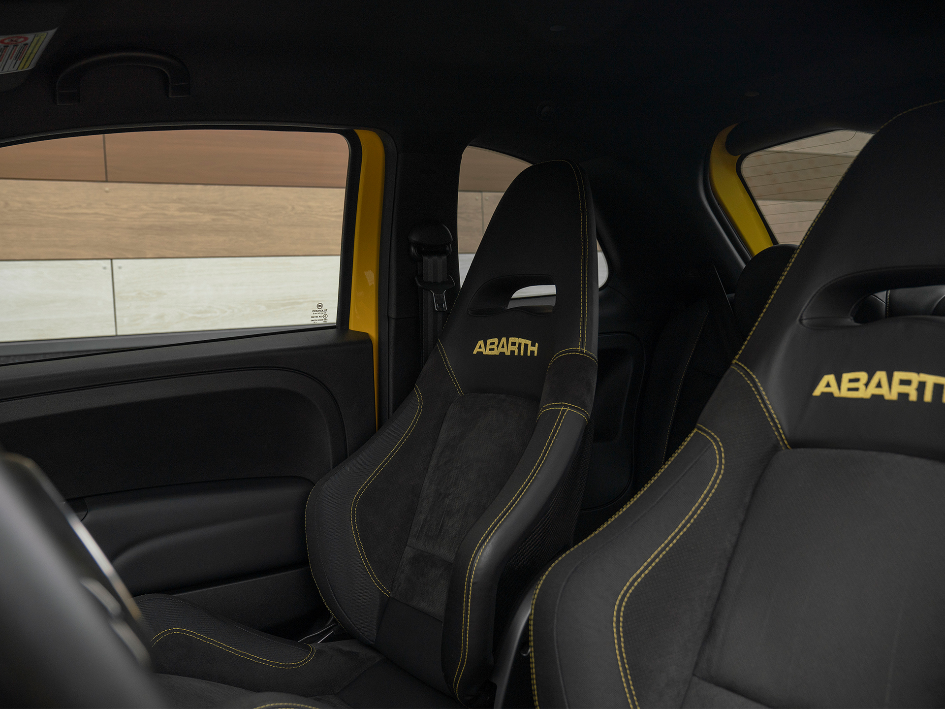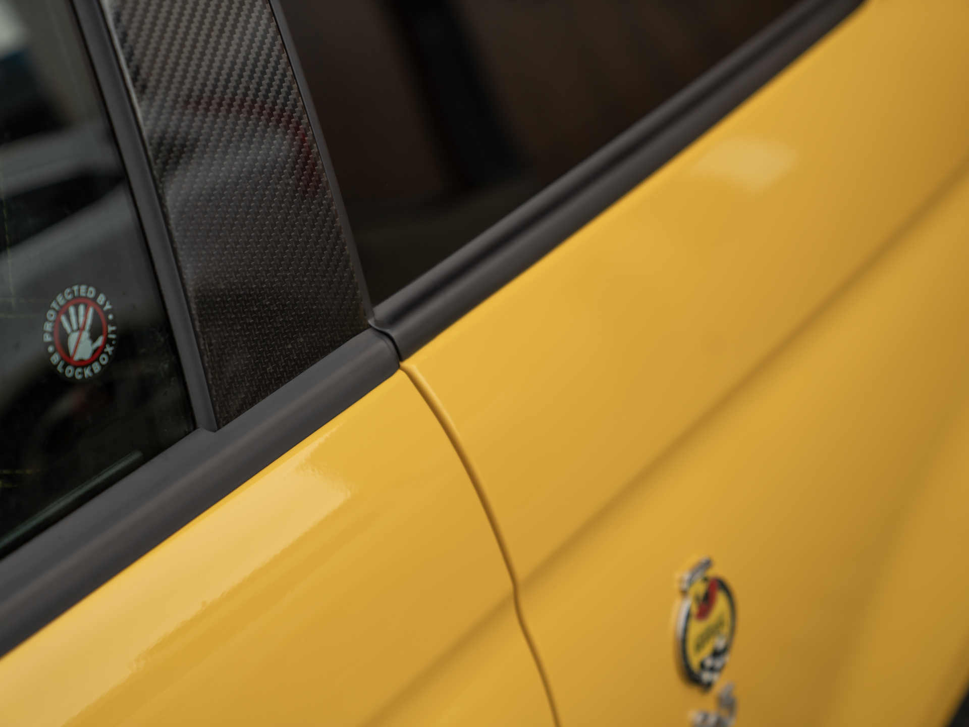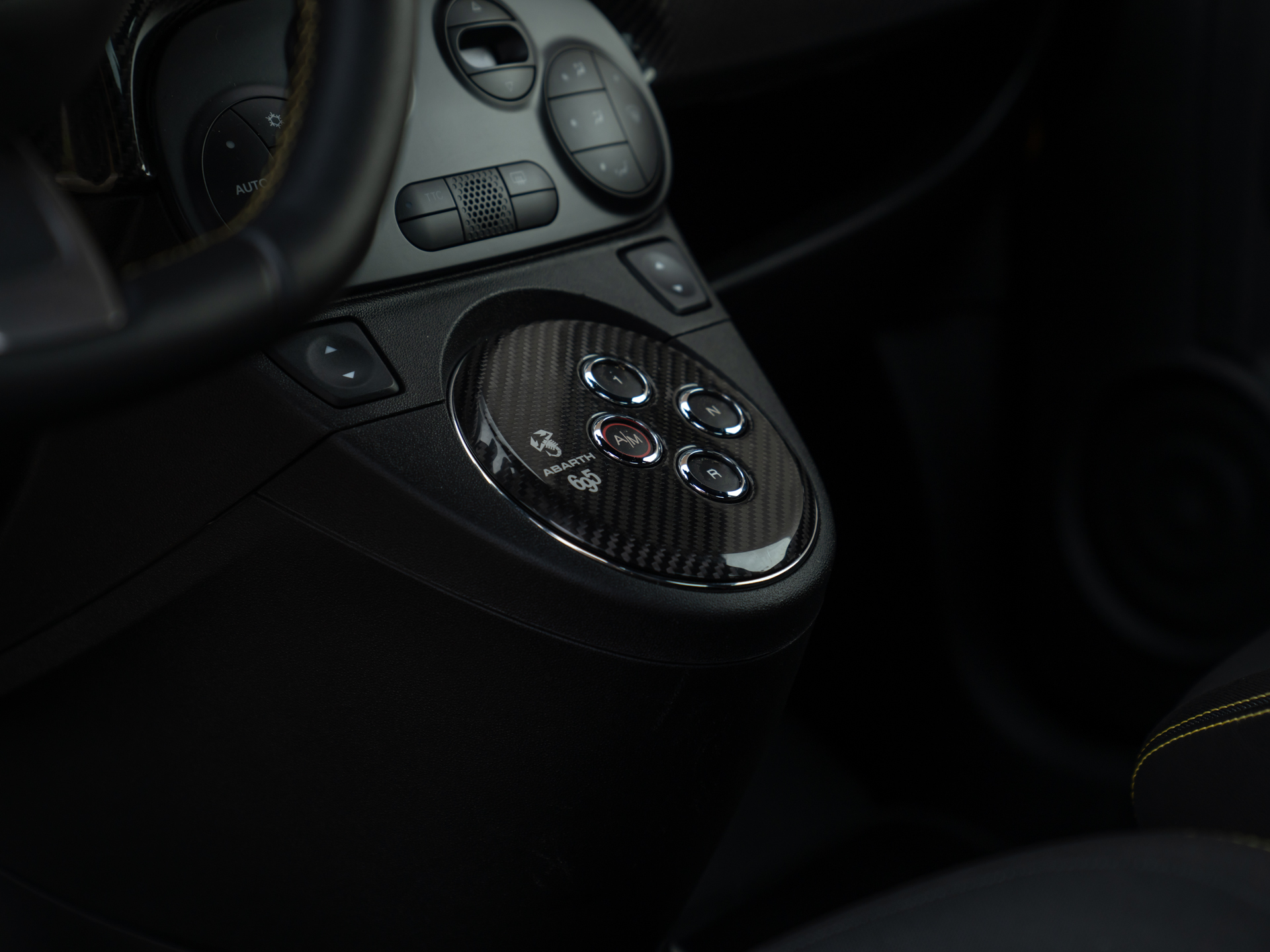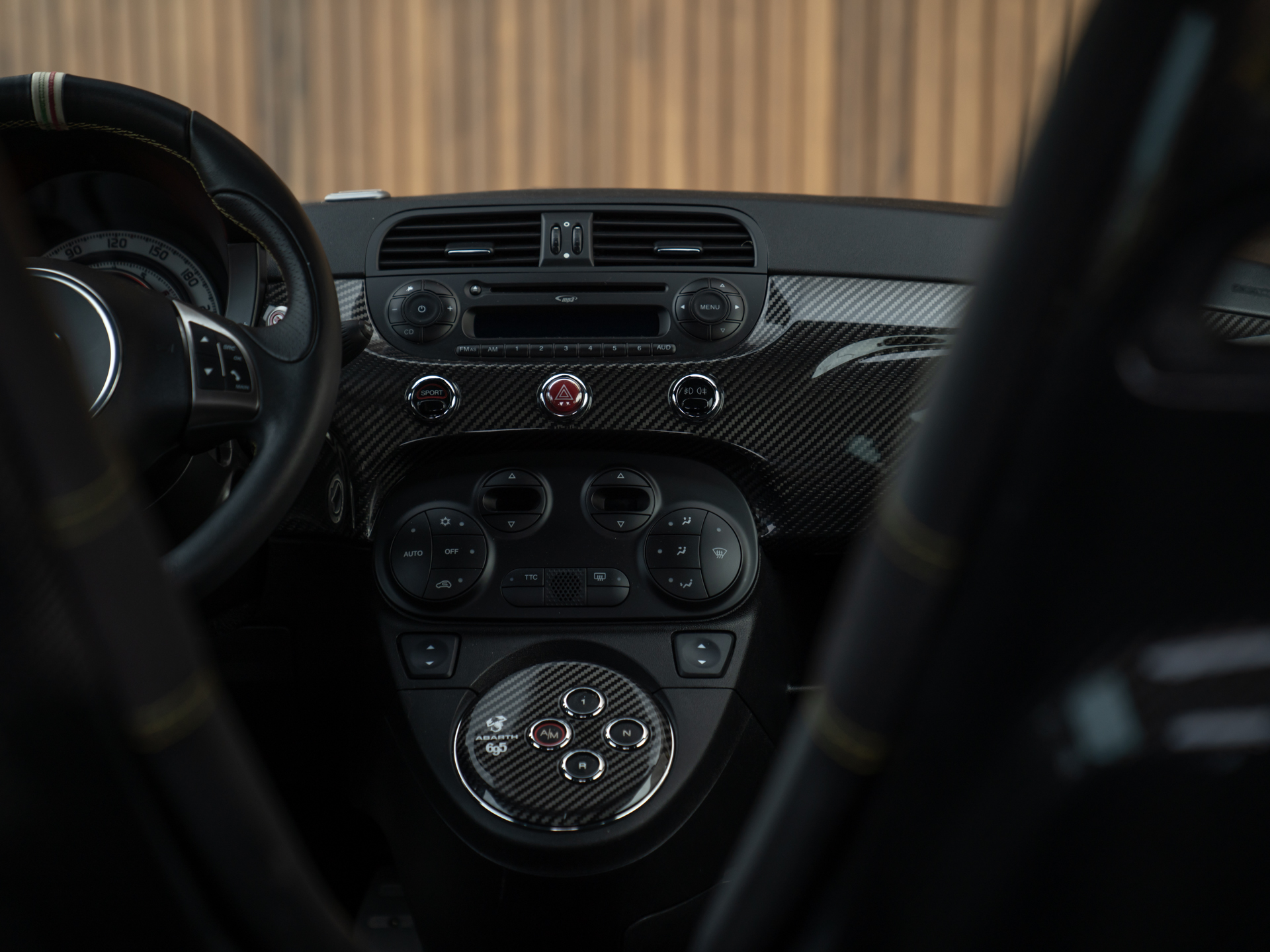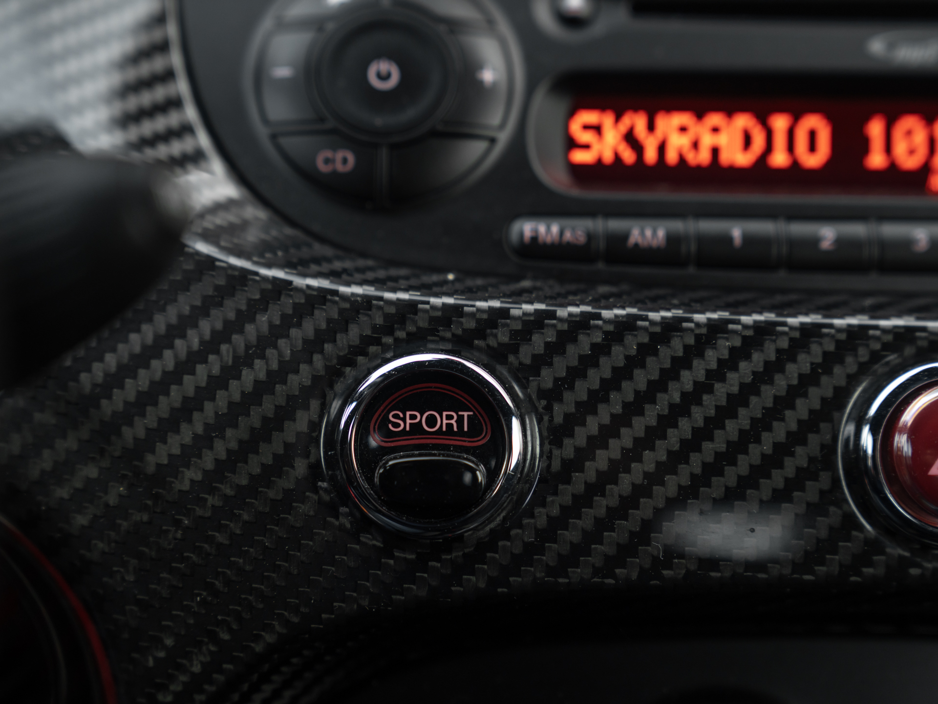 De ‘Abarth Corsa by Sabelt’ stoelen zijn per stuk maar liefst 10 kilo lichter dan de standaard exemplaren. Carbon is er sowieso ‘all-over the place’: onder andere het dashboard, de afwerking bij de bediening van de automaat en de b-stijlen zijn bekleed met carbon! Verder heeft Abarth de Tributo Ferrari voorzien van een “Record Monza” variabele ‘back pressure dual mode’ uitlaatsysteem.