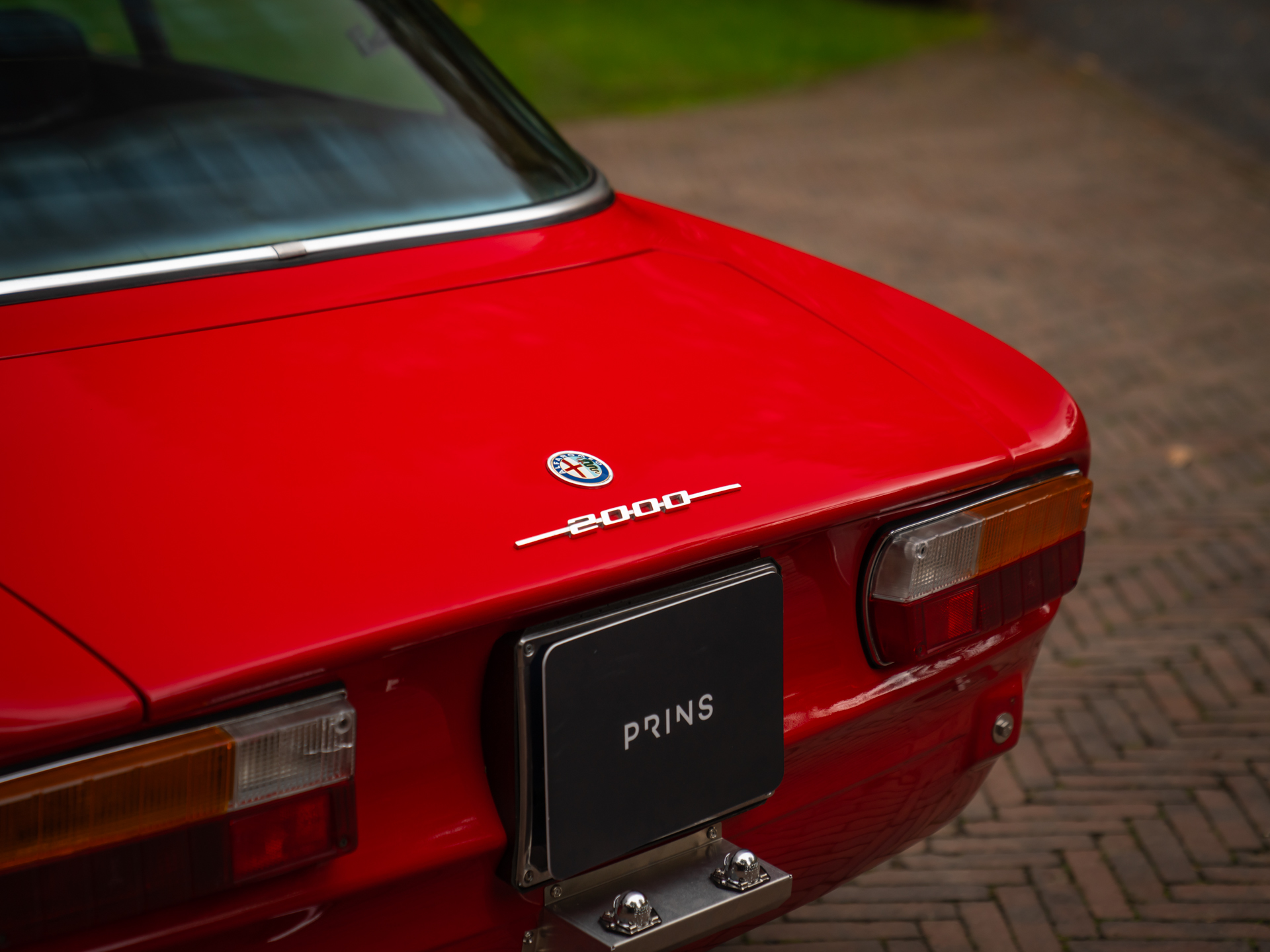 Designlegende Giorgetto Giugiaro is een natuurtalent. De Alfa Romeo 105/115 Coupé waarop deze GTV 2000 gebaseerd is, was namelijk zijn eerste grote project. Hij werd ingeschakeld door Bertone, het ontwerpbureau dat verweven is in de modelbenaming van de zogenoemde Alfa GTV “Bertone”. In samenwerking met Giugiaro kwam één van de meest iconische auto’s tot stand. Uniek, zeker in de betaalbaardere klasse. De GT Veloce – kortweg GTV is nog eens extra begeerlijk. En de 2000-versie is degene die het sportieve autohart het hardst najaagt. De zeldzame GTA daargelaten, is dit toch wel het topmodel onder de klassieke Alfa Coupés.