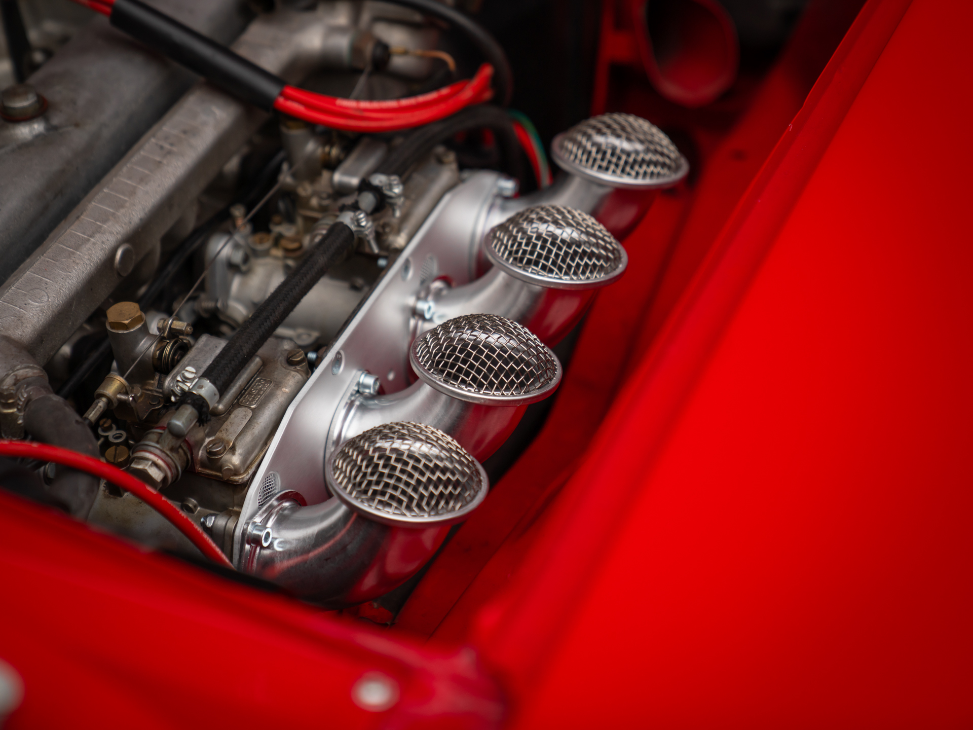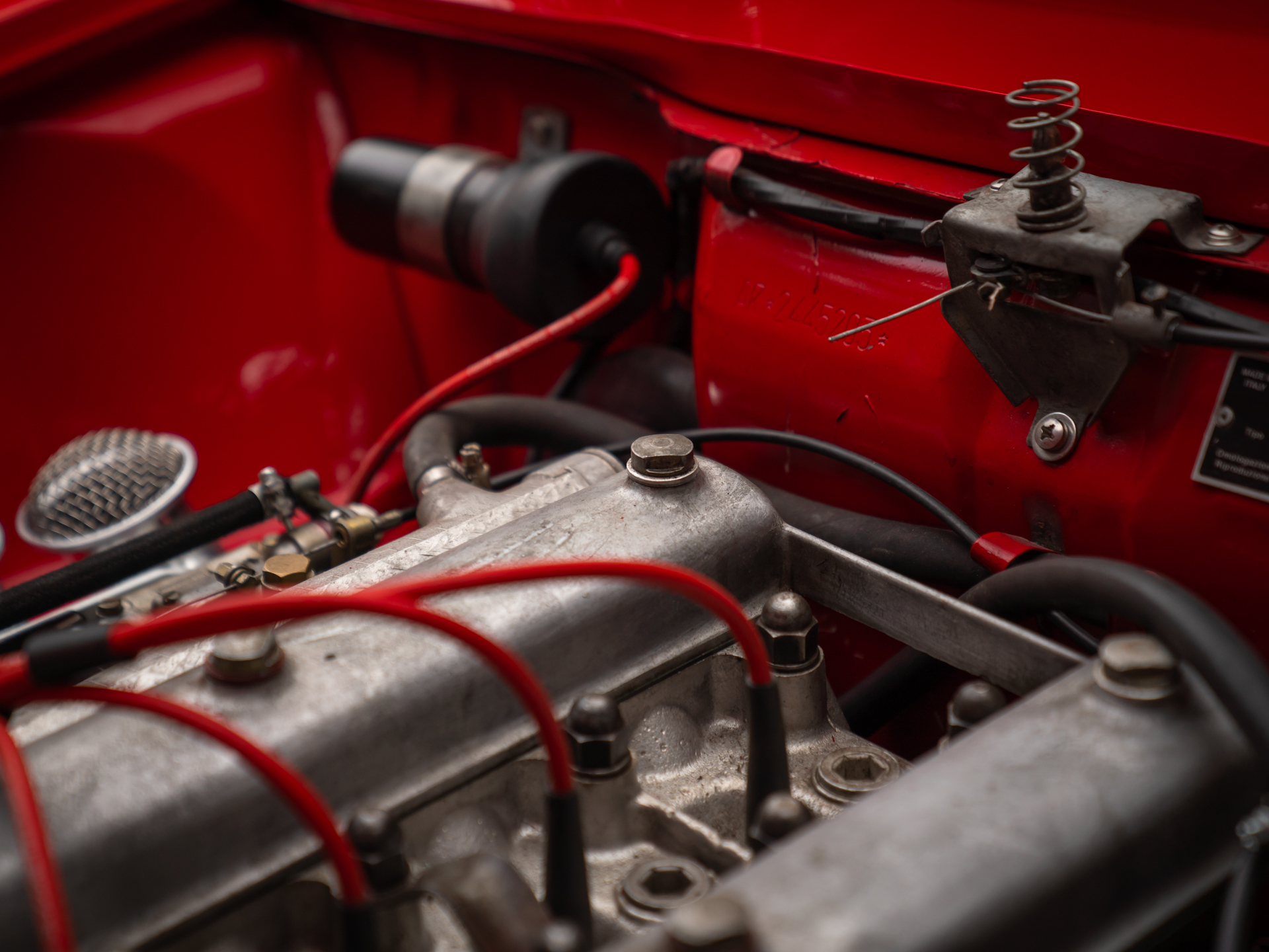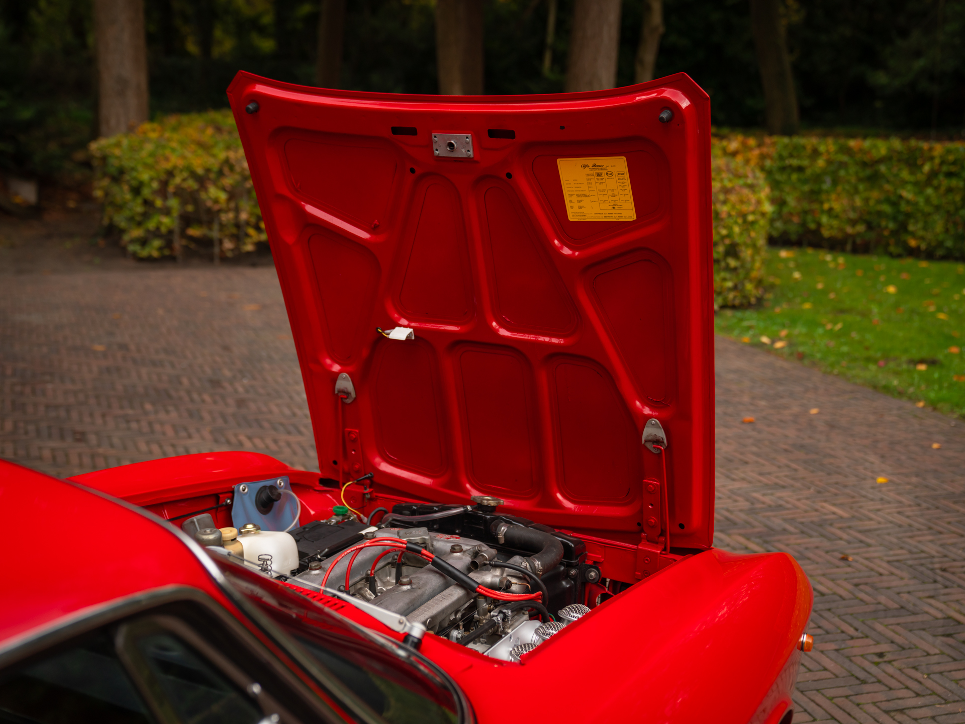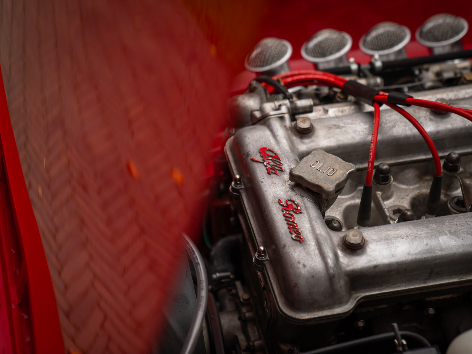 De toevoeging “Veloce” doet zijn naam eer aan door de 4-cilinder Twin Cam motor van extra inhoud én paarden te voorzien; respectievelijk 2,0 liter en 132 pk. Gekoppeld aan een manuele 5-bak, worden enkel de achterwielen aangedreven. Kortom, alle ingrediënten voor een sportieve rijervaring zijn present. En ook het motorgeluid is hierop afgestemd! De roffel is iconisch, verslavend en nostalgisch. Precies datgene wat ervoor nodig is om de volgende liefhebber achter het stuur te krijgen van deze prachtige Alfa “in Rosso”.