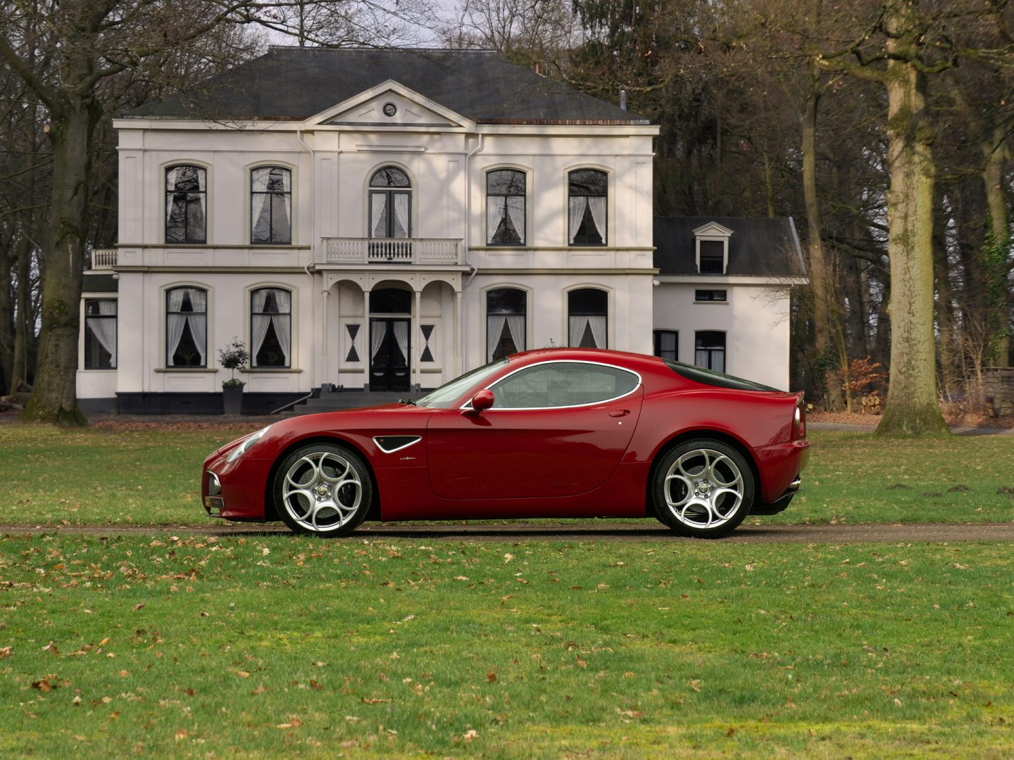Het concept stamt uit 2003, het vrijwel ongewijzigde serieproductiemodel werd eind 2006 tentoongesteld en de (gelimiteerde!) productie kwam in 2007 op gang. Nu, 20 jaar nadat de Alfa Romeo 8C Competizione zich voor het eerst in het openbaar liet zien, is iedereen nog net zo verbaasd als toen. Echter, niet vanwege extraverte looks, baanbrekende aerodynamica of een exotische uitstraling. Nee, de Alfa 8C is het meest charmante wat de autowereld sinds het nieuwe millennium heeft laten zien. En inderdaad: hij kan zich prima meten met de meest waardevolle klassiekers. De rondingen zijn eleganter dan elegant, de stroomlijn perfecter dan perfect; op de briljante esthetica van de 8C Competizione staat simpelweg geen maat! Bovendien is deze “bella” voorzien van een bloedmooie Rosso Alfa tint. Wellicht geïnspireerd door de donkerrode vloeistof die op volle snelheid door uw lichaam wordt gepompt bij het aanschouwen van Alfa’s meesterzet? De karakteristieke 20 inch wielen zijn schitterend als vanouds, net als de werkelijk smetteloze conditie van deze rode parel! De carbon diffusor en dito frontlip corresponderen qua tint met de Nero remklauwen en geven nét iets meer prijs van de waanzinnige performance dan normaal.