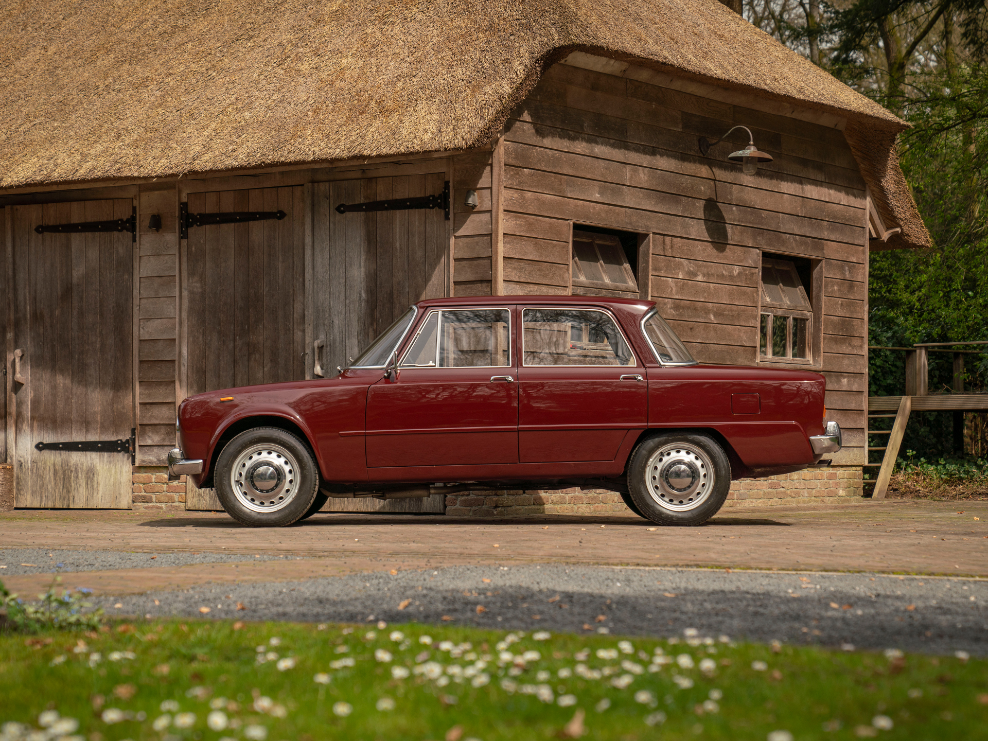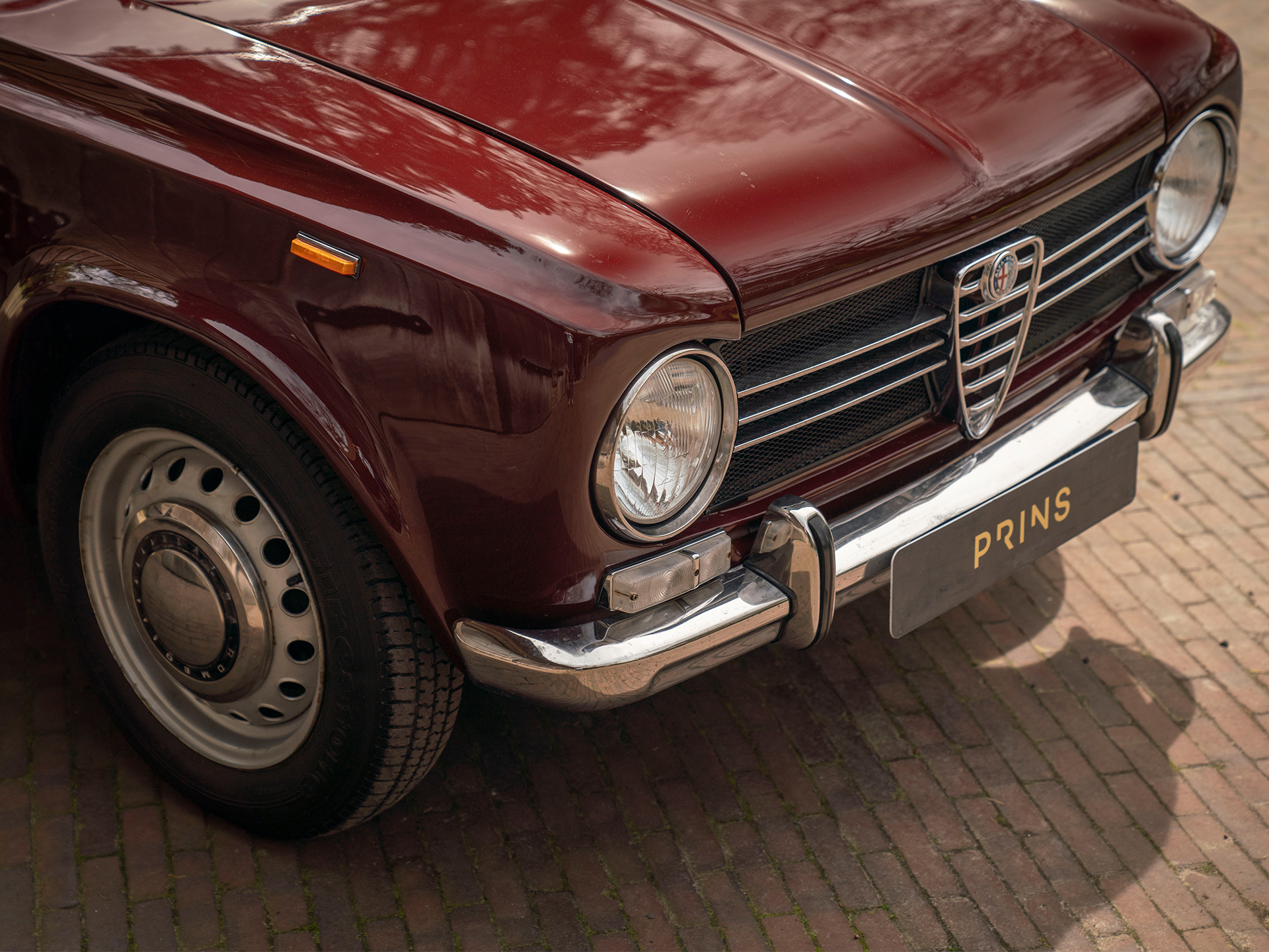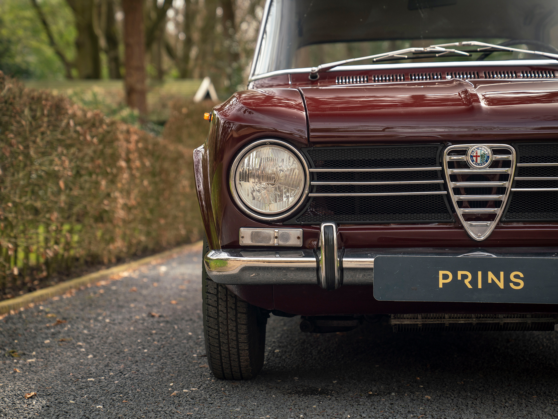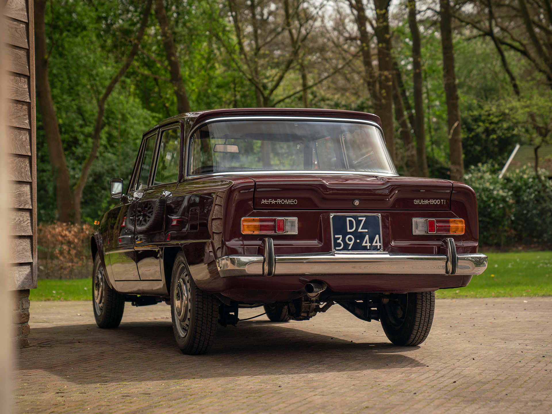 In 1966, 4 jaar na de onthulling van de Giulia, introduceert Alfa Romeo de Giulia 1300 Turismo Internazionale: een extra sportieve versie gebaseerd op de Alfa GT 1300 Junior Coupé. De upgrade zit ‘m vooral in de techniek, want de 4-cilinder lijnmotor uit de 105-serie is een stuk temperamentvoller en gaat gekoppeld aan een handgeschakelde 5-bak voor een sterkere performance. De karakteristieke 4-deurs “berlina” uitvoering van Alfa Romeo is uitgegroeid tot een icoon, en daar heeft de dynamische 1300 Ti een belangrijk aandeel in. Dit exemplaar verliet in 1968 de fabriekspoorten en kwam in 2017 naar Nederland. De historie vertelt ons dat de Alfa klassieker nooit is gerestaureerd. Ook niet door uw voorganger: een verzamelaar pur sang. Het maakt de auto des te meer een collectors item. Immers, welke 55 jaar oude auto vertelt het hele verhaal en is nog altijd in goede staat, zonder een keer flink te zijn strakgetrokken?