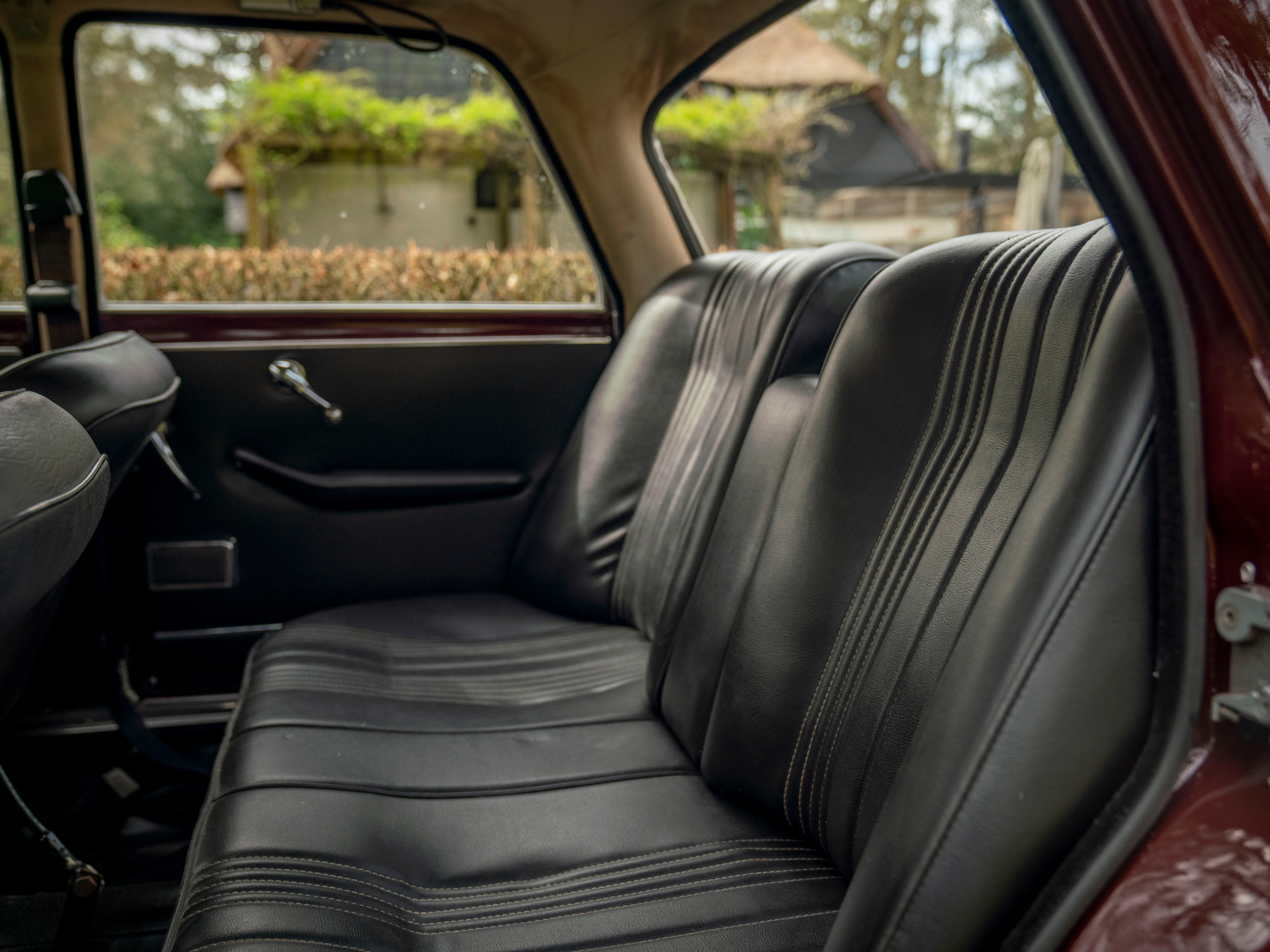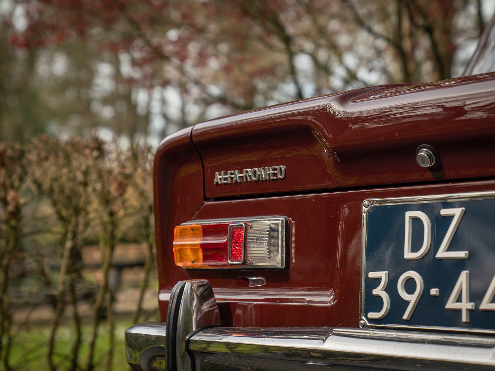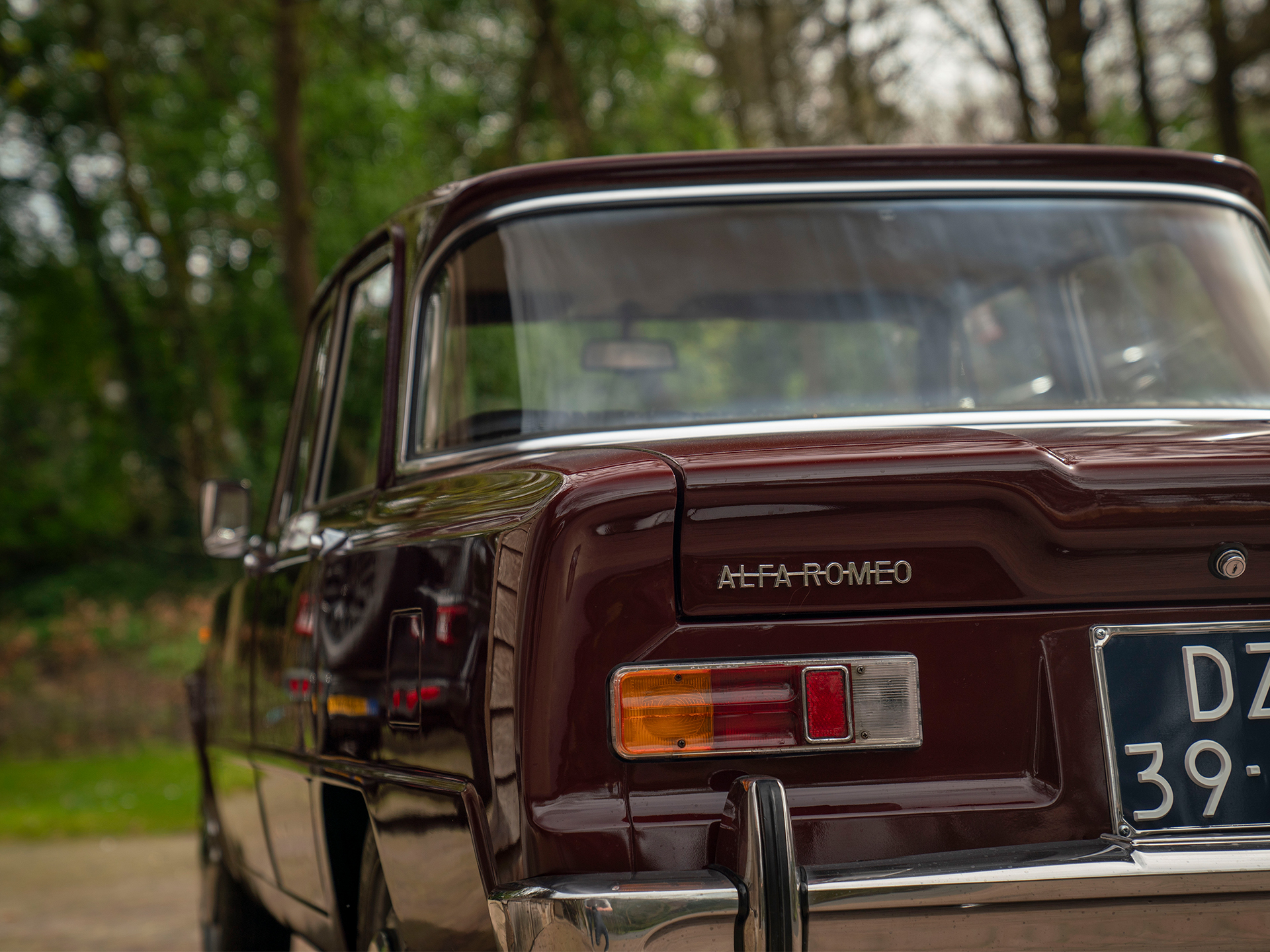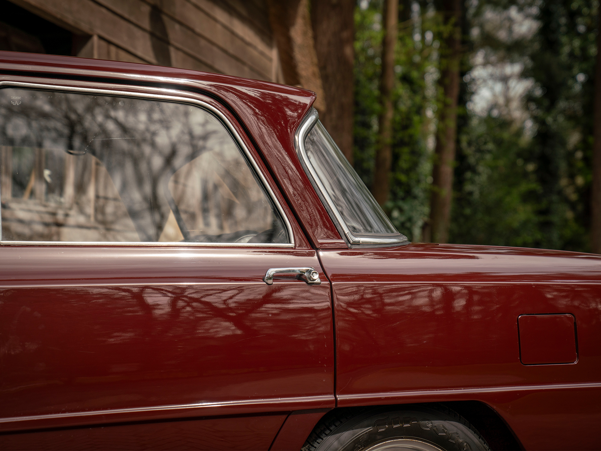 Chiquer dan Rosso Alfa en meer uitgesproken dan donkerblauw: het bordeauxrode lakwerk op onze 4-deurs Alfa Romeo klassieker heeft een verrassend attractieve werking op uw zintuigen. Verrassend is tevens de conditie: zowel het koetswerk zelf als de donkerrode lak vertoont geen grote sporen van nalatigheid. Hier is duidelijk met zorg mee omgegaan! En terecht, kijkend naar de tijdloze styling van de berlina. Aerodynamisch is de Giulia 1300 Ti uiteraard ook helemaal “in shape”: met zijn zogenaamde “Kamm-tail” is de stroomlijn beter voor elkaar dan bij de Porsche 911 uit die tijd. En dat terwijl de 4-deurs vooral bekendstaat om zijn hoekige carrosserie! Meer karakter kunt u onmogelijk van een klassieker verwachten…