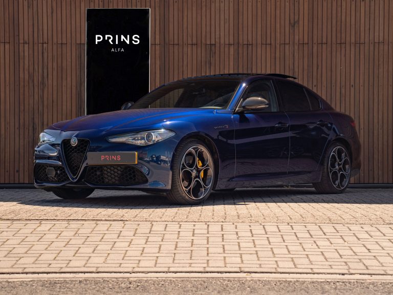 Heerlijke Giulia Veloce Ti Q2 280pk in het Blu Montecarlo! Nieuw door ons geleverd aan zijn 1e en enige eigenaar. Echt een waanzinnige samenstelling met carbon spiegels & Q-spoiler, carbon interieurpakket, Half lederen-alcantara stoelen, panoramadak etc.