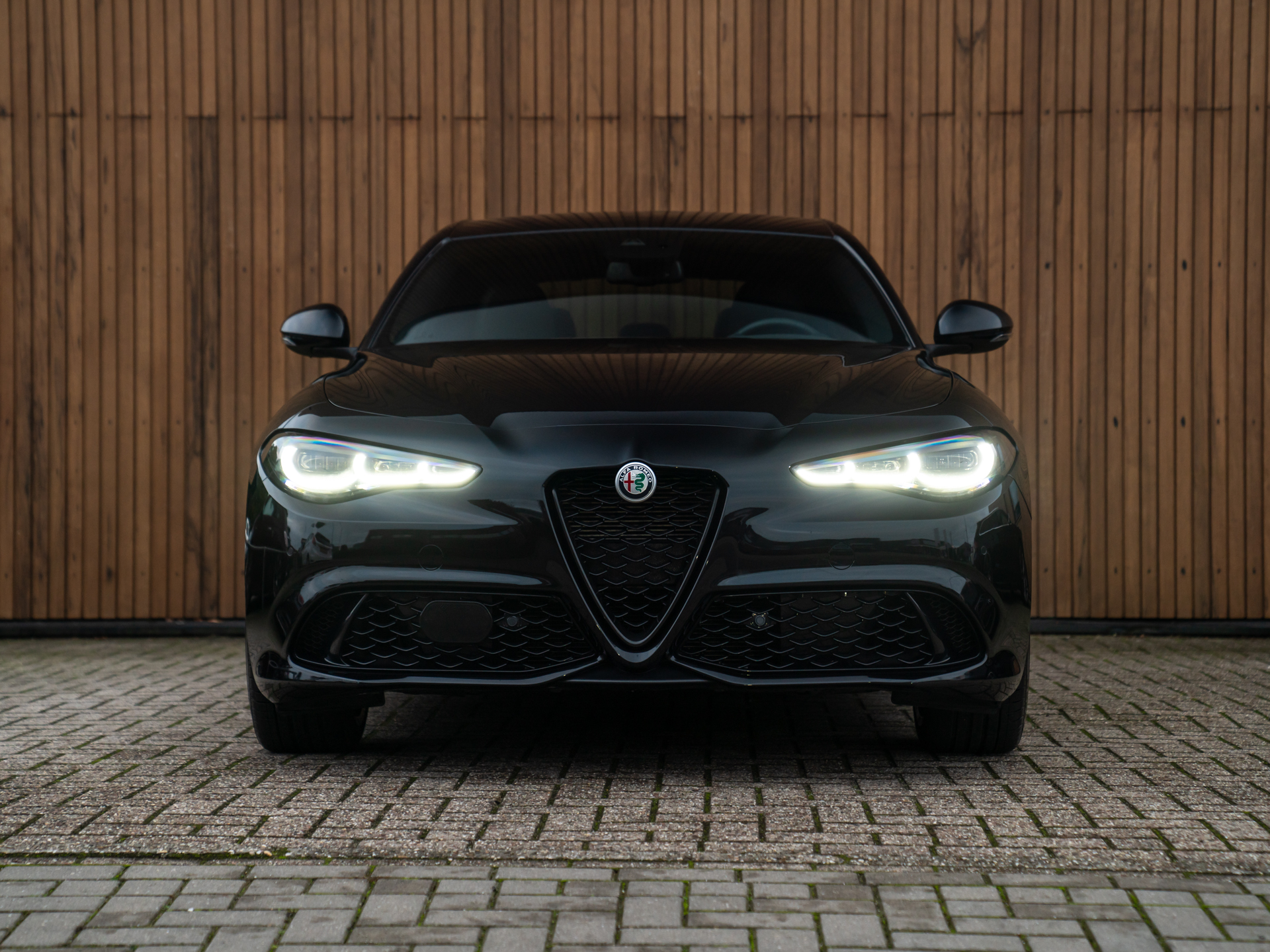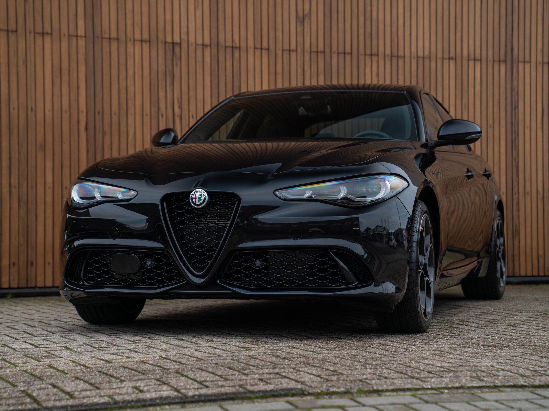 Deze Giulia Competizione 2.0T 280pk Q4 in Nero Vulcano metallic is een kunstwerk op wielen. De agressieve, nieuwe koplampen snijden als roofdierenogen door de nacht, terwijl de heldere achterlichten zijn atletische vormen benadrukken. Binnenin omarmt de volledig digitale cockpit je met technologie en Italiaanse finesse.