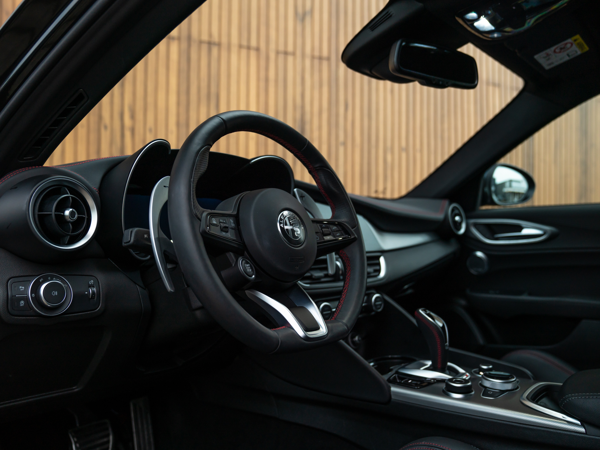 De Nero lederen Veloce-stoelen, afgewerkt met Rosso stiksels, geven je het gevoel één te worden met de machine. De Harman/Kardon-audio dompelt je onder in een soundtrack die net zo meeslepend is als de sensatie van de Q4-vierwielaandrijving die je op elk moment grip en vertrouwen biedt. Met 280 pk aan pure Alfa-power en een onderstel dat in balans is als een maestro op het podium, is dit geen auto – dit is een ervaring.