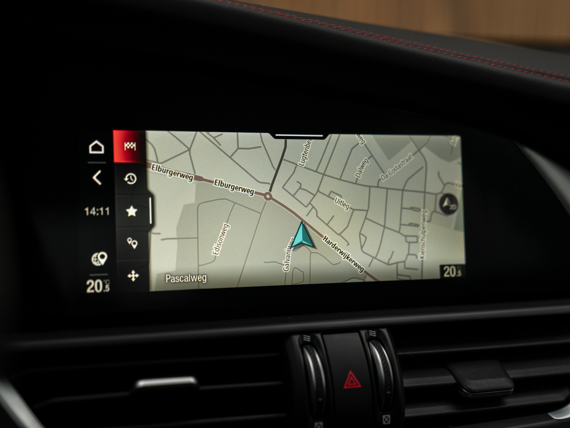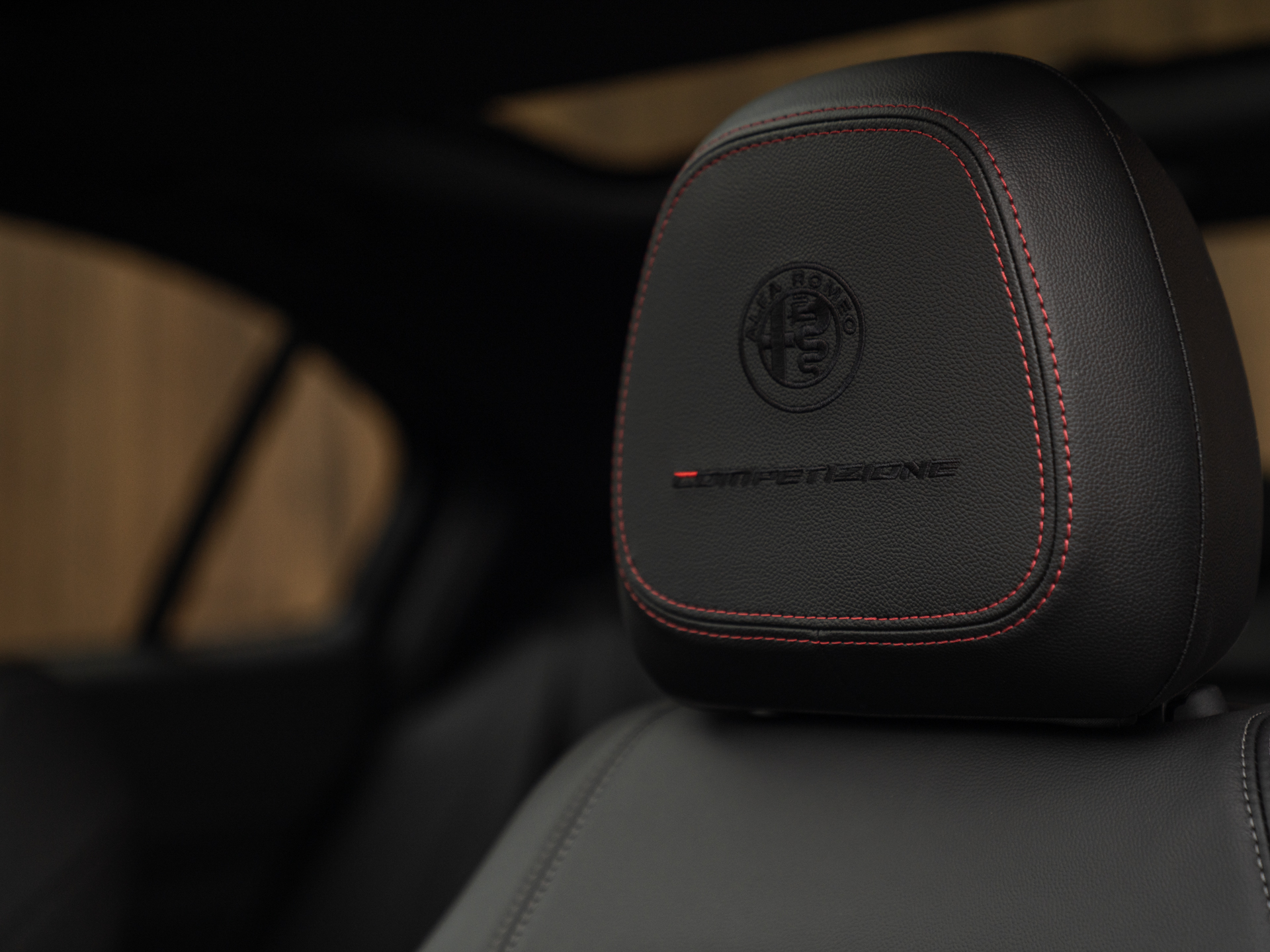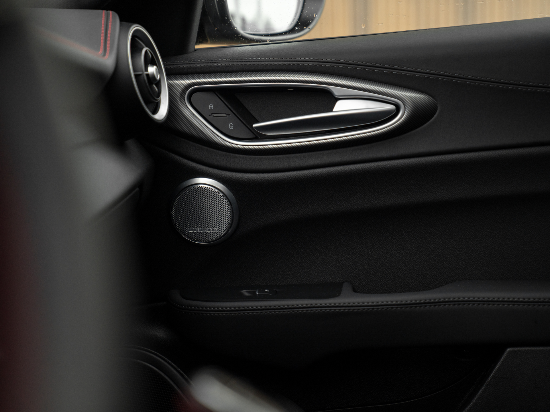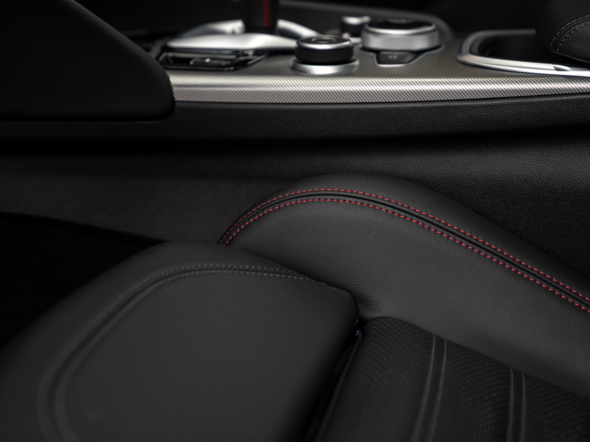 Van binnen is de Giulia voorzien van schitterende, verwarmde Competizione sportstoelen met Rosso stitching en badges in de hoofdsteunen. De afwerking voelt luxe aan en de Giulia is compleet uitgevoerd met zaken als een panoramadak, matrix-LED koplampen, Harman/Kardon audio, Performance Pack etc.[br]