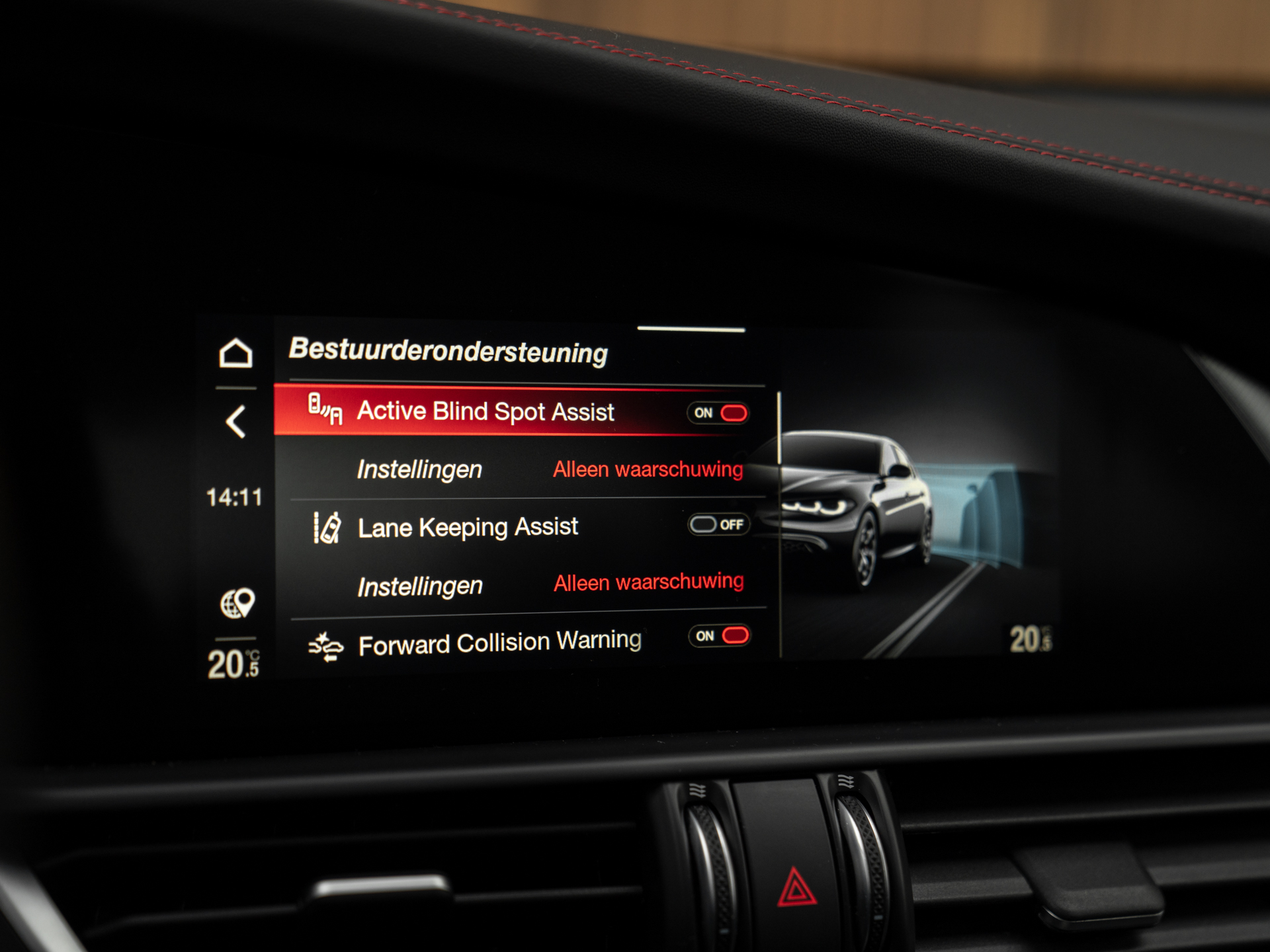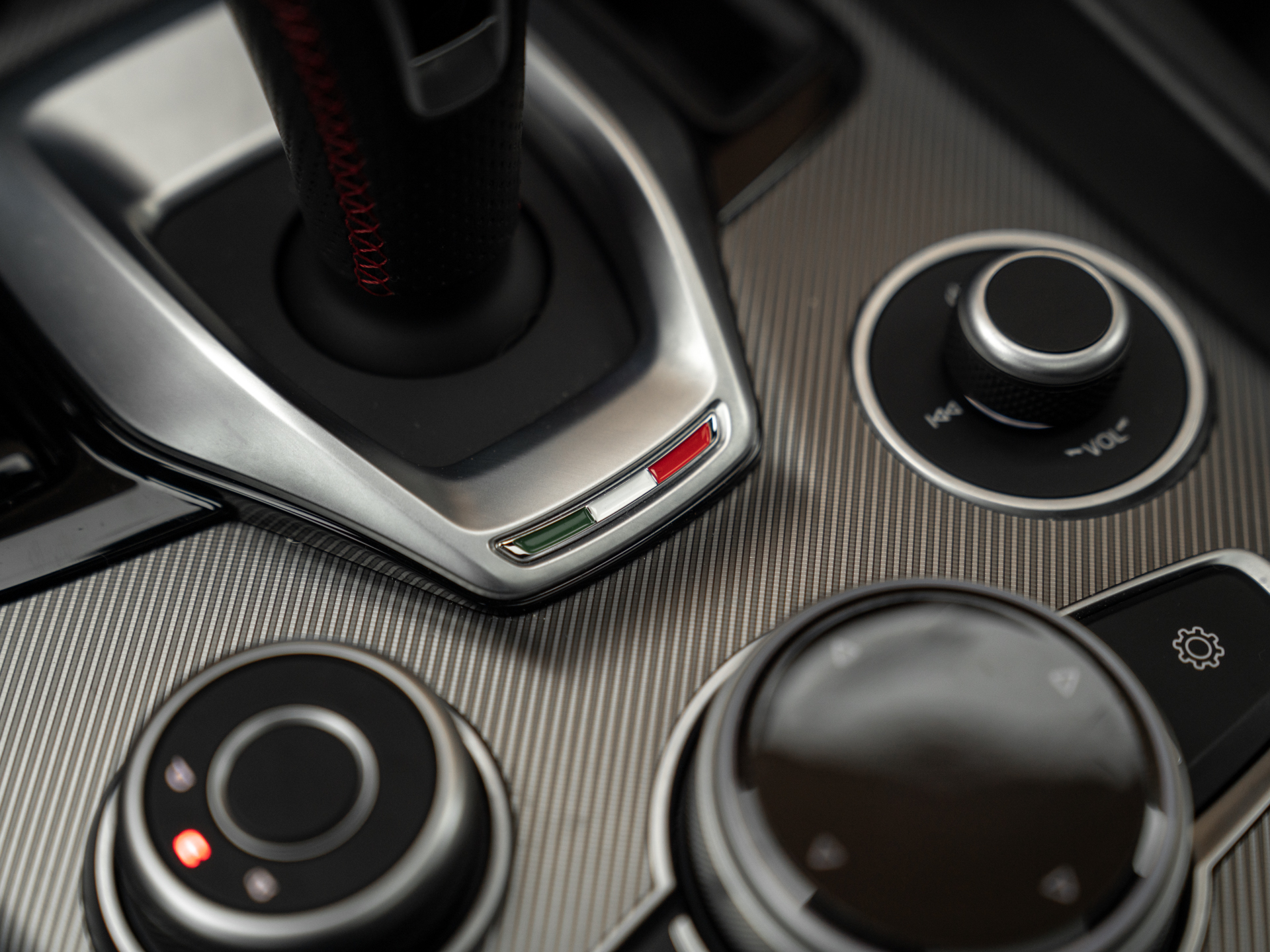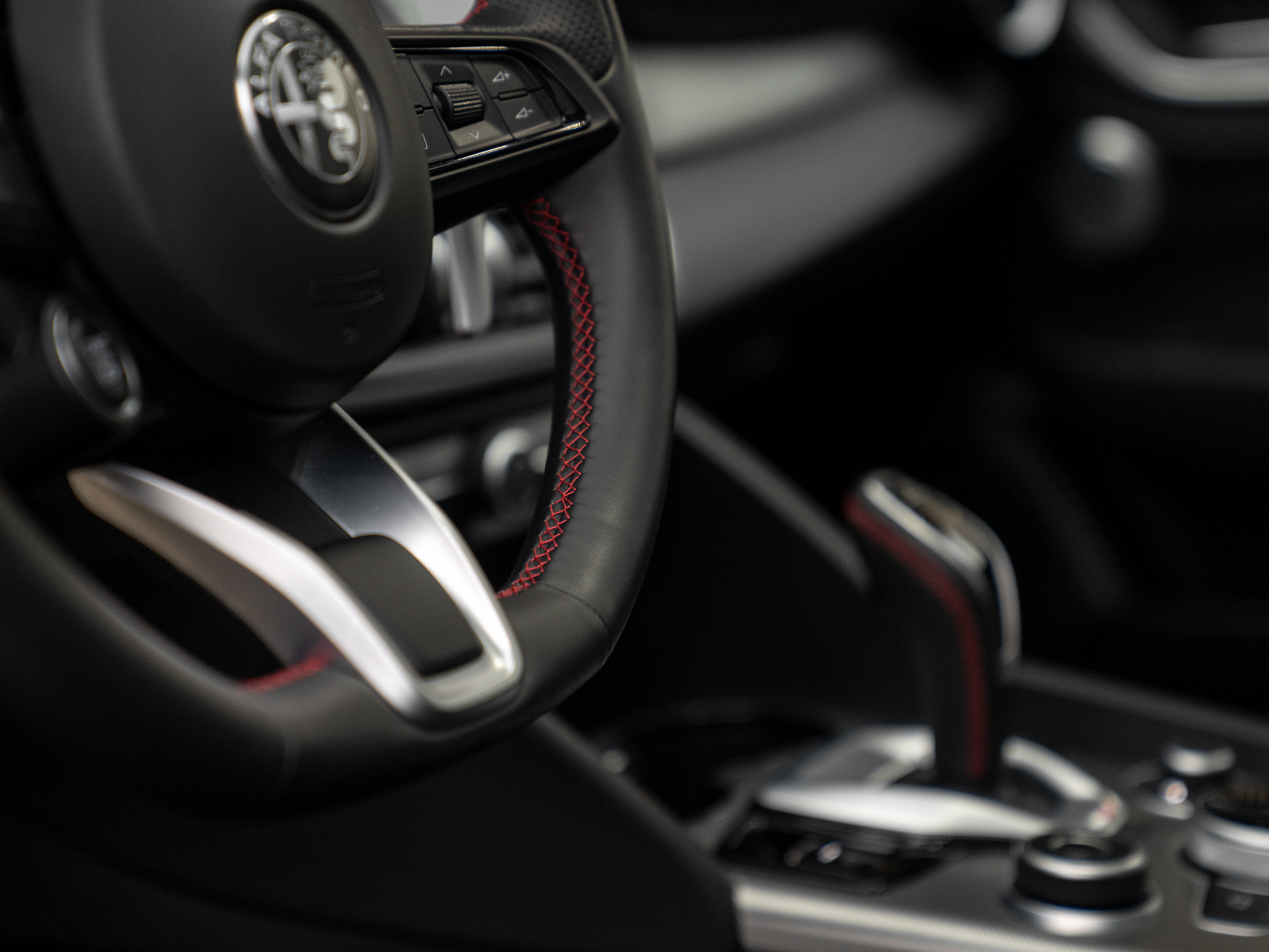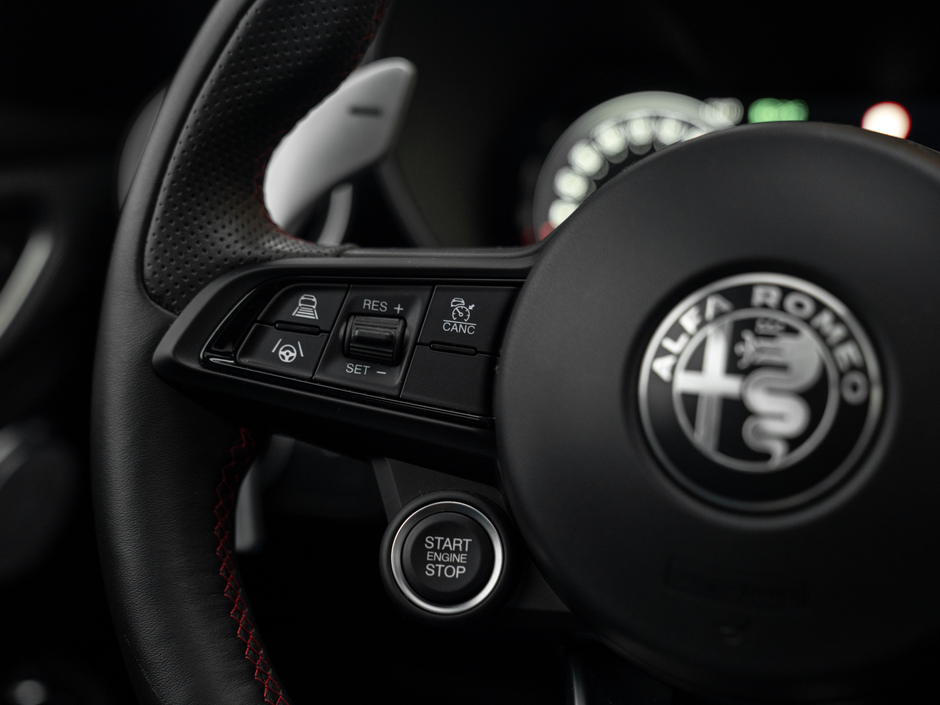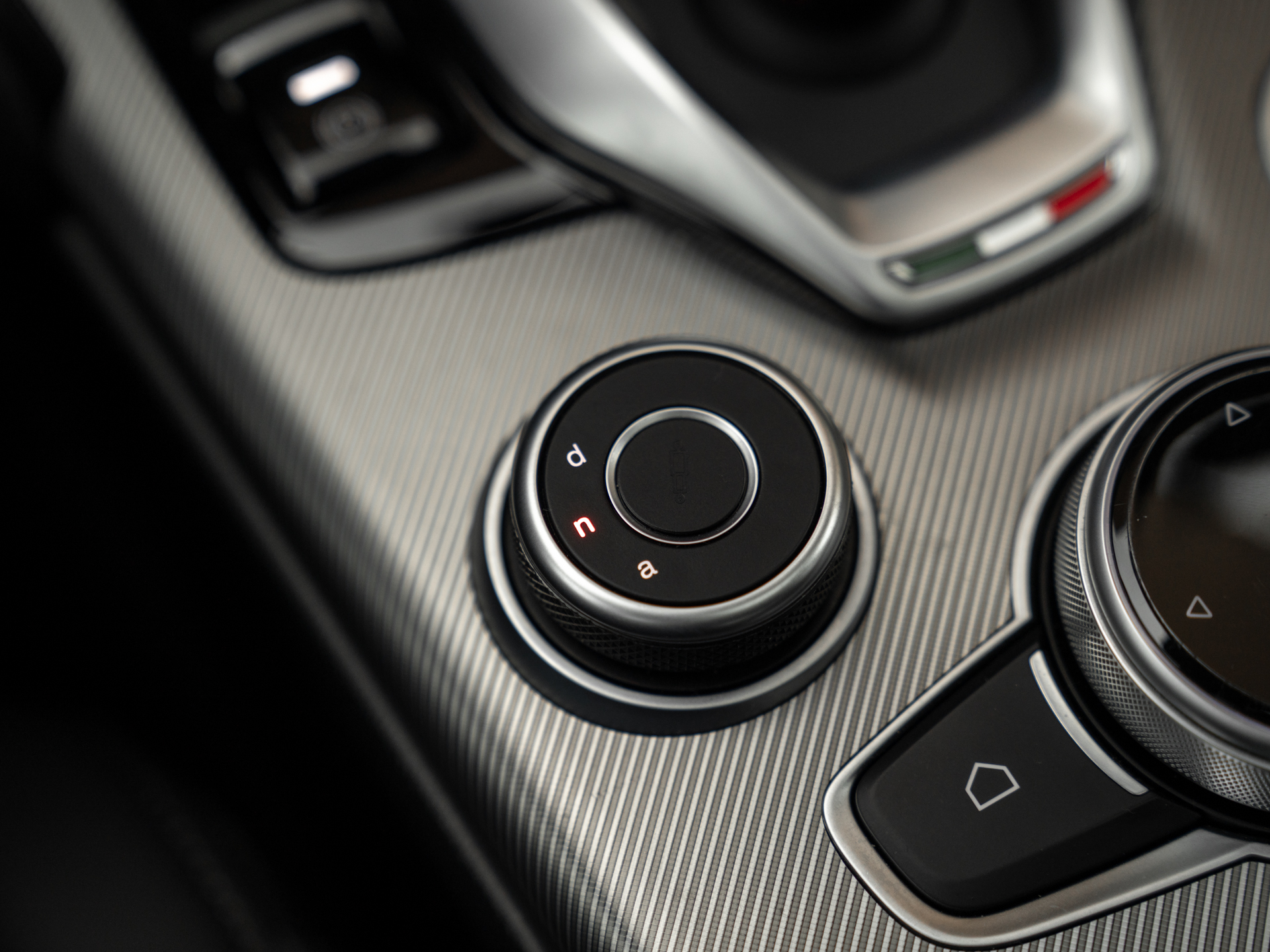 Van binnen is de Giulia voorzien van schitterende, verwarmde Competizione sportstoelen met Rosso stitching en badges in de hoofdsteunen. De afwerking voelt luxe aan en de Giulia is compleet uitgevoerd met zaken als een panoramadak, matrix-LED koplampen, Harman/Kardon audio, Performance Pack etc.[br]