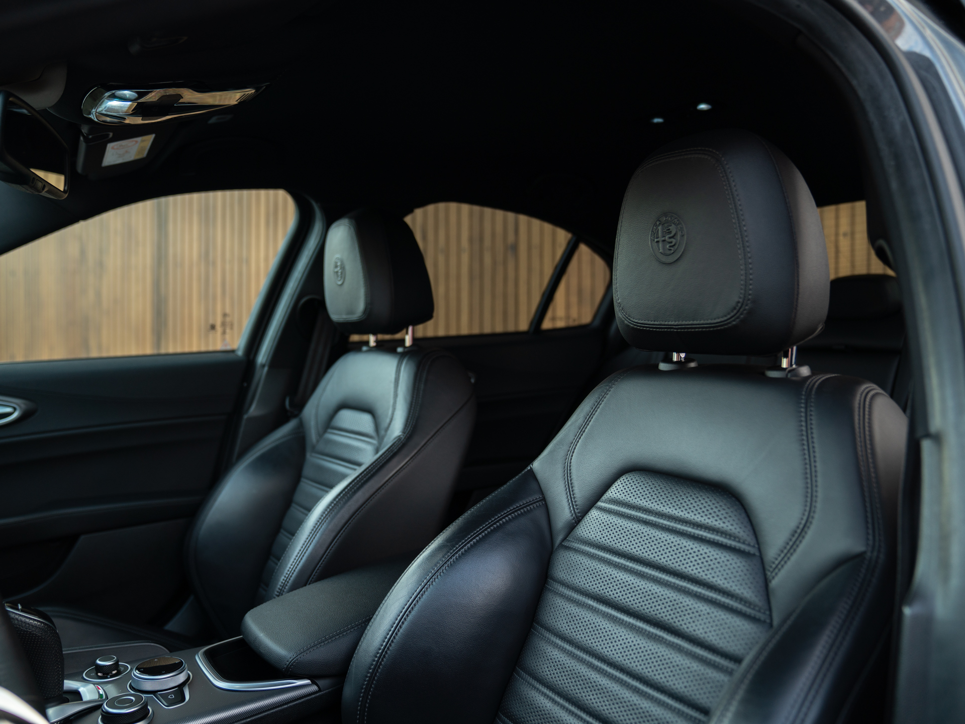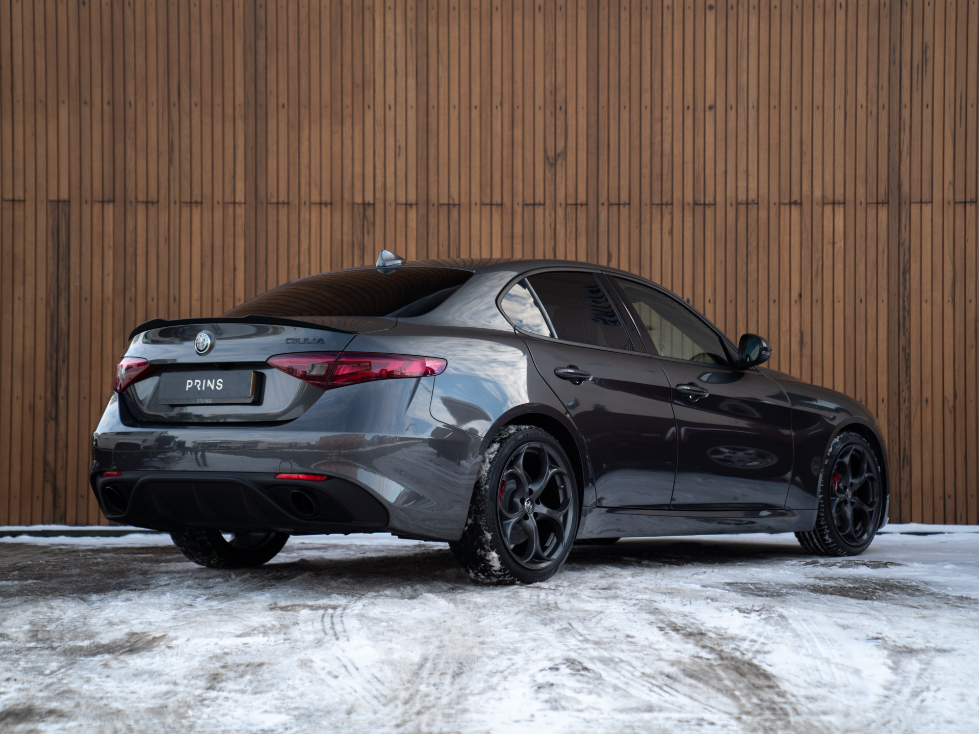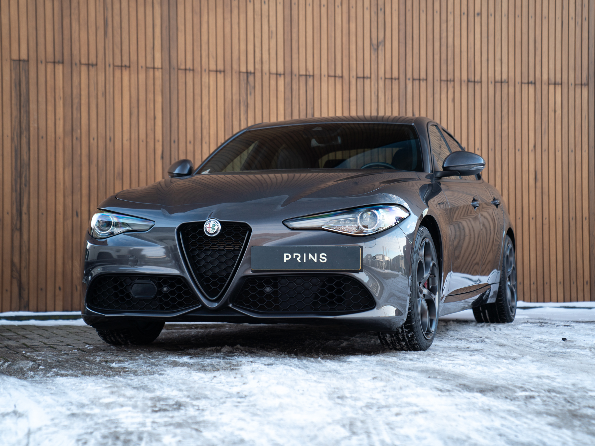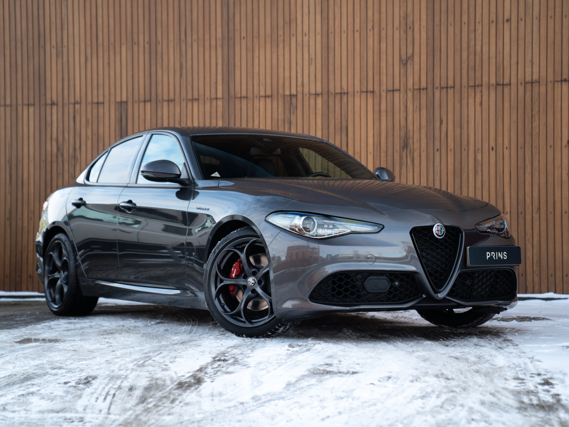 Nieuw binnen: schitterende Giulia Veloce 280pk in het Grigio Vesuvio met een Nero lederen Veloce interieur.