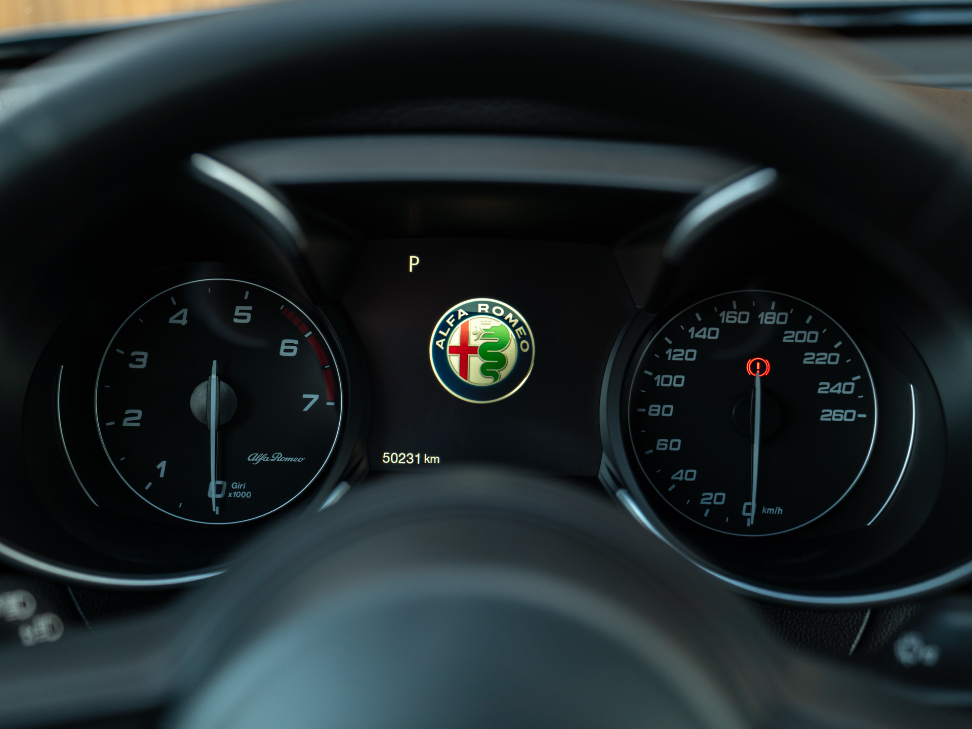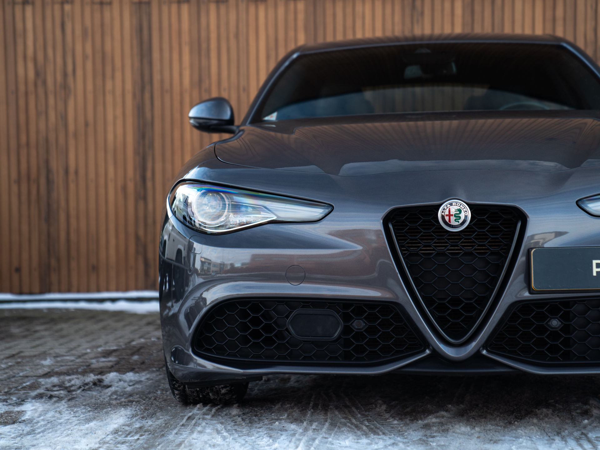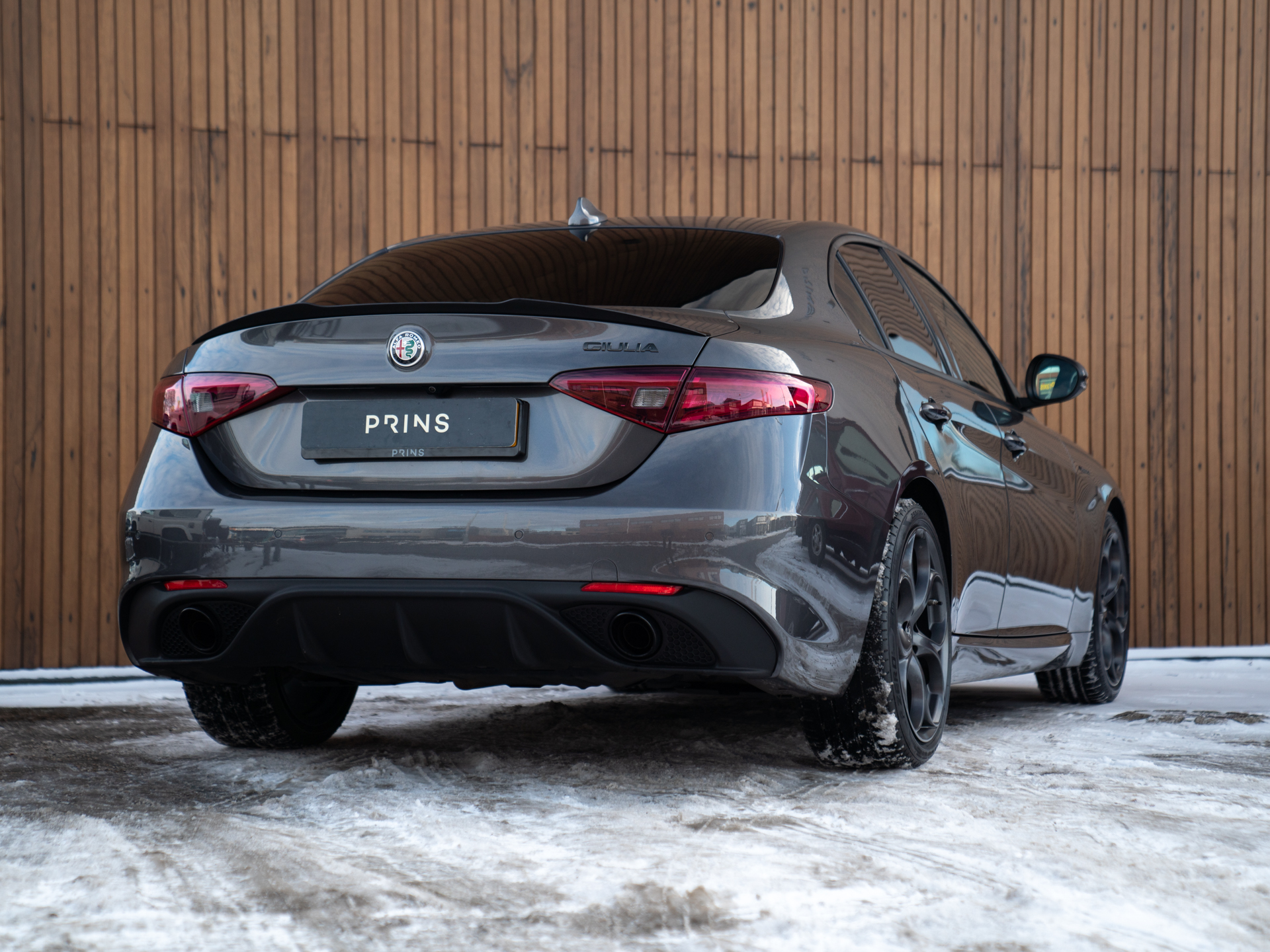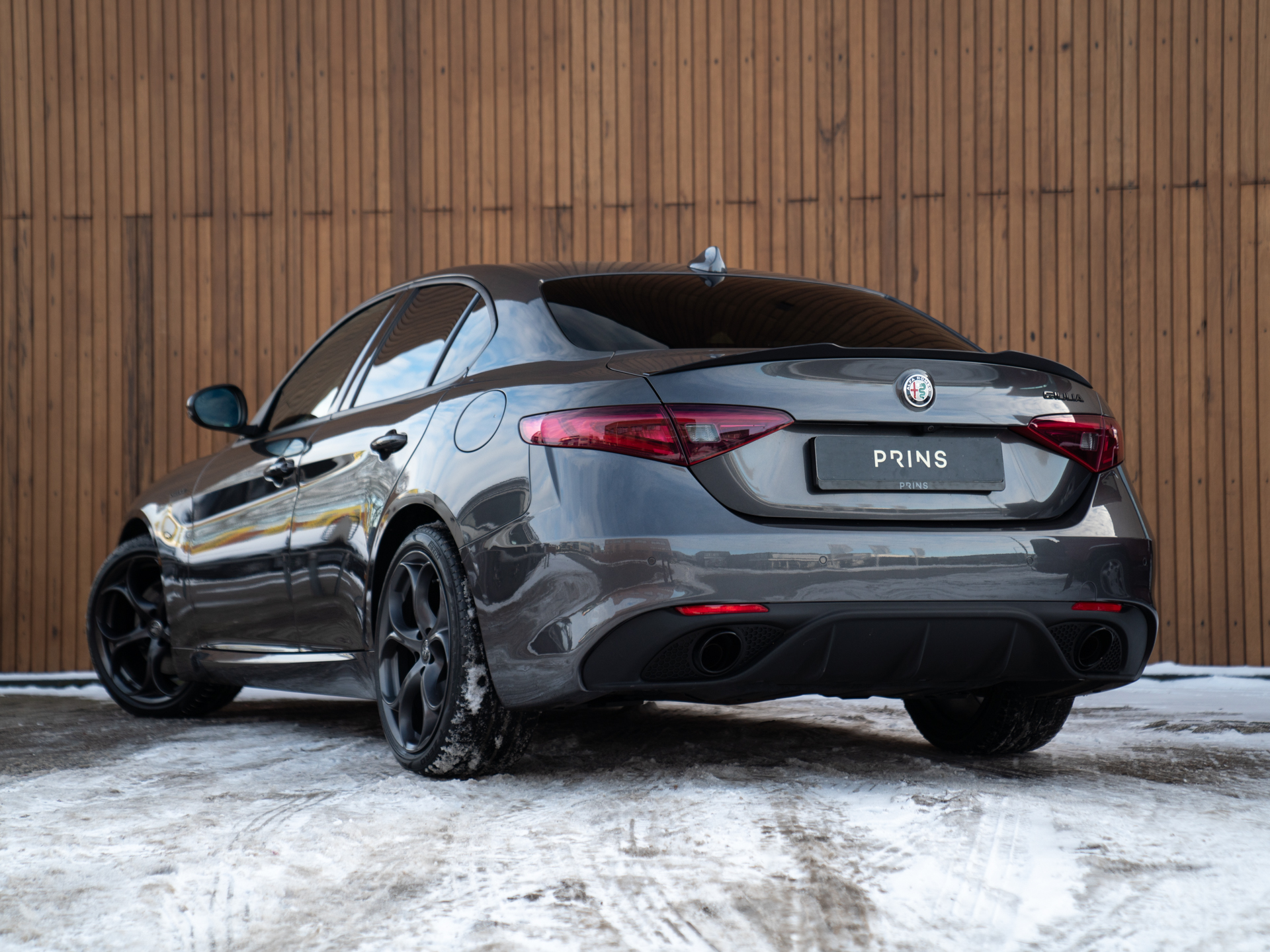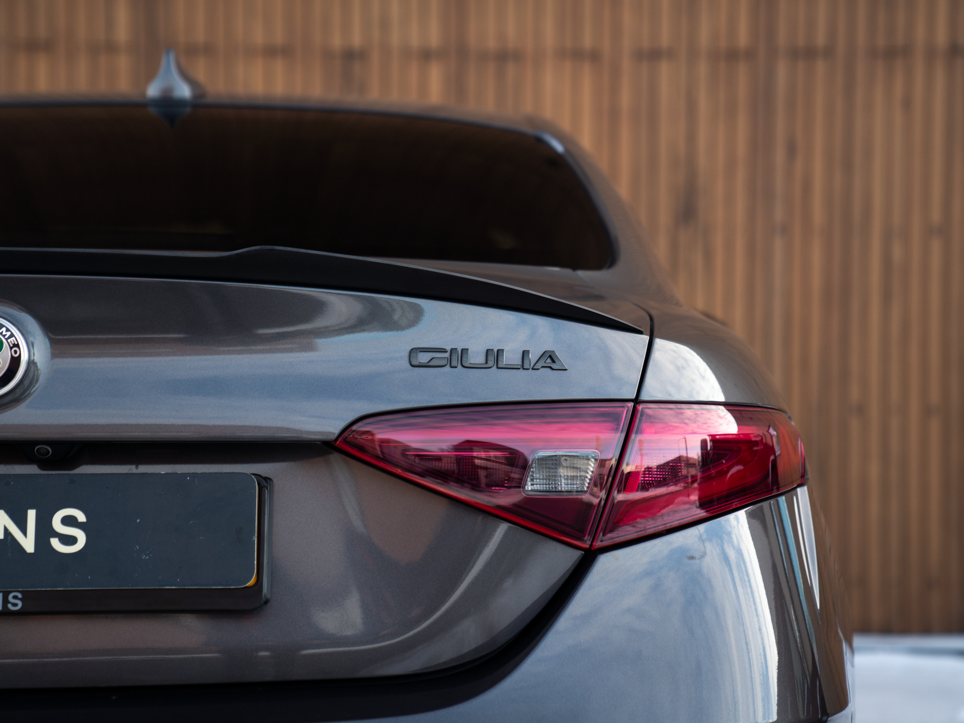 Nieuw binnen: schitterende Giulia Veloce 280pk in het Grigio Vesuvio met een Nero lederen Veloce interieur.