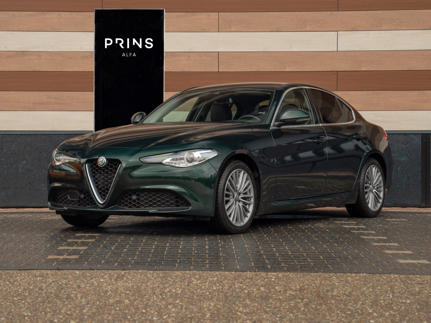 Verde Visconti per favore! Wat een beauty, deze zeer smaakvol samengestelde Giulia 2.0T Ti in het donkergroen metallic.