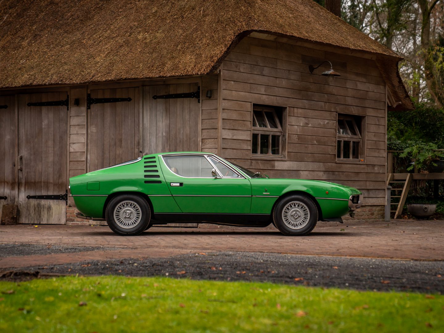 Wanneer was de laatste keer dat u een grote glimlach op uw gezicht kreeg van een ‘groene’ auto? De ‘duurzame’ techniek is letterlijk in een stroomversnelling geraakt. Autorijden wordt er daardoor niet spannender op, maar gelukkig blijven sommige dingen altijd bij het oude: de schoonheid van deze Verde Medio uitgevoerde Alfa Romeo Montreal bijvoorbeeld; die gaat nooit vervelen! Dit specifieke exemplaar laat in het bijzonder een verpletterende indruk achter, want de Alfa Classic is recentelijk volledig gerestaureerd, tot en met de laatste schroef! De overall conditie is dan ook waanzinnig mooi te noemen. Aan historie echter geen gebrek: de bijbehorende documentatie bevat een prachtig overzicht van de uitgevoerde werkzaamheden aan de Montreal. Daarbij zijn tevens facturen aanwezig die dit alles perfect onderschrijven. Inbegrepen is ook een Certificate Origine Alfa Romeo waaruit valt op te maken dat de schitterende Verde Medio lak en Avana Beige bekleding 100% matching zijn. Zo mooi worden ze niet meer gemaakt!