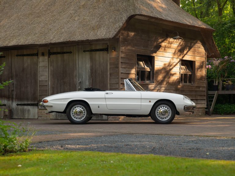 Als de oudste tevens de mooiste blijkt te zijn… Deze beeldschone Alfa Romeo Duetto 1600 werd in 1966 gefabriceerd en verkeert in absolute topstaat! Zo zagen we de originele Spider nog nooit. En dat zegt heel wat, aangezien het team van Prins al sinds 1990 hét vertrouwde aanspreekpunt is voor ware Alfisti. Daarmee zijn we één van de langst bestaande Alfa Romeo specialisten van dit moment. Om maar even aan te geven hoe bijzonder (en) mooi deze auto is. Bijzonder is ook de historie van ons witte pareltje: dit unieke exemplaar heeft namelijk productienummer 98(!) en is uitgevoerd in de originele AR008 kleur. Classic Car Restoration is verantwoordelijk voor het opnieuw aanbrengen van de lak + een motorrevisie. Voor de rest bleef alles bij het oude, kijk alleen al naar de smetteloze (!) bodem, originele Dunlop schijfremmen en vele andere details. Eigenlijk te mooi om weg te doen, maar Wim gunt ‘m een andere Alfist! Afgelopen juni reden we er zelf de Prins Classica Tour ’25 mee door Zuid-Frankrijk: wat een geweldige funfactor heeft deze Duetto, ook de Mont Ventoux beklom hij moeiteloos.