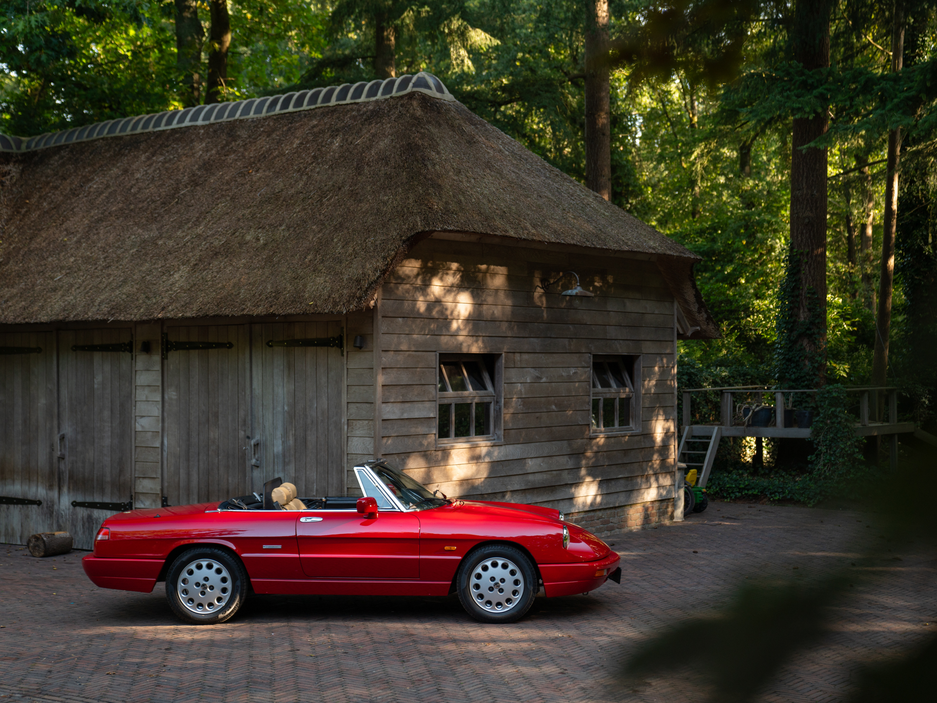 Wanneer het klassieke Alfa Spider hart op volle toeren klopt, maar u geen compromissen wil sluiten als het gaat om modernere sportiviteit, dan is onze Alfa Romeo Spider Type 4 2.0 QV dé perfecte auto voor u. Dit topmodel uit de laatste serie is een krachtige evolutie van het origineel en heeft nog niets van zijn charismatische karakter verloren. Bovendien is hij – net als het Rosso lakwerk en Beige lederen interieur – altijd mooi puur gebleven, ook in handen van zijn voormalig eigenaar: een zelfstandige schilder en tevens vurig Alfa-liefhebber die de Spider Quadrifoglio Verde maar liefst 20 jaar lang in zijn bezit hield. Het onderhoud werd trouw gepleegd door Alfa Romeo specialist Goos van Pelt. Daarvoor moet u ons ouderwets op ons woord vertrouwen, want de schilder bespaarde zichzelf heel wat papierwerk door zijn zondagse Spider QV Type 4 voortdurend te verwarren met zijn alledaagsere wagen, als u begrijpt wat wij bedoelen… Een andere manier om 100% zeker te weten dat alle 126 paarden uit het 2,0 liter 4-cilinder Twin Cam blok nog doen wat ze moeten doen, is natuurlijk door ze uit te proberen.