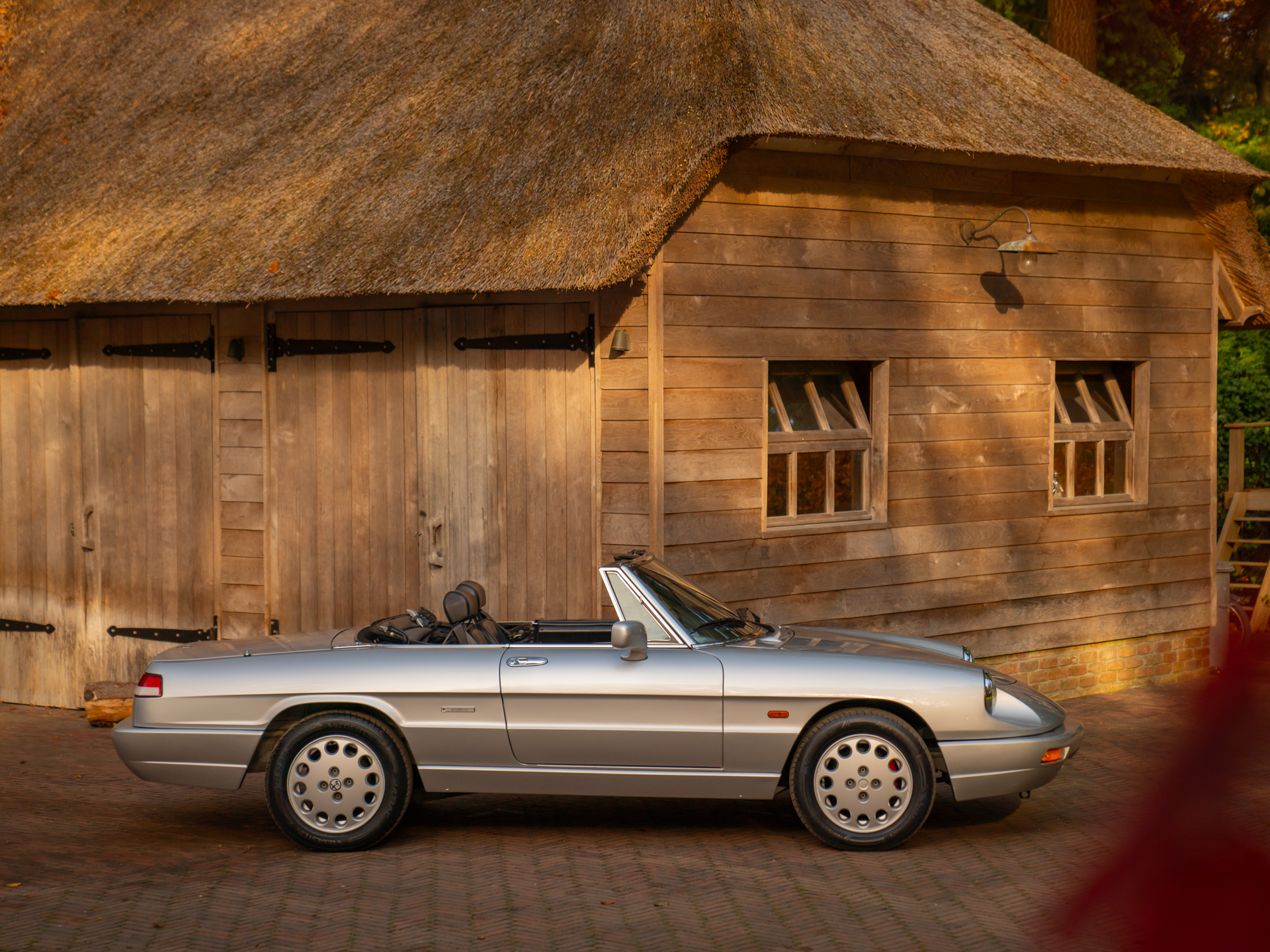Het kan haast niet anders of de oorspronkelijke eigenaar van deze fraaie Alfa Romeo Spider 2.0 Type 4 beschikte over een glazen bol. Het schitterende Grigio Chiaro metallic lakwerk legt immers het accent op de tijdloze schoonheid van de Alfa Spider. Anno 2025 weten we dat de Italiaanse roadster een geboren klassieker is. De bodem van dit specifieke exemplaar is volledig origineel en daarmee uniek. En ondertussen stijgt zilver hard in prijs! Bij deze zilvergrijze bella vonden we enkele jaren geleden de ideale eigenaar: een vast Prins klant met het klassieke Alfa hart op de juiste plaats. Hij schitterde met zijn Type 4 in de afgelopen twee edities van de Prins Classica Tour; eerst in Italië en daarna in Zuid-Frankrijk. In de schilderachtige bergwegen kwam de jongste serie van de originele Spider perfect tot zijn recht. Bovendien kon de zwarte soft-top het grootste deel van de tijd naar beneden! Net als de carrosserie en kap, verkeert het Nero lederen binnenwerk in zeer mooie staat. En ook over de karakteristieke 2,0 liter 4-cilinder Twin Spark techniek geen klachten. Toch zal het exterieurontwerp van designlegende Pininfarina de meeste indruk maken bij liefhebbers. Toegegeven: hij kan elke kleur hebben. Maar zilvergrijs metallic? Daarmee geeft de charismameter nooit eerder vertoonde waarden aan! Terwijl uw voorganger op zoek gaat naar een waardig, klassieke opvolger voor zijn Alfa Romeo Spider Type 4, maken wij alvast een afspraak met zijn toekomst eigenaar. Want het kan niet anders dan dat u allang om bent. Daar hebben wij geen glazen bol voor nodig…