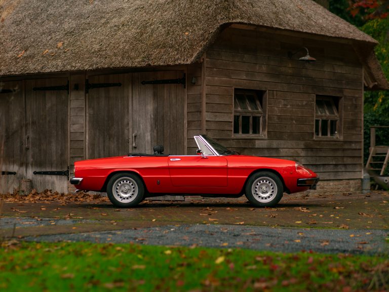 Het betreft hier één van de allerlaatste Alfa Romeo Spiders uit de 1e serie. Zijn voorganger was immers Duetto gedoopt. Deze Coda Tronca is meteen ook de meest begeerlijke versie, voorzien van een rechte achterkant in combinatie met het originele front. Alsof dit nog niet lekker genoeg is, voorzag Alfa Romeo haar Spider van een knalrode Rosso Alfa carrosseriekleur. De staat is nog bijzonder netjes, en dat terwijl er geen restauratie aan te pas is gekomen. Ongekend hoe zorgvuldig de vorige 2 eigenaren zijn omgesprongen met de schoonheid van de klassieke Spider. Terecht wat ons betreft! Bewijs van goed gedrag wordt tevens meegeleverd in de vorm van een volledige onderhoudshistorie. Wat wil een liefhebber nog meer?