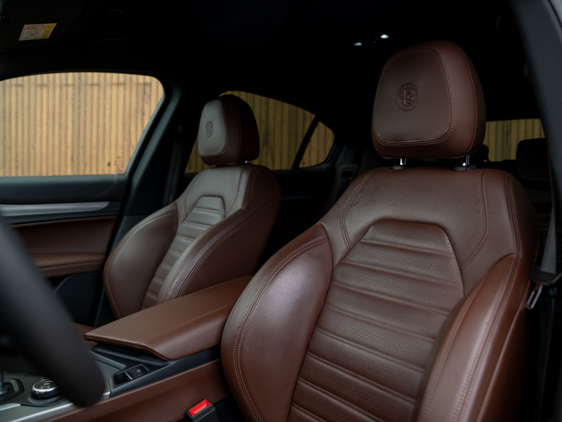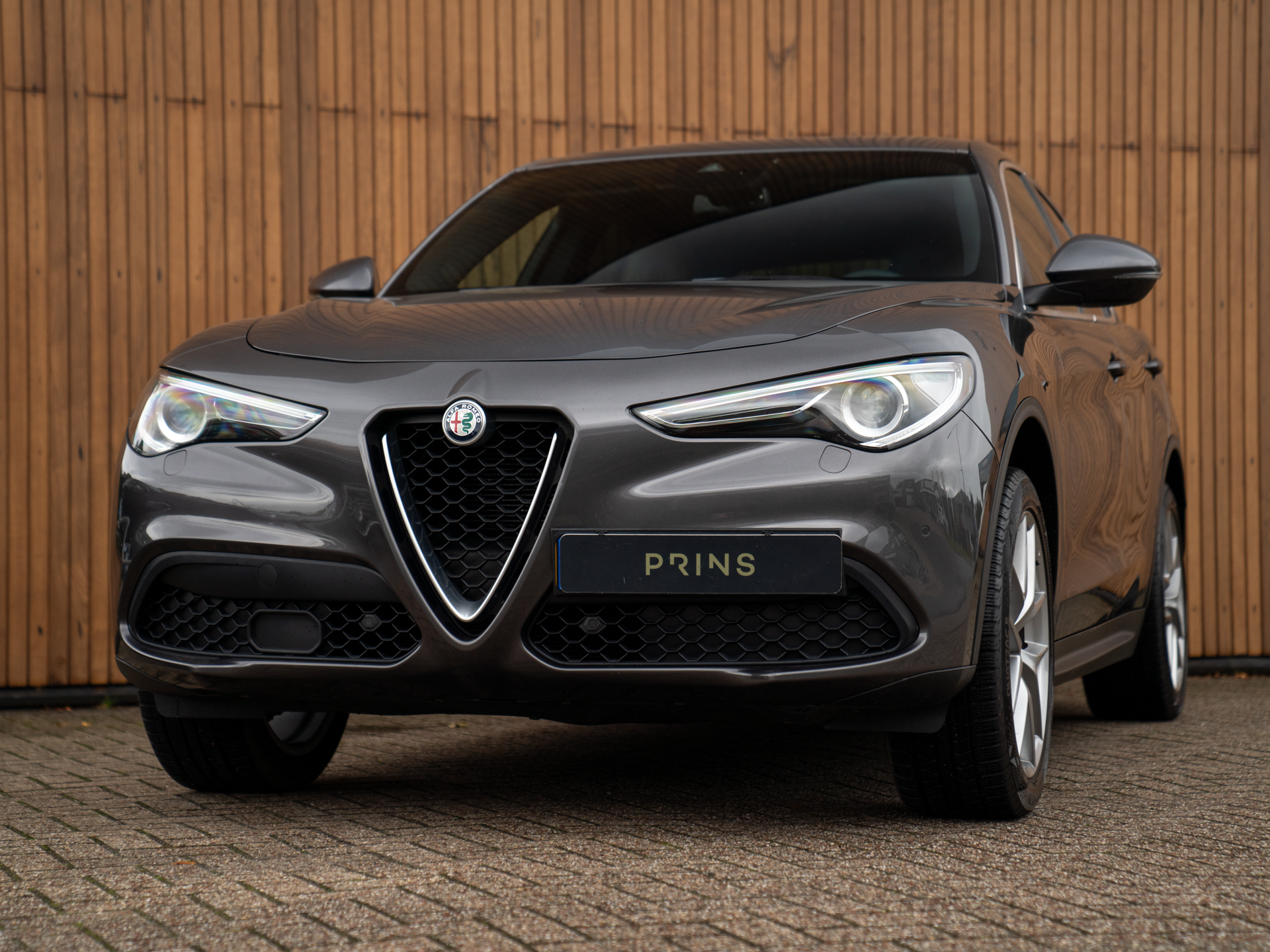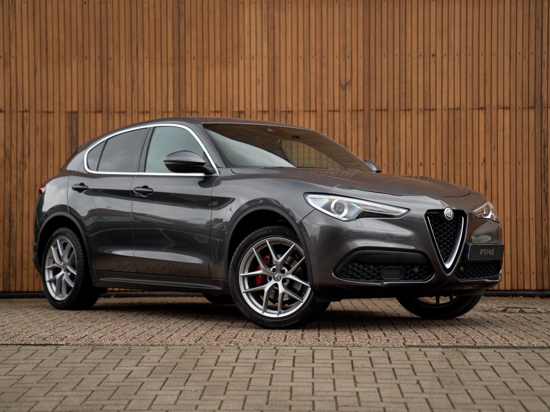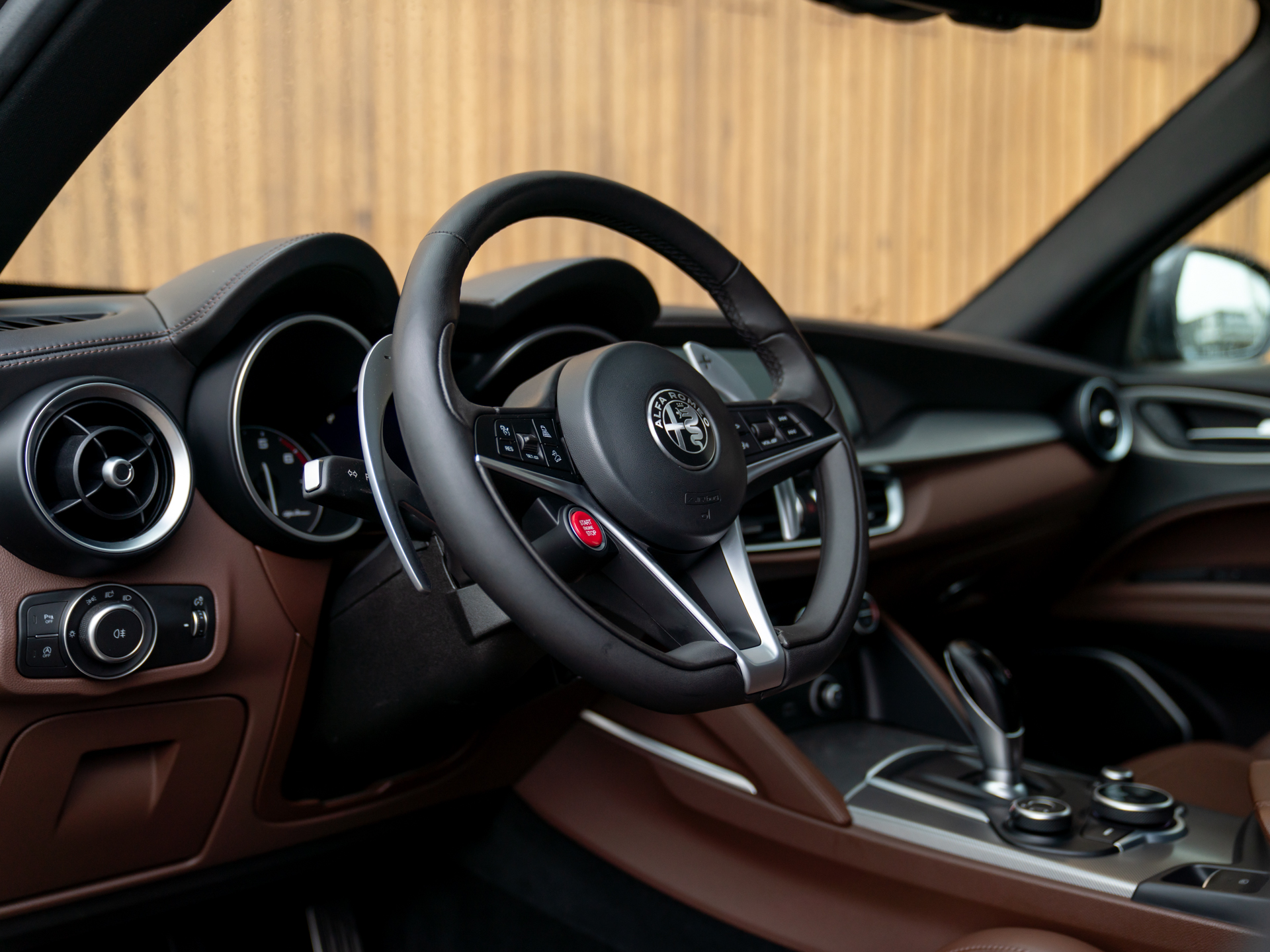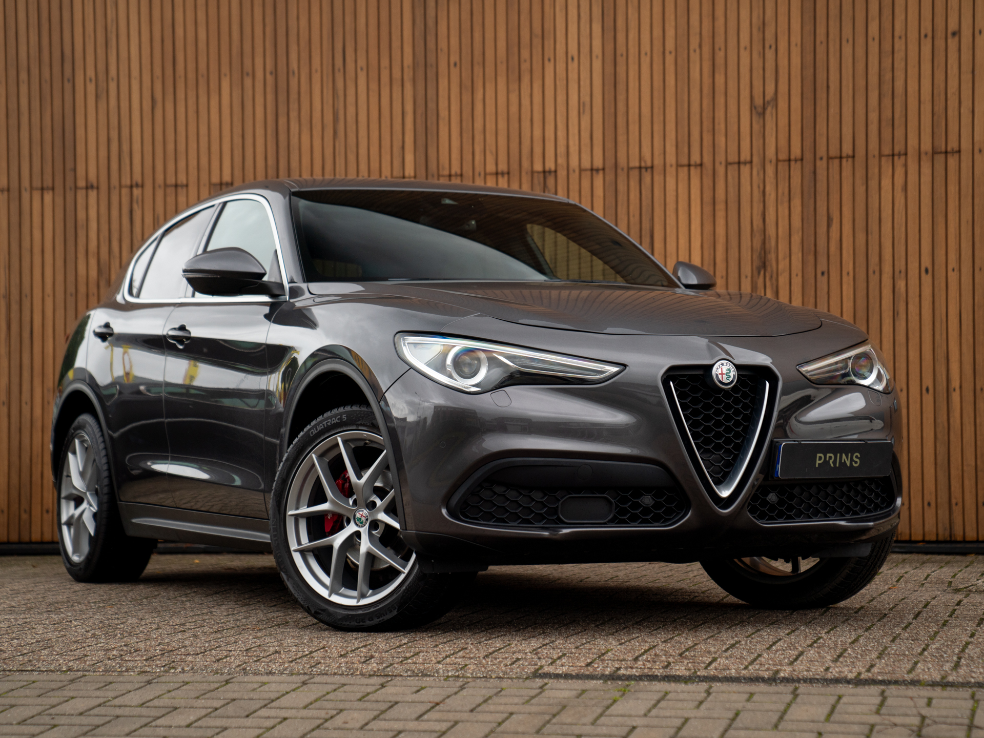 Nieuw binnen: Stelvio 2.0T AWD Super in het Grigio Vesuvio met een Cioccolato lederne interieur met Veloce stoelen (elektr. verwarmbaar, memory!), lederen dashboard, adaptieve cruise control, schakelflippers, adaptief onderstel etc.