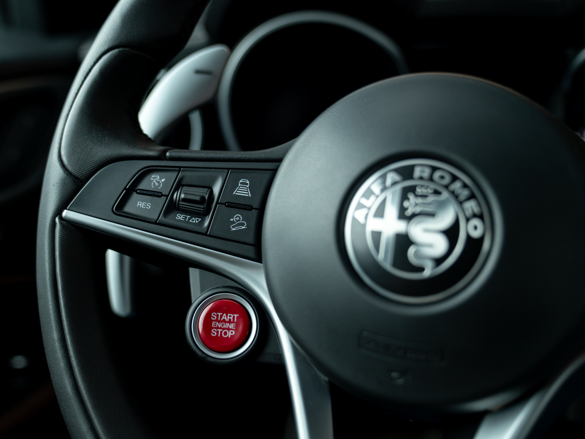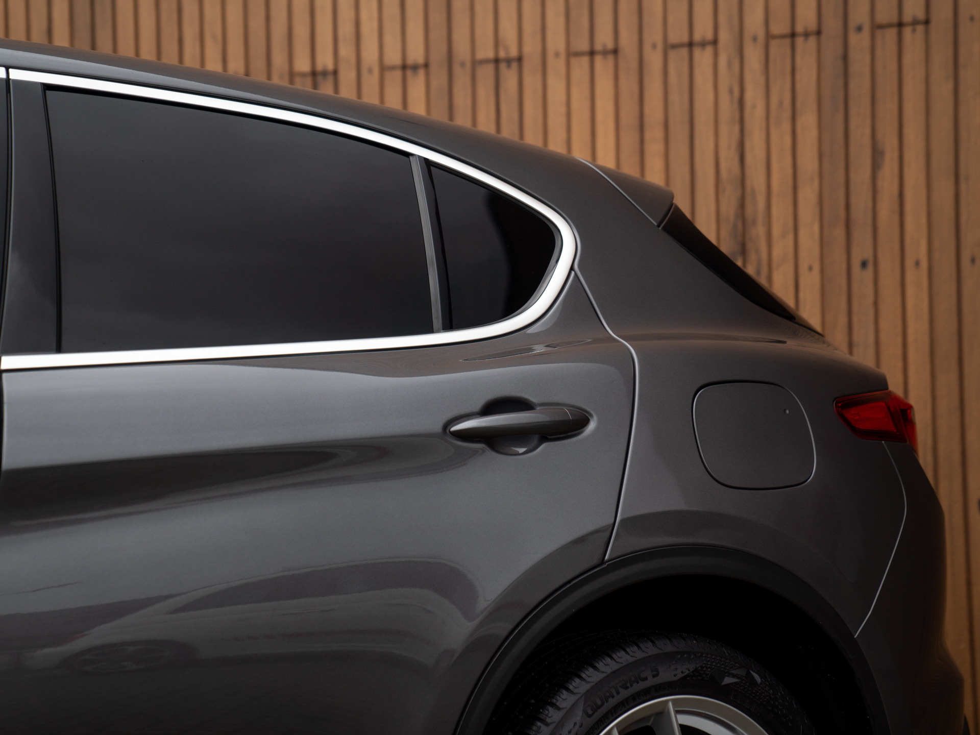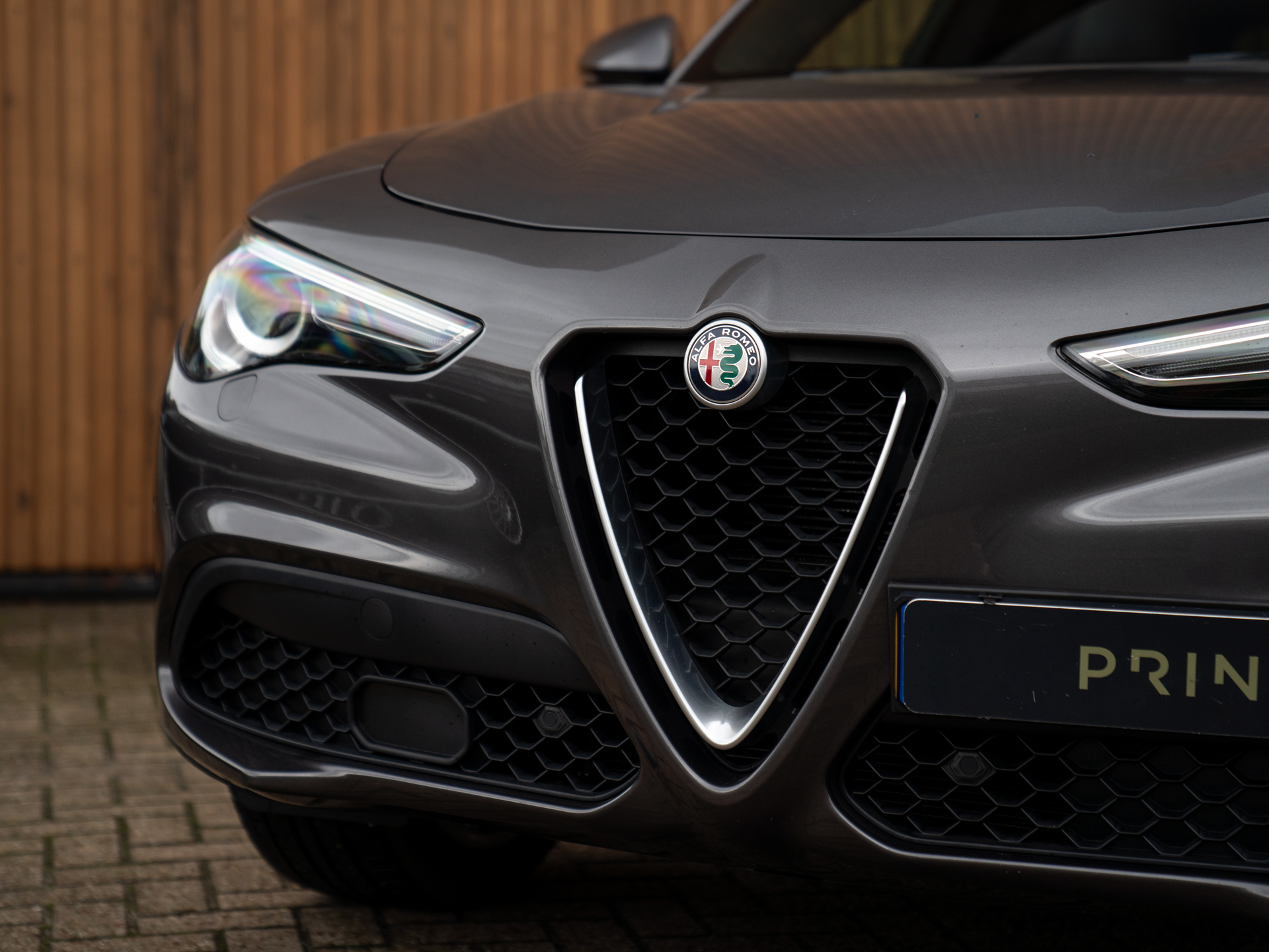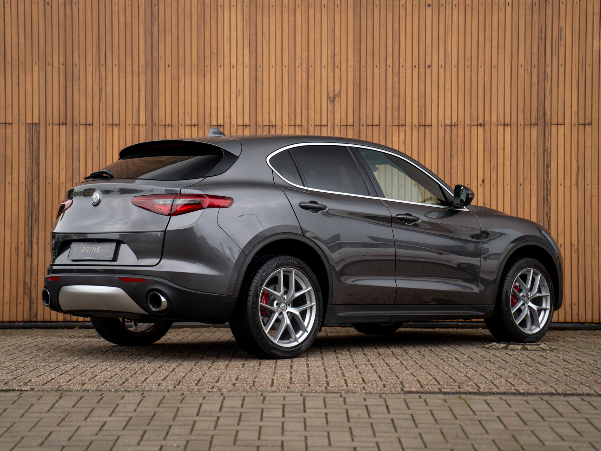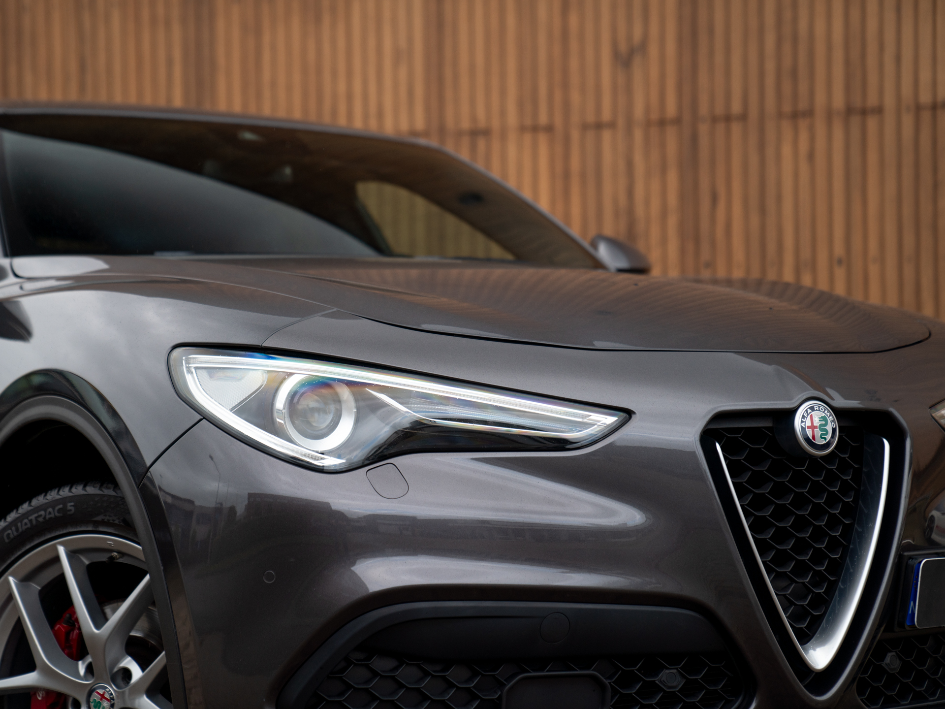 Nieuw binnen: Stelvio 2.0T AWD Super in het Grigio Vesuvio met een Cioccolato lederne interieur met Veloce stoelen (elektr. verwarmbaar, memory!), lederen dashboard, adaptieve cruise control, schakelflippers, adaptief onderstel etc.