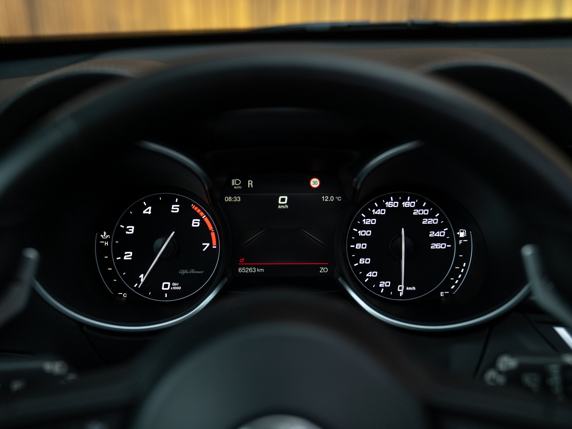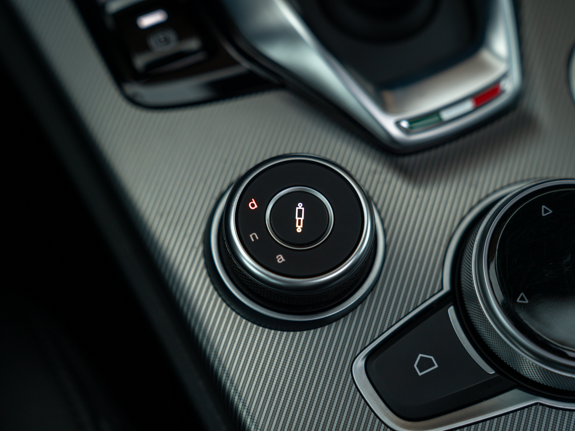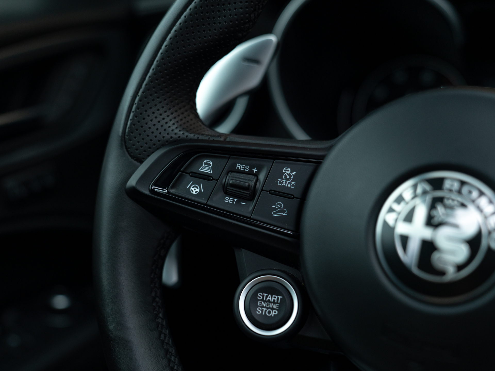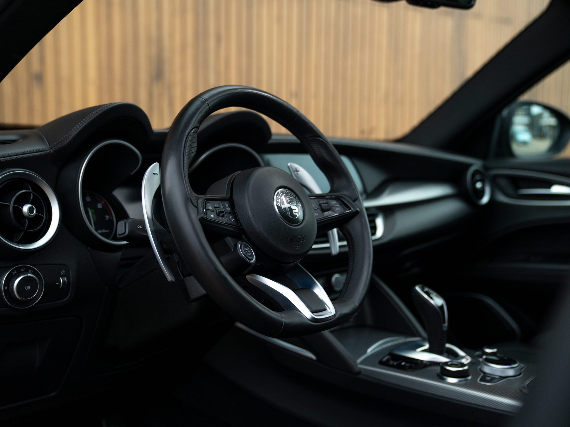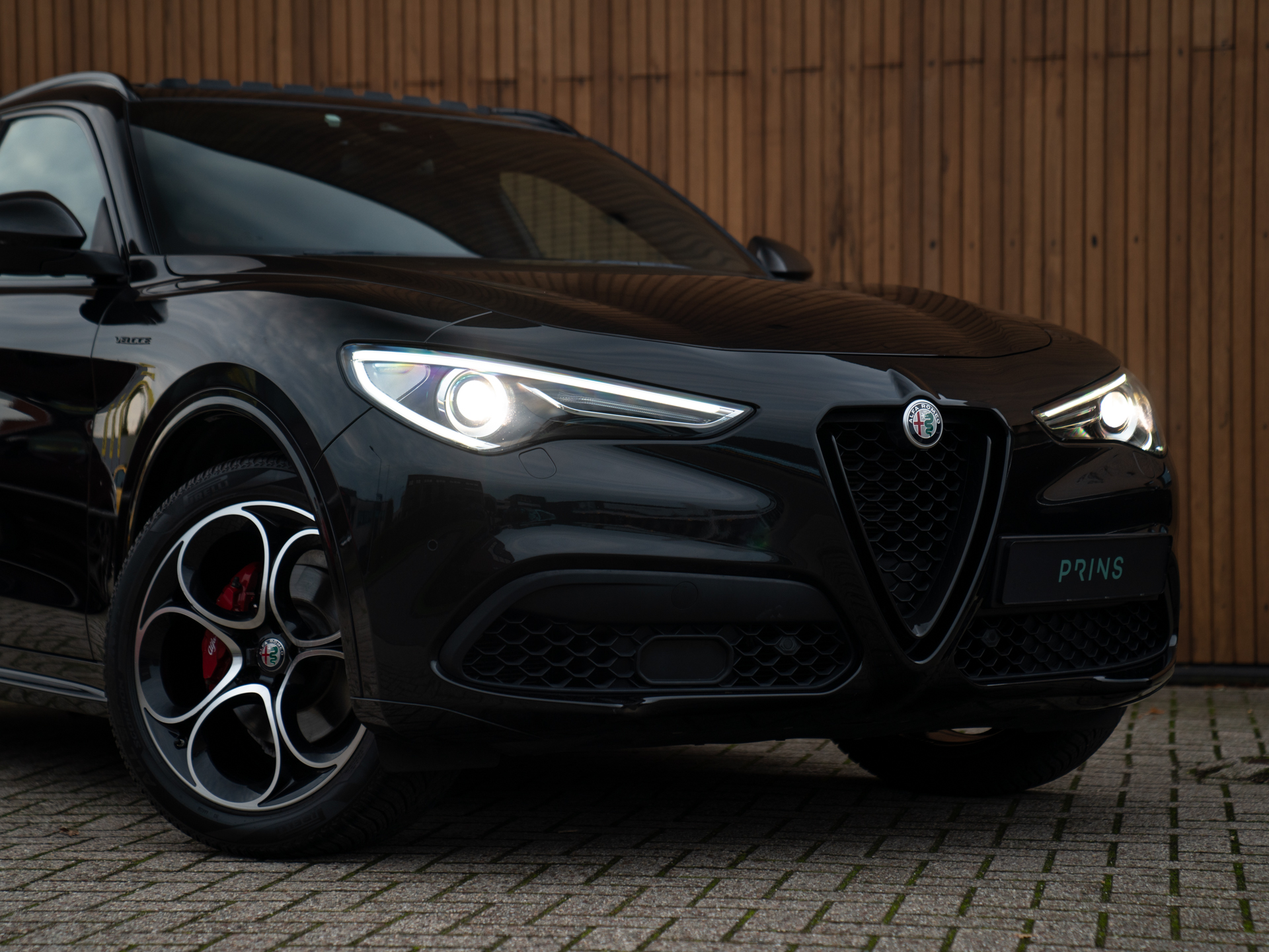 Lees verderHeerlijke Stelvio Veloce 280pk in het Nero Vulcano met een Nero Veloce interieur, panoramadak, adaptieve cruise control, Performance Pack, Apple CarPlay etc!