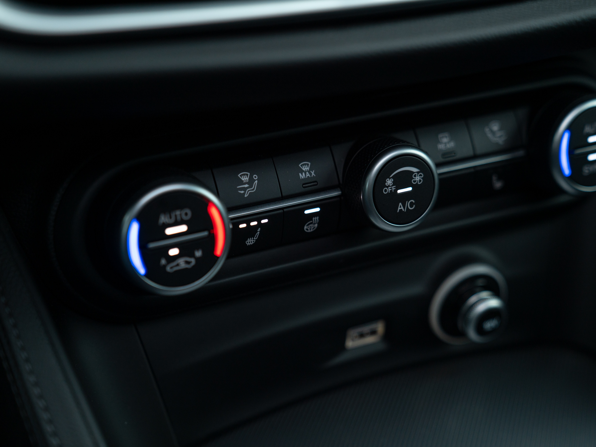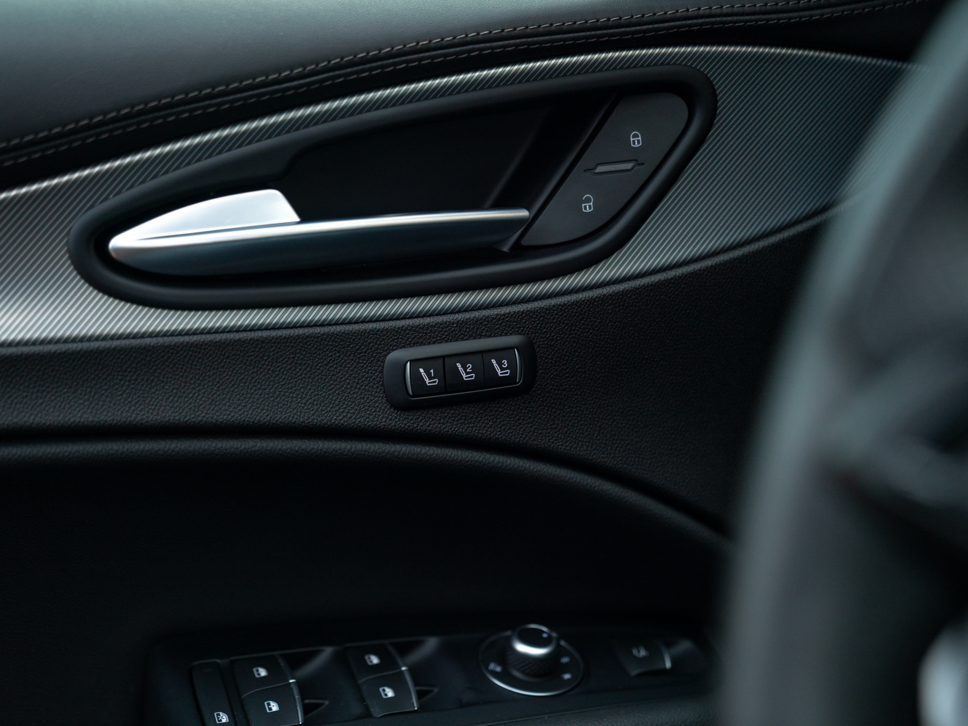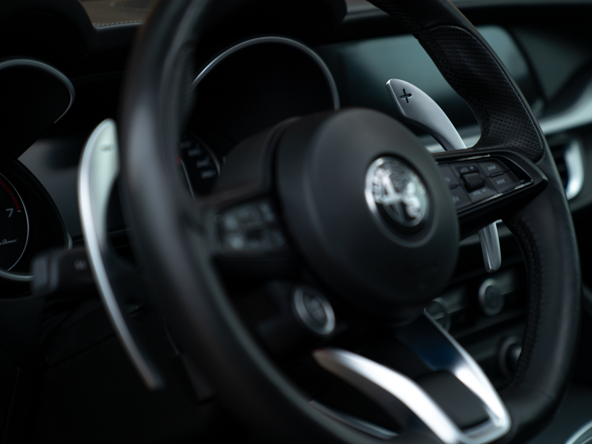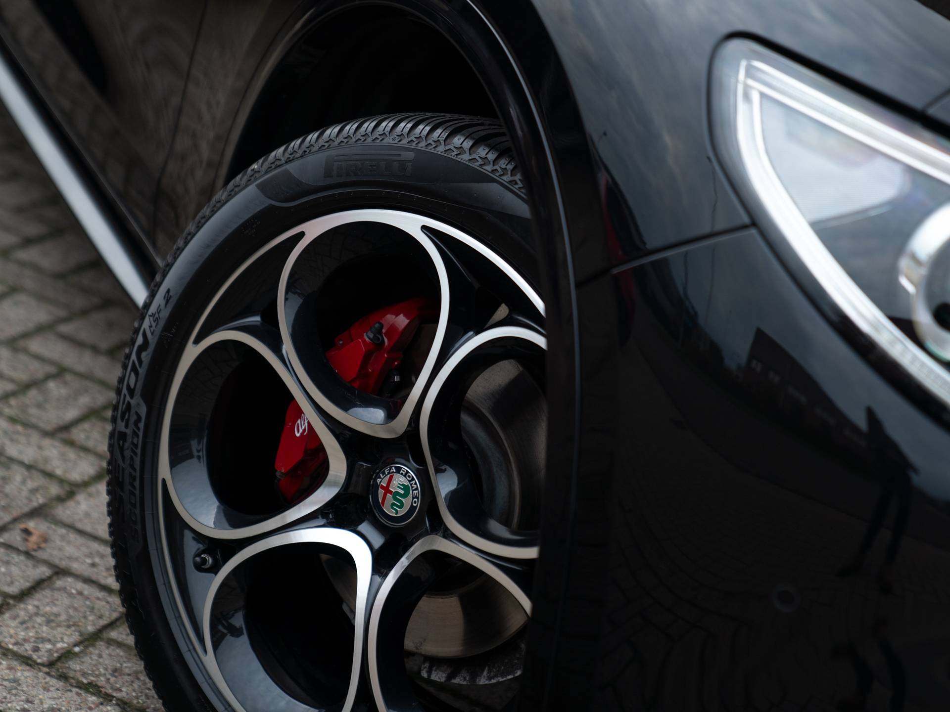Heerlijke Stelvio Veloce 280pk in het Nero Vulcano met een Nero Veloce interieur, panoramadak, adaptieve cruise control, Performance Pack, Apple CarPlay etc!