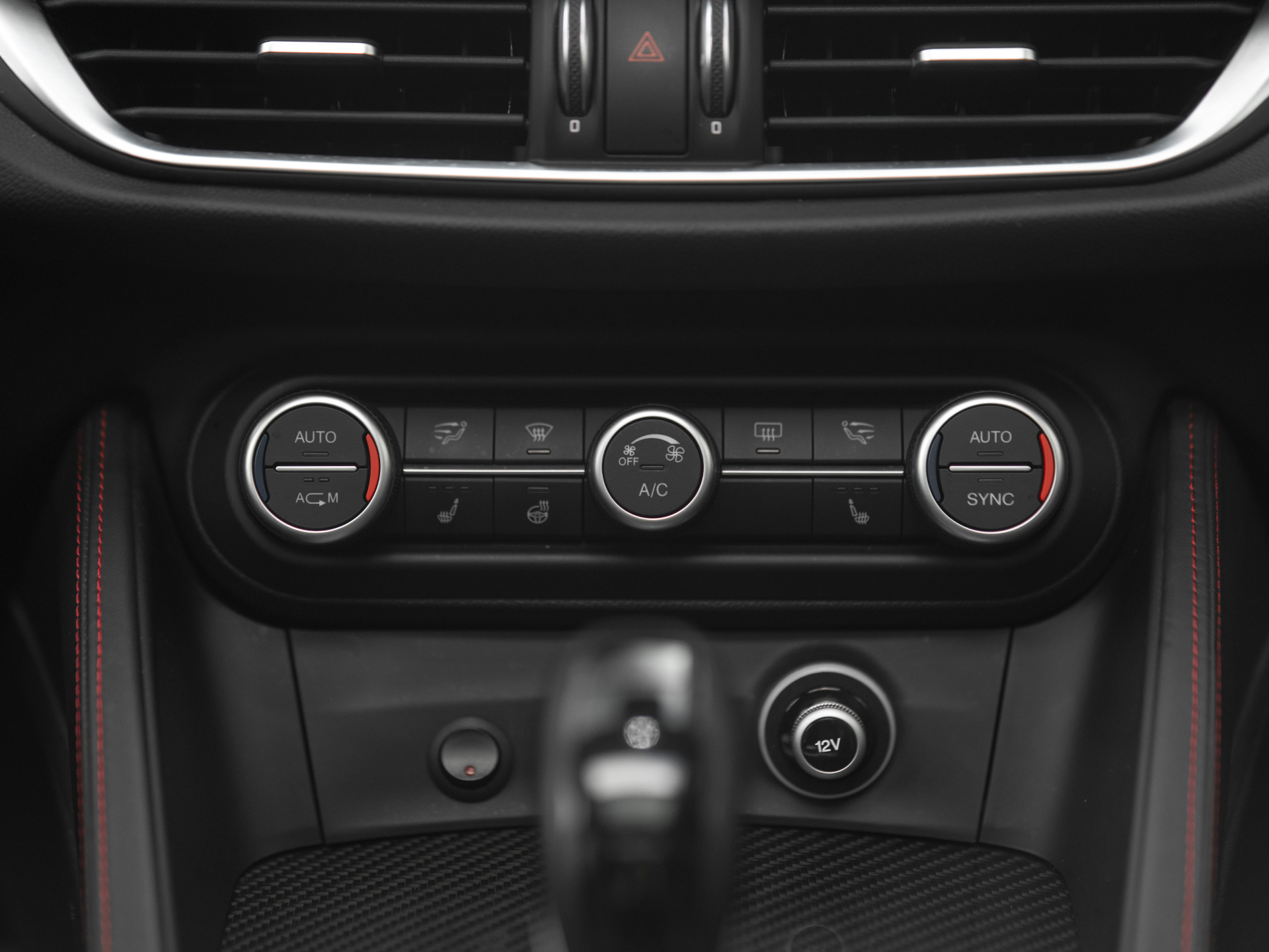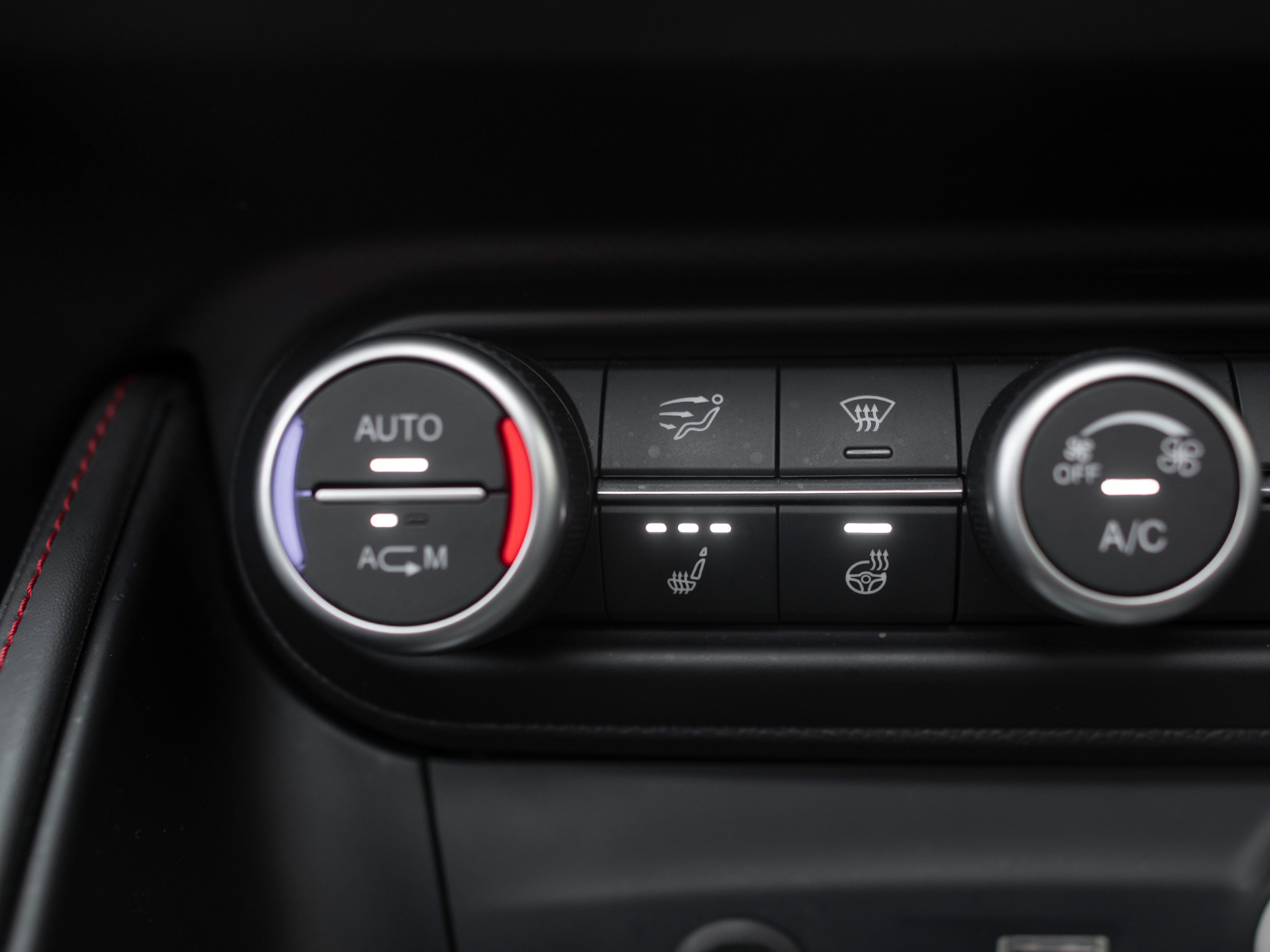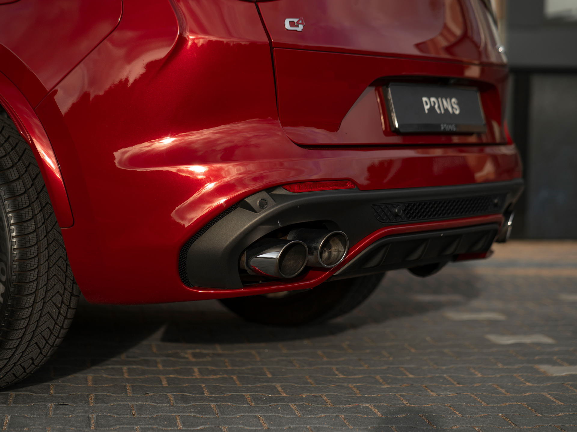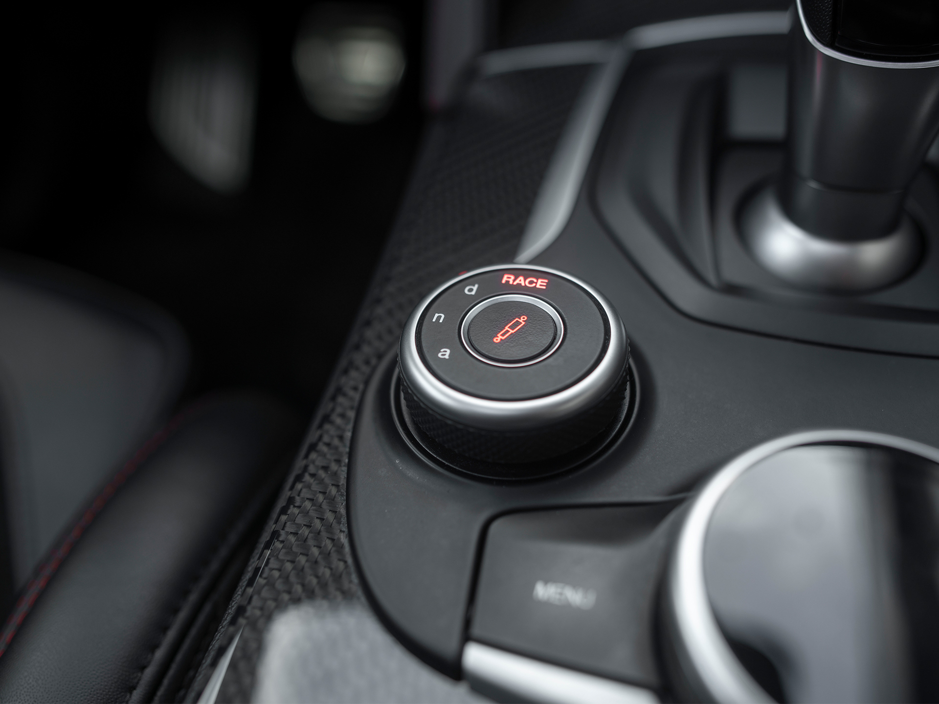 Carbon panelen versterken het gevoel in een onvervalste sportauto te zijn gestapt. Onder andere het Alcantara sportstuur bevat een lichtgewicht inleg. De verwarmbare Power Seats verhullen ondertussen niets van de luxe aan boord van de opper-Alfa. Laat staan de hoeveelheid power… Daarnaast beschikt dit bomvolle exemplaar over Adaptive Cruise Control, een elektrisch bedienbaar panoramadak en een Soundpack van Harman Kardon. Klinkt goed? Ja, zeker als u weet dat dit bovenop de standaarduitrusting is, bestaande uit Connect 3D navigatie inclusief CarPlay en 8,8 inch groot touchscreen, Driver Assist Plus, dimmende spiegels binnen en buiten, parkeersensoren voor + achter en een achteruitrijcamera.