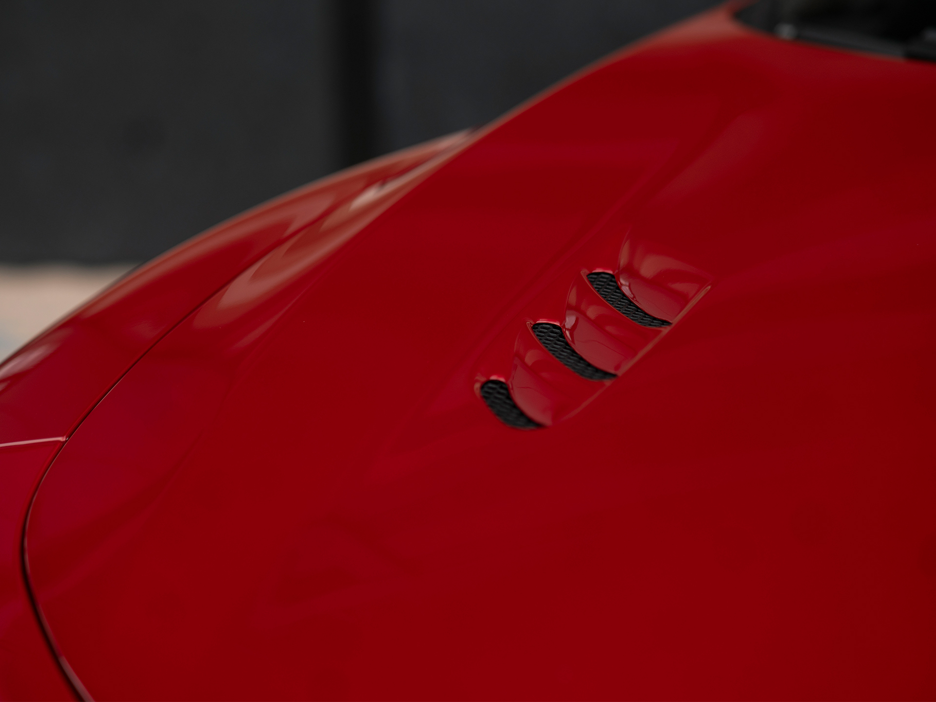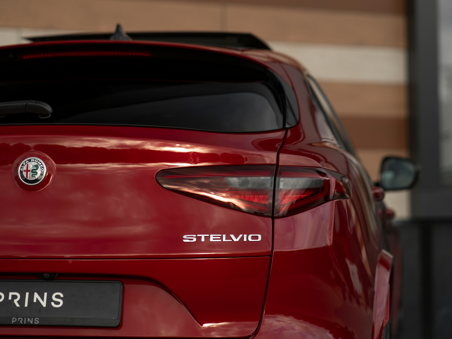 De kostbare Rosso Competizione carrosserielak legt het accent duidelijk op datgene waarmee de Stelvio zich onderscheidt: emotie. Ook van de 20 inch grote Q-velgen en carbon spiegels en grille raken we gemakkelijk in vuur en vlam. Hoe gaat een ander dit ooit overtreffen?