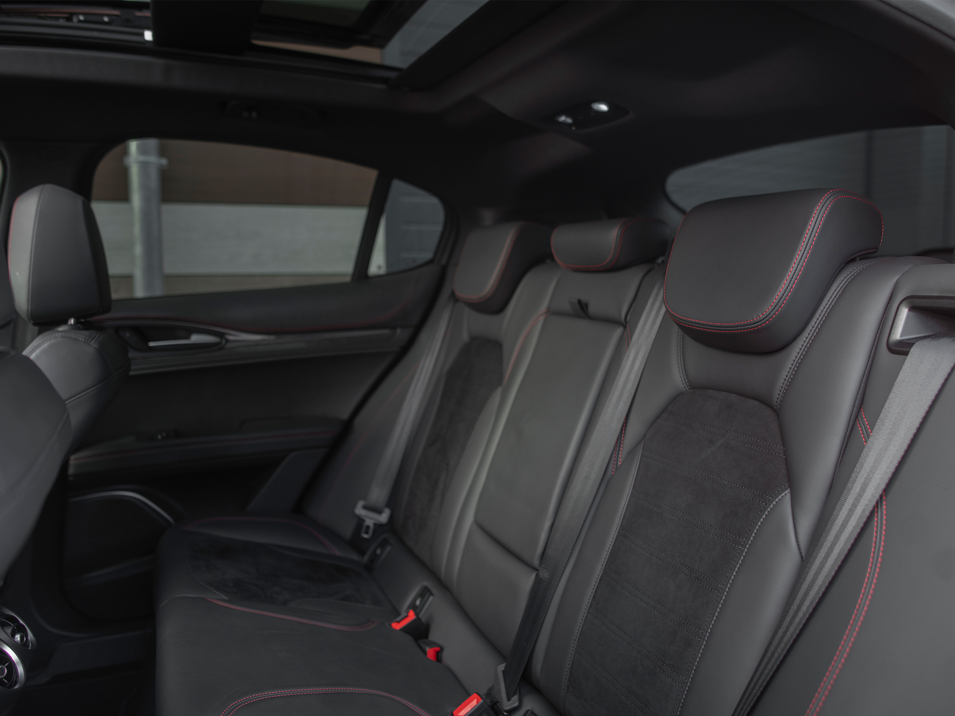 En dan die motor… 2,9 liter inhoud, 6 cilinders in V-opstelling, 2 turbo’s en 510 brute pk’s verdeeld over 4 wielen. Do we need to say more? Ja, eigenlijk wel. Want dit monstervermogen staat garant voor een explosieve rijbeleving en dito prestaties: een sprint trekken van 0-100 km/h is binnen 3,8 seconden afgerond. Daarnaast dankt de ‘snelste productie-SUV ter wereld’ zijn titel aan een topsnelheid van een duizelingwekkende 283 km/h. De ideale 50/50 gewichtsverdeling herinnert u eraan dat de grote Alfa ook in snel bochtenwerk zijn mannetje staat. Mamma mia, de volbloed liefhebber wordt op zijn wenken bediend…