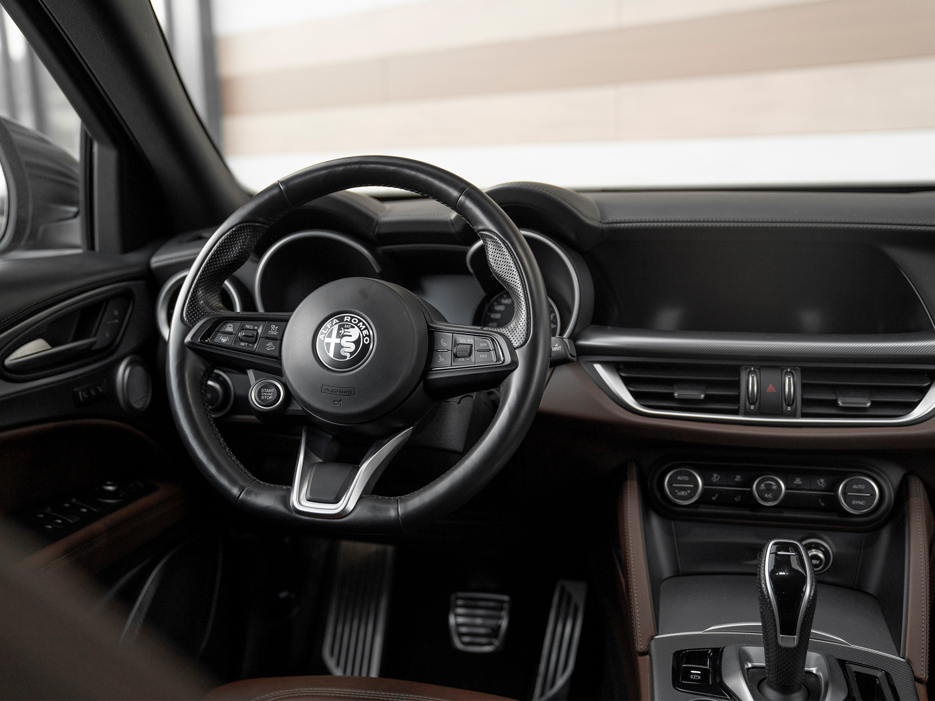 Van binnen treft ons echter een verassing: een Cioccolato lederen Veloce interieur… Mamma Mia wat is dit fraai zeg. Bij het zien van de lange lijst met extra’s zoals een lederen dashboard, Apple Carplay, Harman/Kardon audio, adaptieve cruise control, stoel- & stuurverwarming, memory-seat en een achteruitrijcamera waren we al helemaal verkocht. U hopelijk ook?
