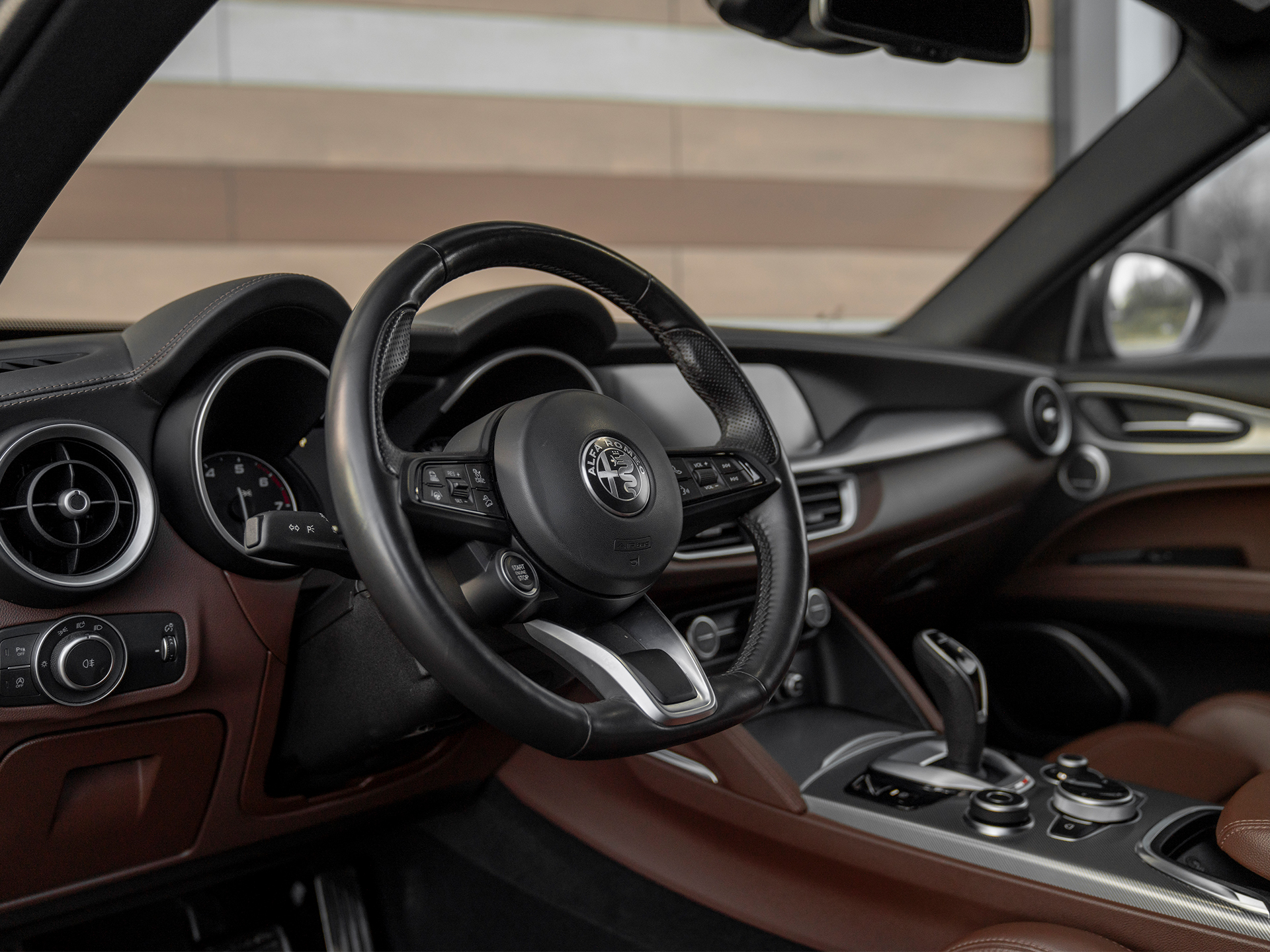 Lees verderPrecies zoals wij hem het liefst zien: de Stelvio 280pk Veloce in het Grigio Vesuvio. 20 inch velgen, een compleet Black Pack en rode remklauwen die de power van deze Veloce benadrukken zijn ook part of the deal.