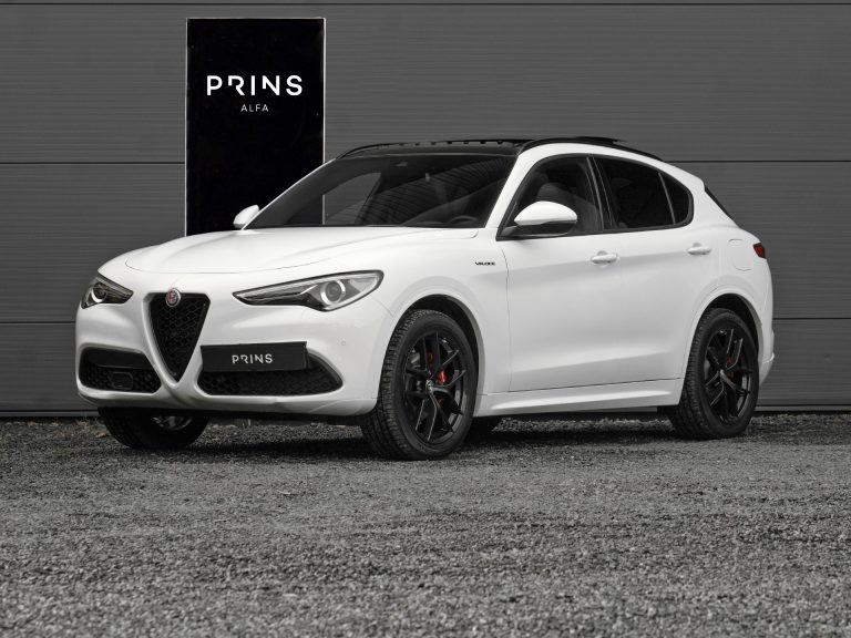 Als reactie op de wereldwijd nog steeds toenemende vraag naar SUV’s heeft Alfa Romeo een auto ontwikkeld die de standaard vormt binnen de dynamisch rijdende SUV’s. De Stelvio maakt verder veel indruk met zijn design, bouwkwaliteit en uitstraling. De prachtige Bianco Alfa lak die te zien is op deze Stelvio straalt het beste van twee werelden uit in combinatie met de zwarte details zoals de dakrailing, raamlijsten, uitlaatstukken, grille etc.. Niet alleen de lak is waanzinnig, ook de sportief rood gekleurde remklauwen springen eruit. De 20 inch grote Dark Gloss lichtmetalen velgen die onder de Alfa zitten, maken het geheel af. Alles aan deze Stelvio schreeuwt het ingetogen uit: Veloce!