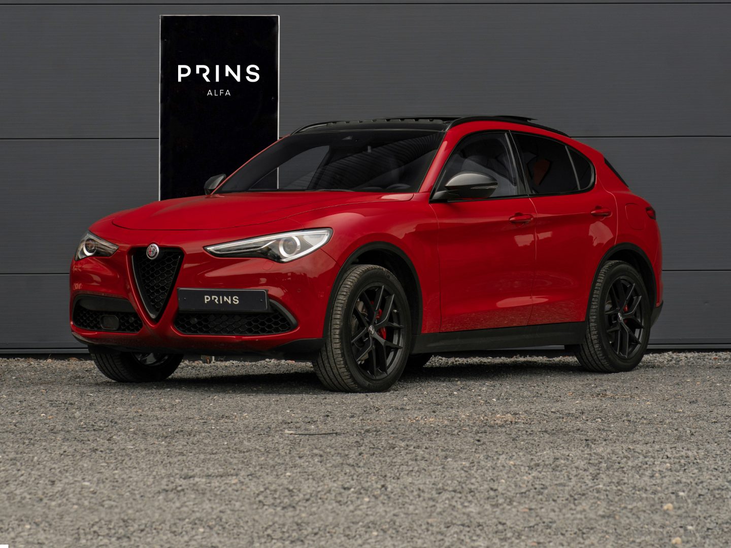 Het exterieur is uitgevoerd in het kenmerkende Rosso Alfa en voorzien van alle mogelijke donkere exterieurdetails evenals donkere 20 inch wielen. Een contrasterende kleurstelling, o-zo-gaaf op het stoere design van de Stelvio! Minder kleurrijk is het interieur, uitgevoerd met zwarte Veloce sportstoelen (elektr. verstelbaar, verwarmbaar en met memory!), geborsteld aluminium en een zwarte hemel! Extra’s zijn onder andere een panoramadak, stoel- en stuurwielverwarming, cruise control, achteruitrijcamera, Apple Carplay etc!