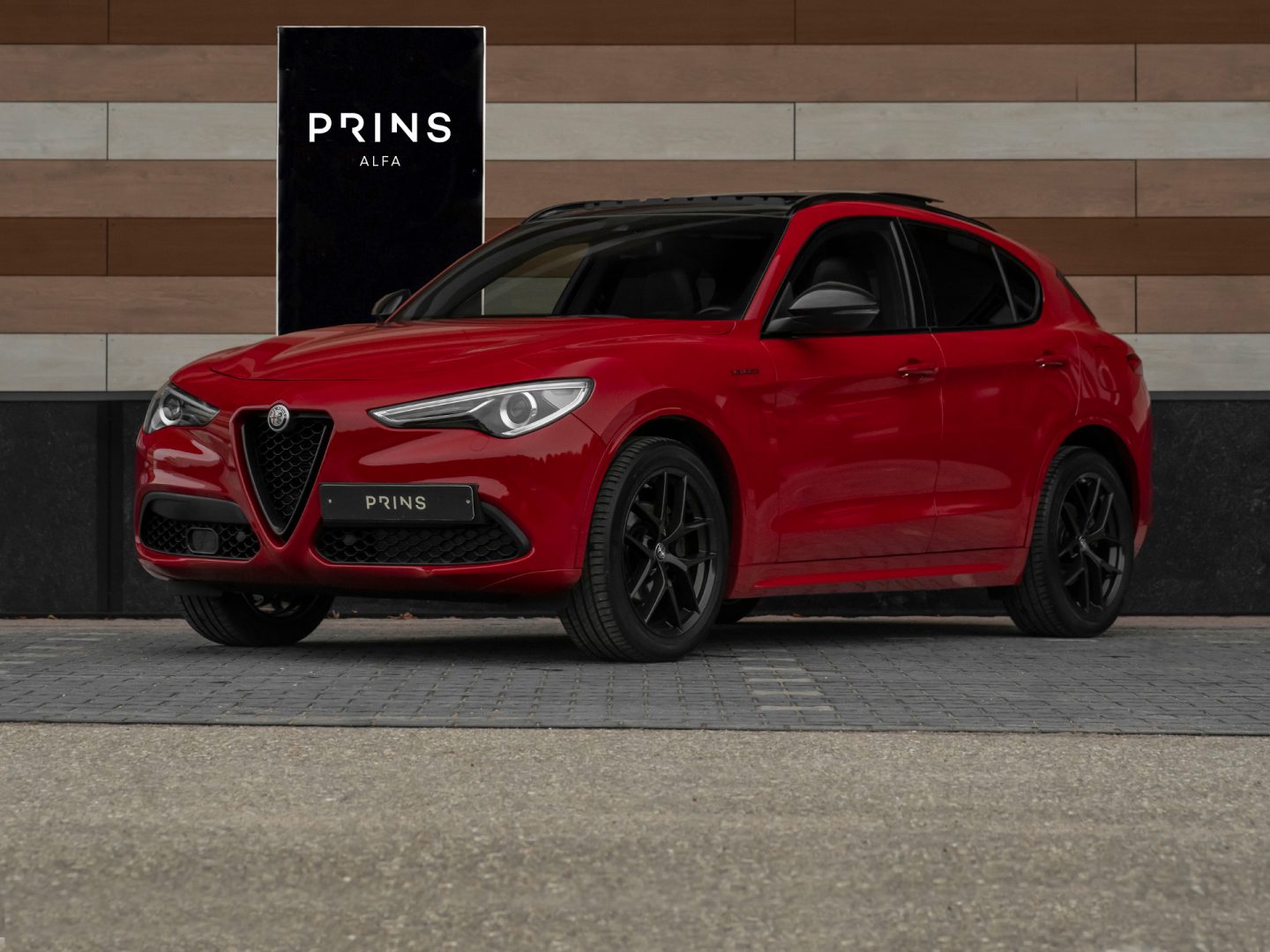 Deze Veloce is uitgevoerd in het kenmerkende Rosso Alfa en voorzien van alle mogelijke donkere exterieurdetails evenals donkere 20 inch wielen. Een contrasterende kleurstelling, o-zo-gaaf op het stoere design van de Stelvio! De Nero remklauwen kleden deze Italiaan stijlvol af.