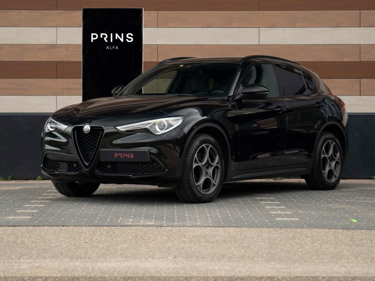 Nieuw binnen: schitterende Stelvio 2.0T AWD in het Nero Vulcano met luxe Velcoe stoelen, panoramadak, Apple CarPlay etc.