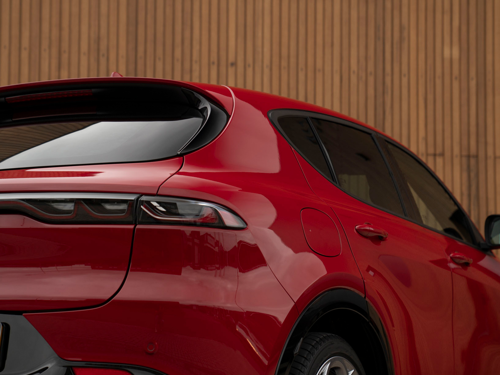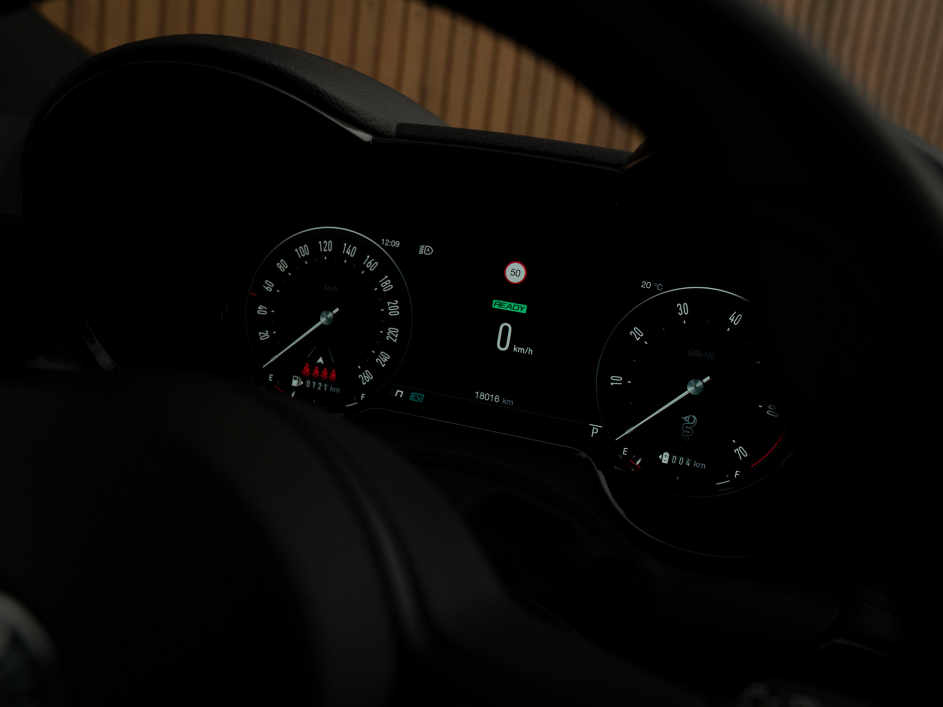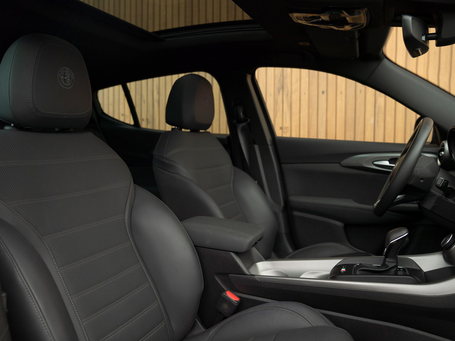 Het Rosso Alfa lakwerk laat de unieke design elementen van deze Tonale Edizione Speciale perfect tot hun recht komen. De zilveren velgen met open design geven de Rosso remklauwen bloot en zijn typerend voor Alfa Romeo met haar rijke historie.