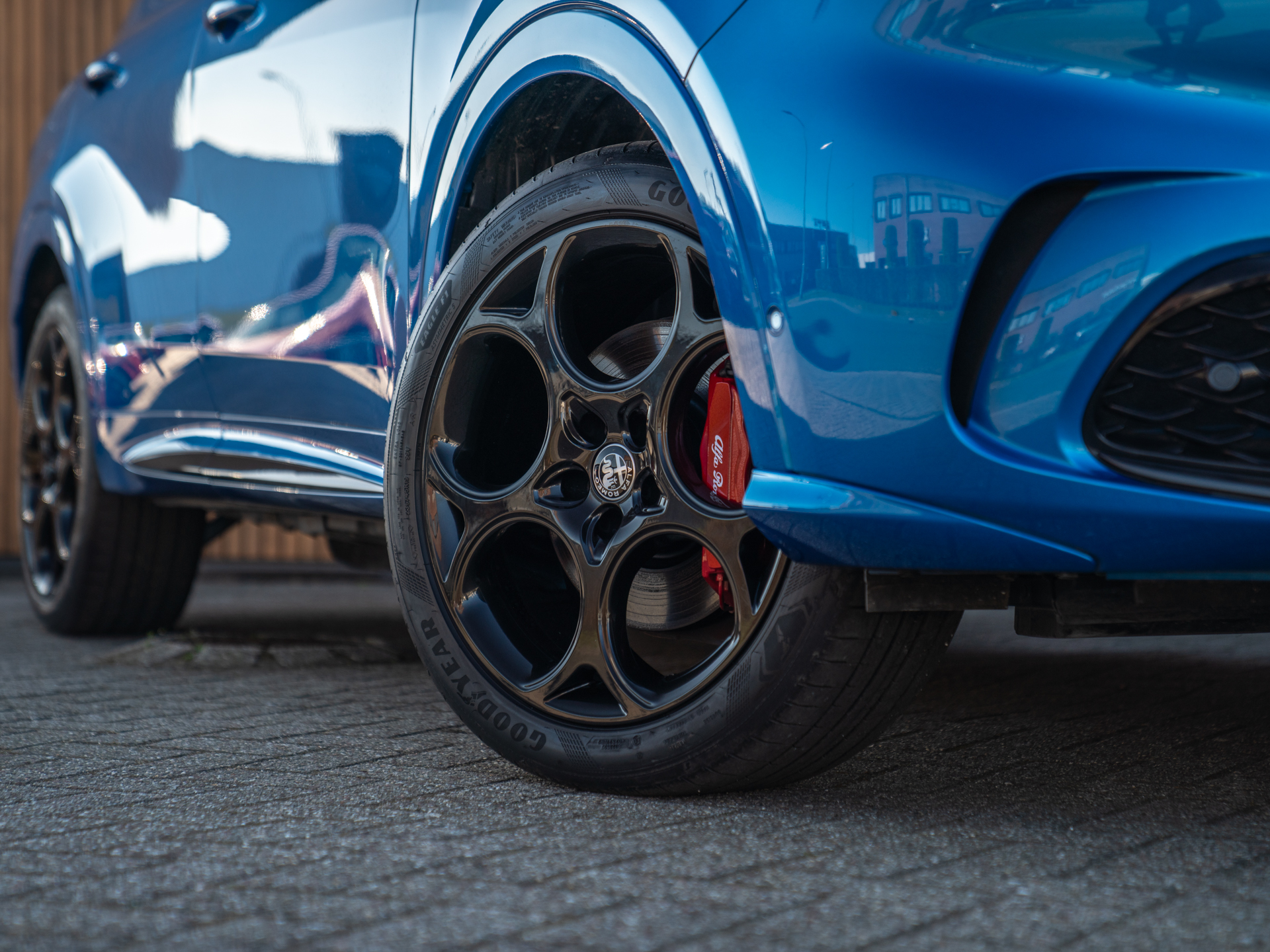 Verwacht: schitterende Tonale PHEV 280pk Veloce! Wij hebben deze unieke Tonale voor de vorige eigneaar voorzien van het Edizione Prins pakket met meegespoten wielkasten en hoogglans zwarte details zoals de lijsten en uitlaattips. Veel mooier wordt deze gave Veloce niet.