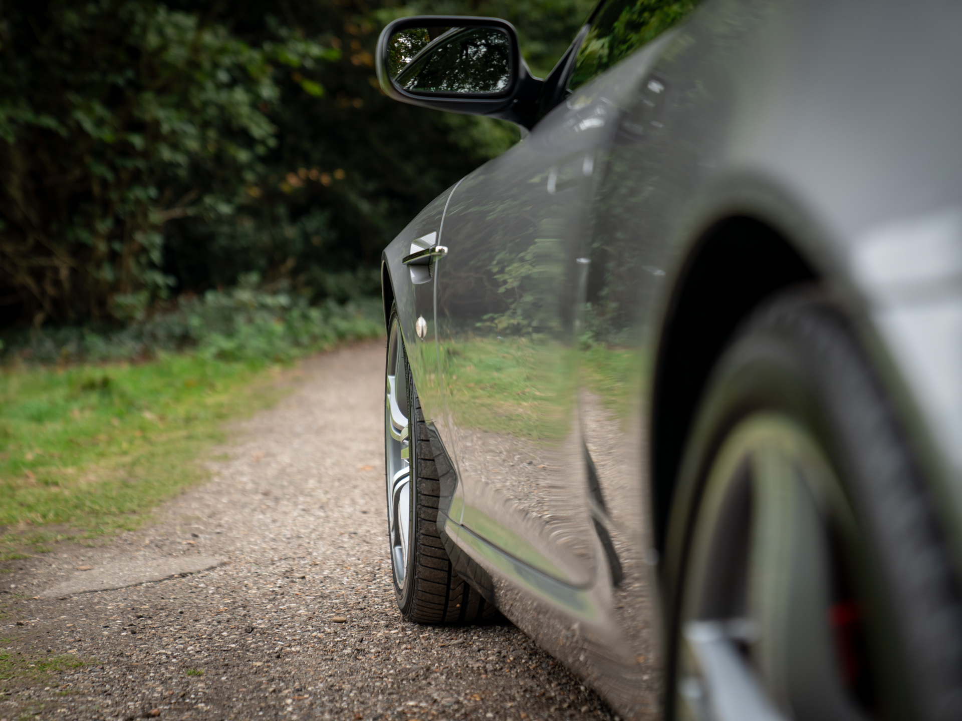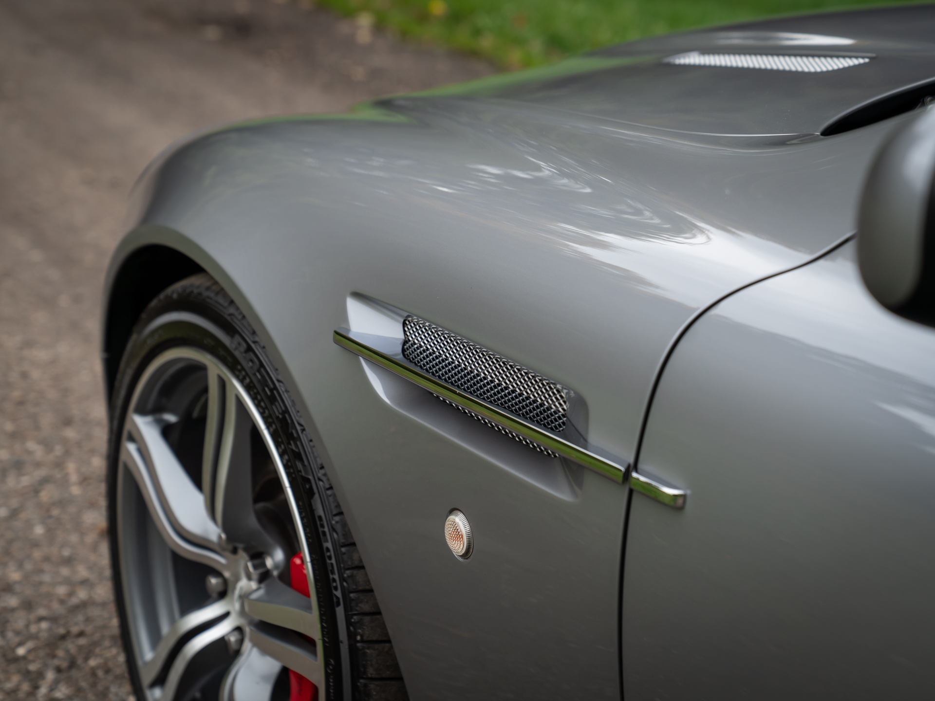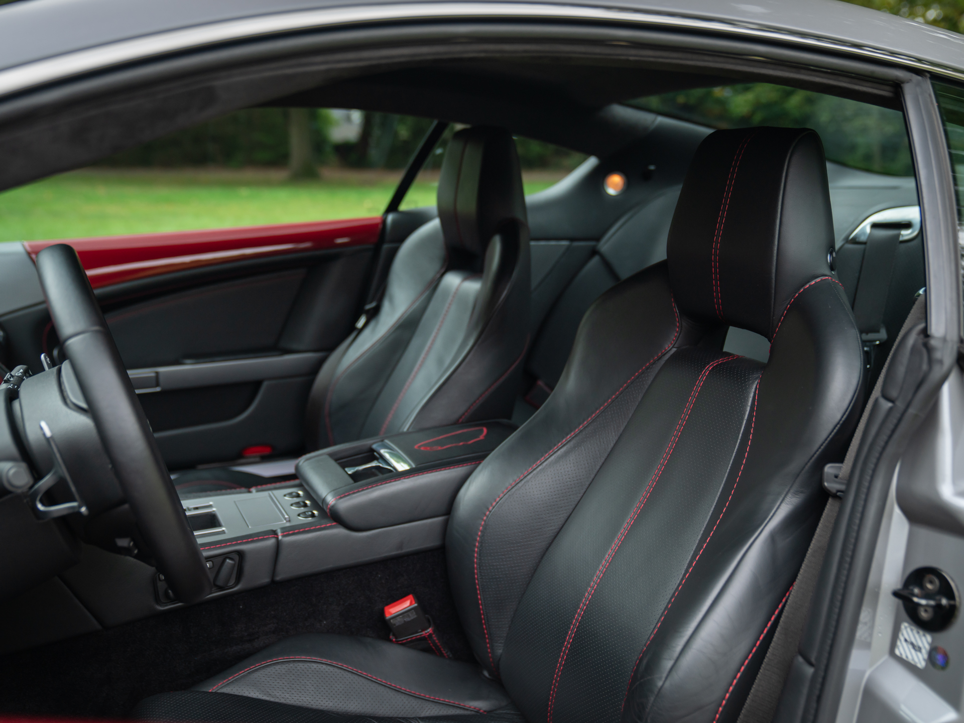 Ook helder zijn de achterlichten, Bright Front Grille, Magnum Silver Meshes en 19 inch grote aluminium velgen voorzien van een Diamond Turned Finish. Achter de dubbele 5-spaaks wielen schuilen rode remklauwen. In onze fantasie refereren die aan de rood opgloeiende schijven van de DBR9 in het heetst van de strijd. De rode badge achterop met daarop de contouren van het circuit laat er geen twijfel over bestaan dat er met deze AM DB9 V12 iets bijzonders aan de hand is.