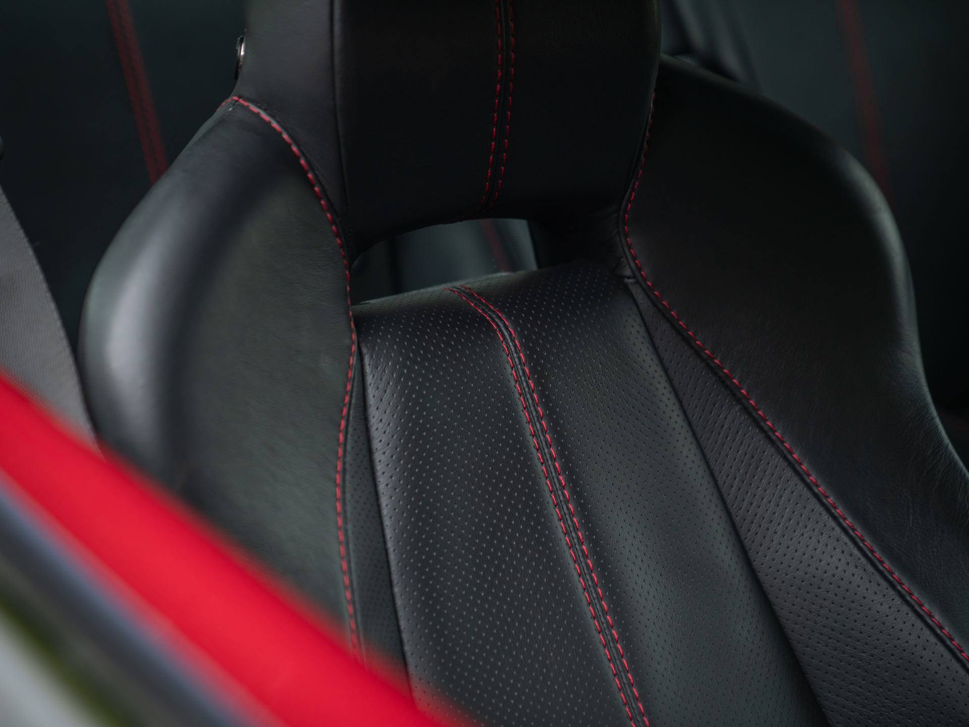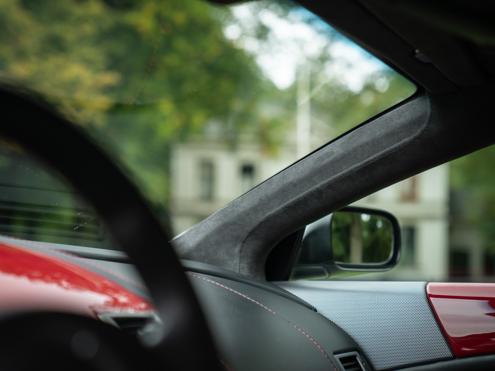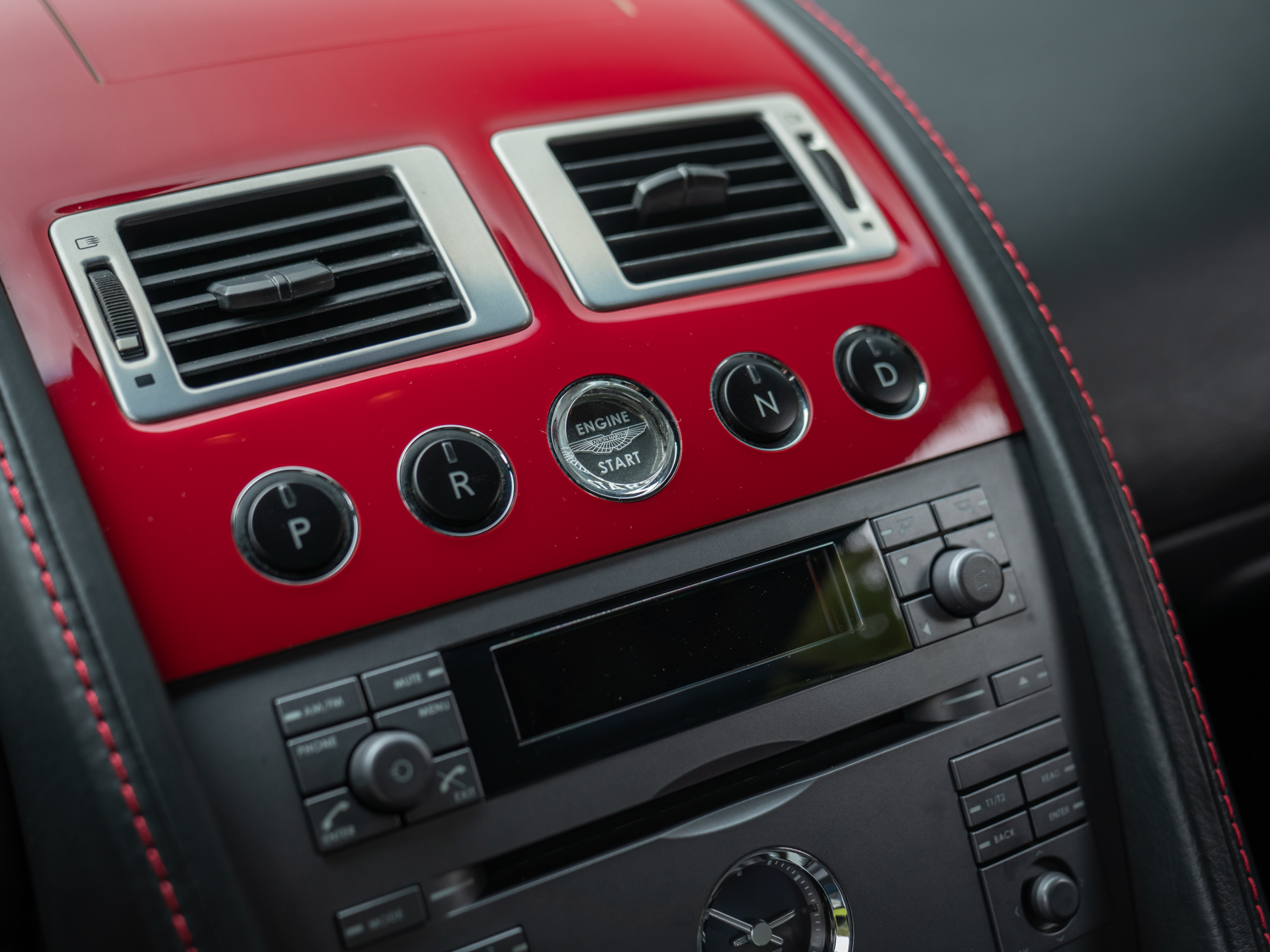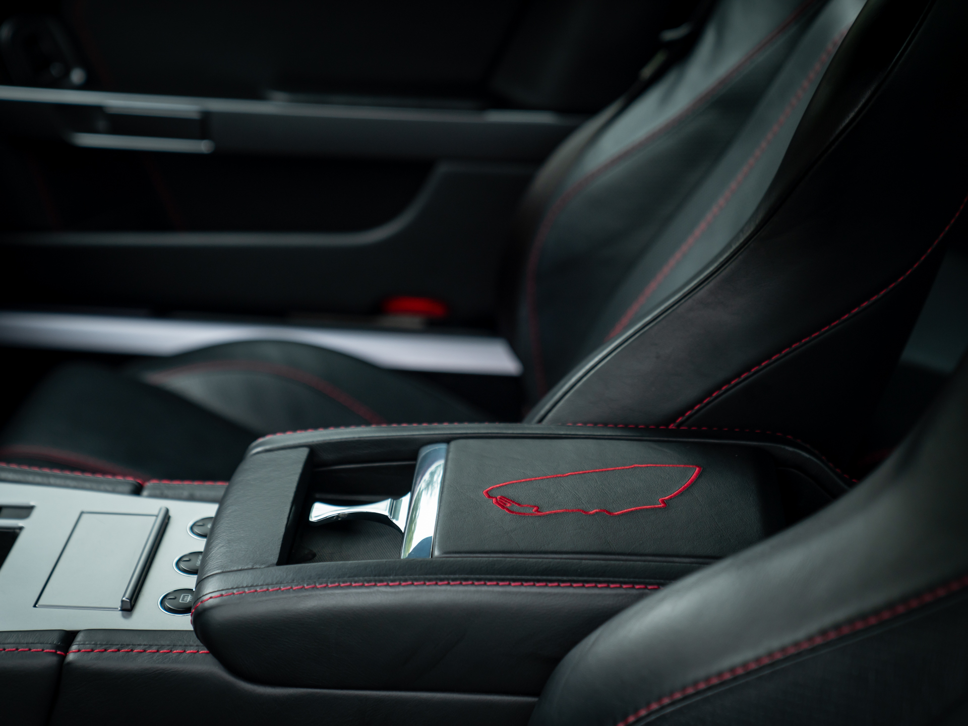 De unieke accenten zetten zich als een rode draad voort aan boord van de Aston Martin DB9 LM. Letterlijk. Zo zijn aan de Obsidian Black lederen delen contrasterende stiksels toegevoegd in de kleur rood. En geloof ons: dat zijn er veel. Het leder op de stoelen is van het geperforeerde soort en de middenarmsteun bevat een rood gestikte circuit lay-out. Nóg meer rood is er in de vorm van een Tertre Rouge afwerking op het dashboard en bovenaan de portieren. Een naam die eveneens gelinkt is aan het fameuze Franse circuit; het gaat om een bocht om precies te zijn. Tot slot is de hemelbekleding in dit geval uitgevoerd in Tailors Grey en is de dorpellijst uitgerust met een genummerde badge – mocht u zoeken naar dat beetje extra bevestiging van de beperkte oplage waarin de AM DB9 Le Mans geproduceerd is…