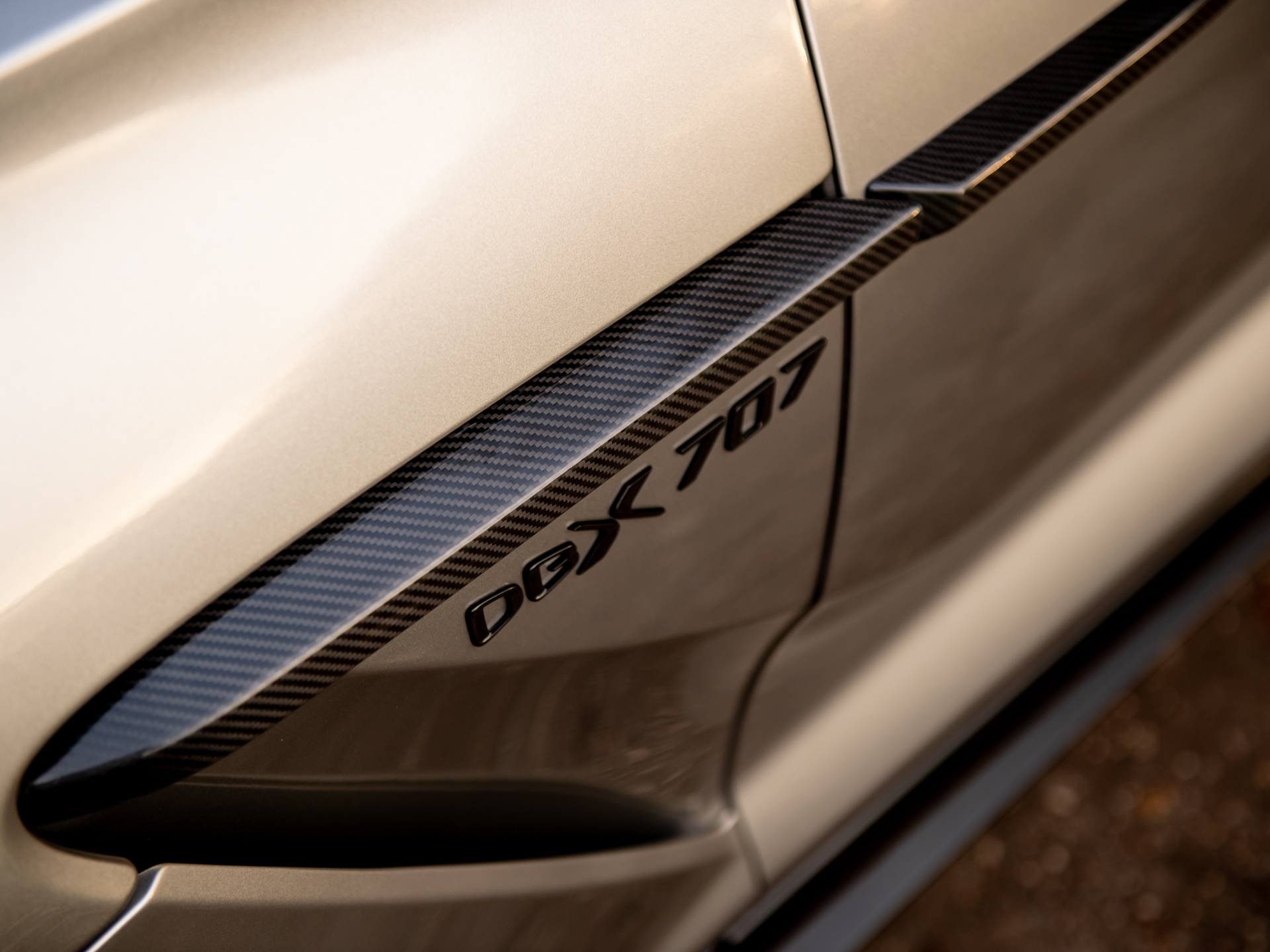 Toen legendarisch sportwagenmerk Aston Martin aankondigde met een SUV te komen, vonden we dat waanzin. Nu we deze schitterende DBX 707 scherp op het netvlies hebben staan, vinden we dat nog steeds. Als in waanzinnig mooi. Wat de DBX anders maakt dan alle andere Performance-SUV’s? Zijn fantastische stijl. Immers, hoog of niet, deze Aston Martin verloochent zijn ware aard niet. Dit faceliftmodel in hoogst begerenswaardige 707-trim, is uniek uitgevoerd. Dit geldt voor zowel de kleurstelling als de aankleding: de carbon details en 23 inch Forged velgen contrasteren subliem bij het zilveren koetswerk. Binnenin maken geventileerde Sports Plus Seats, een carbon inlay en Jewelery Pack het verschil. De elektrische achterklep laat zich door middel van gebaren bedienen. Dat geldt niet voor uw rechtervoet: die gaat van nature naar beneden zodra de almachtige bi-turbo V8 alle 707 paarden richting het asfalt stuwt. De brute brul die daarmee gepaard gaat laat niets heel van de toch ook al geweldige sound van Bowers & Wilkins. Double o seven is niet meer. Leve seven o seven!