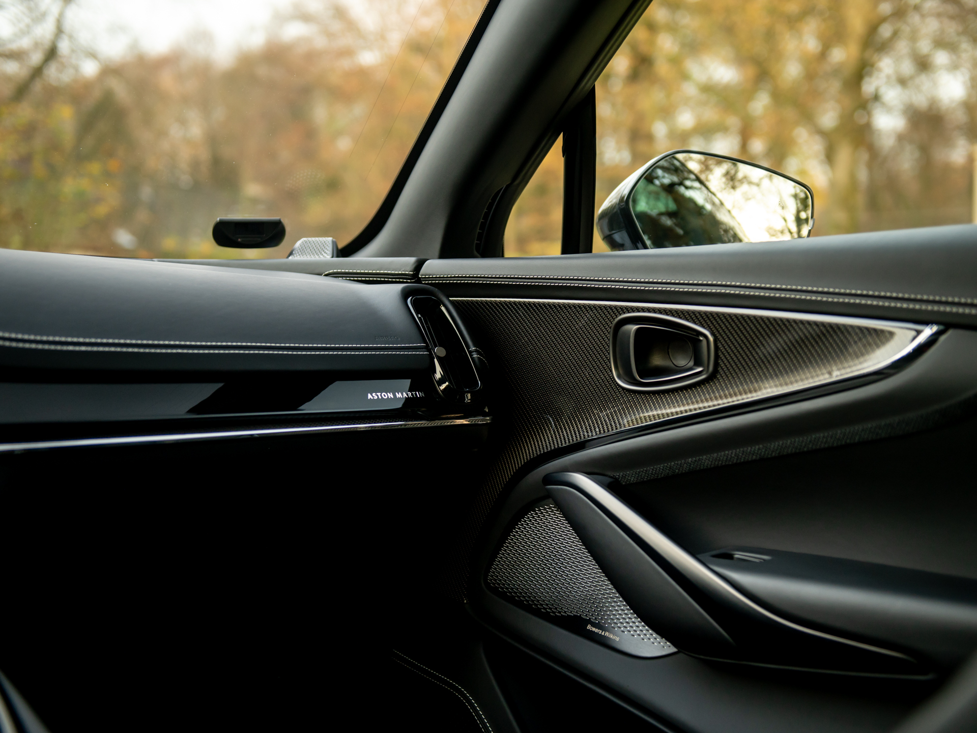 Terwijl uw achterhoofd met veel druk tegen de Aston Martin Wing aan wordt geduwd, beginnen vingertoppen te tintelen en handpalmen klammig te worden – zeker met de stuurwielverwarming ingeschakeld. Ter compensatie kunnen de meervoudig elektrisch te verstellen Sports Plus Seats gekoeld worden. Immers, zweten is niet iets wat bij een gentleman of Bond-girl zou passen. Zelfs niet in het heetst van de strijd. Wat het leven extra aangenaam maakt zijn de Bowers & Wilkins geluidsinstallatie en elektrische achterklep die reageert op gebaren. Hierdoor kunt u binnentreden zo nonchalant als 007 die zijn colbert dichtslaat nadat hij met veel geweld zijn opponenten achter zich laat.