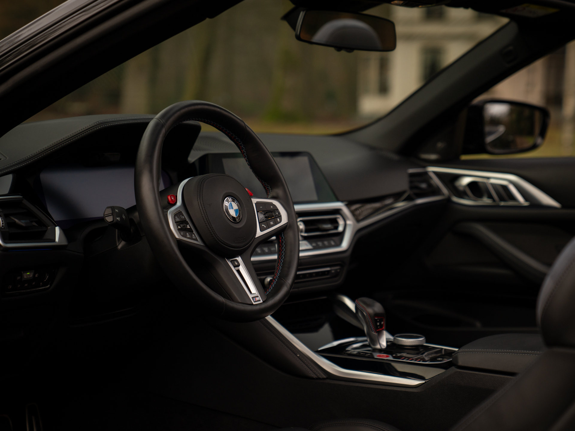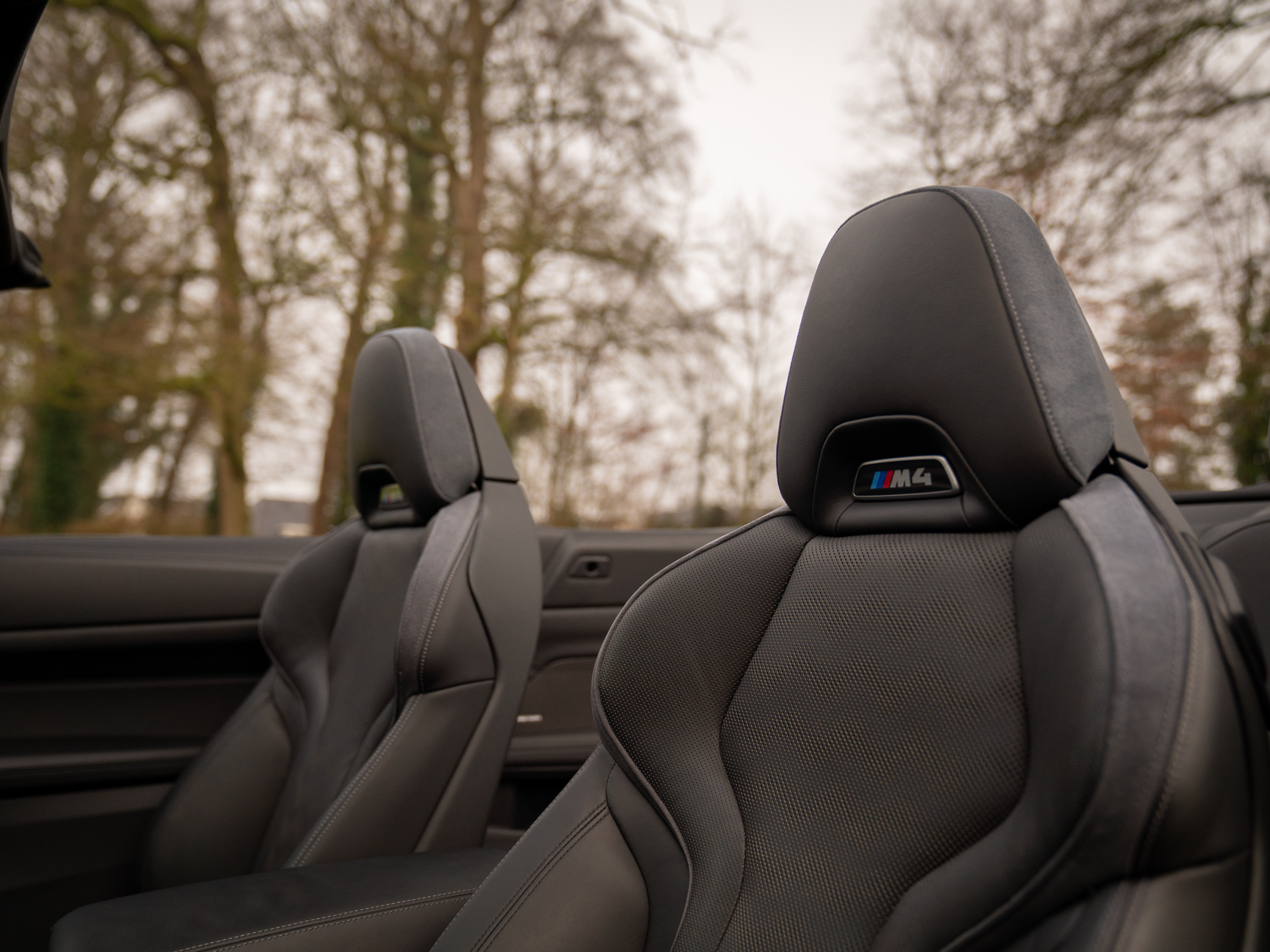 Nieuw binnen: heerlijke en complete M4 Competition Cabrio met het M Drivers Package, Harman/Kardon, stoelventilatie, Laser koplampen, Head-up display etc!