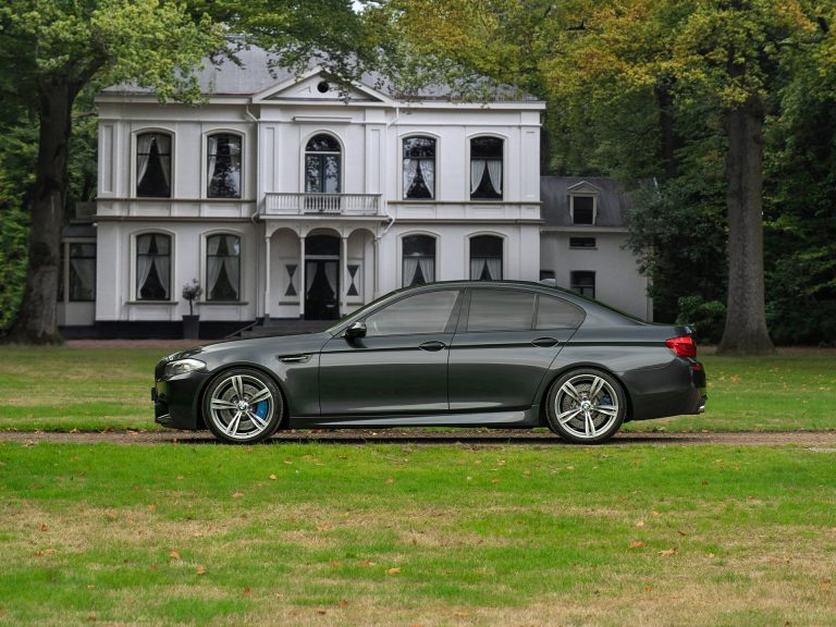 De BMW M5 F10 leverde 2 cilinders en 0,6 liter motorinhoud in ten opzichte van zijn voorganger en nam ondertussen flink in kracht toe. Hoe dan? Door 2 turbo’s te monteren perst de 4,4 liter V8 maar liefst 560 pk en 680 Nm koppel uit het M Performance blok. Genoeg om de 0-100 km/h sprint binnen 4,4 teller af te raffelen. De elektronisch begrensde topsnelheid van 250 km/h is er natuurlijk vooral voor de bühne. In werkelijkheid gaat de M5 er dik overheen en rijdt hij het Duitse herenakkoord makkelijk aan flarden. BMW monteerde 7 automatische versnellingen, echter de M5 is er niet minder speels om; aandrijving geschiedt namelijk enkel via de achterwielen. De achterkant wil dus weleens een ‘stapje’ opzij wagen, wat inherent is aan een powersedan pur sang. Kortom, geen jankpartij maar een glijpartij. Beleef ’t bij Prins.