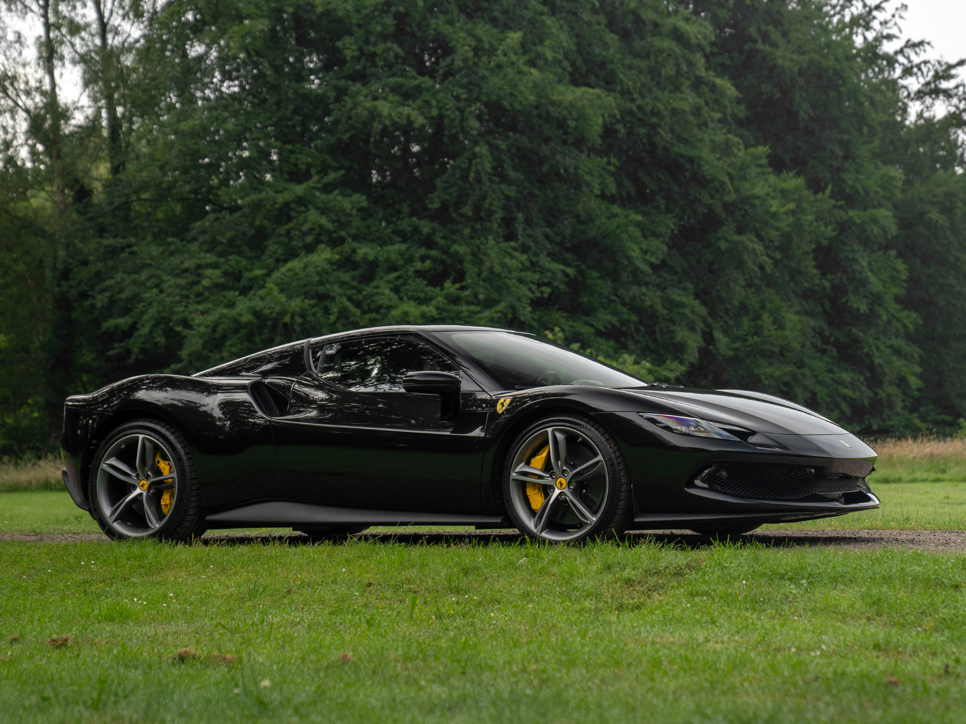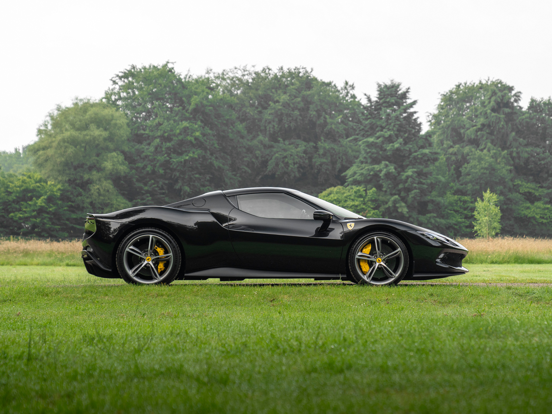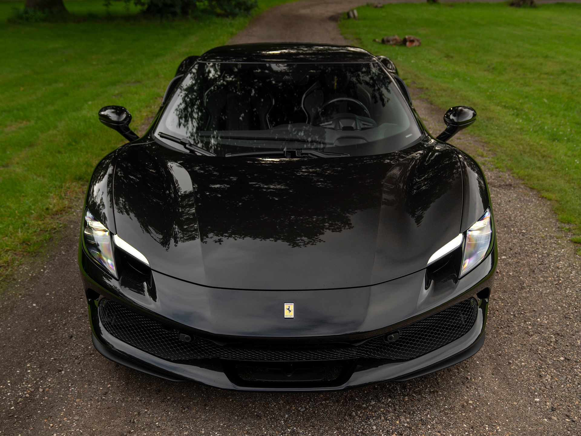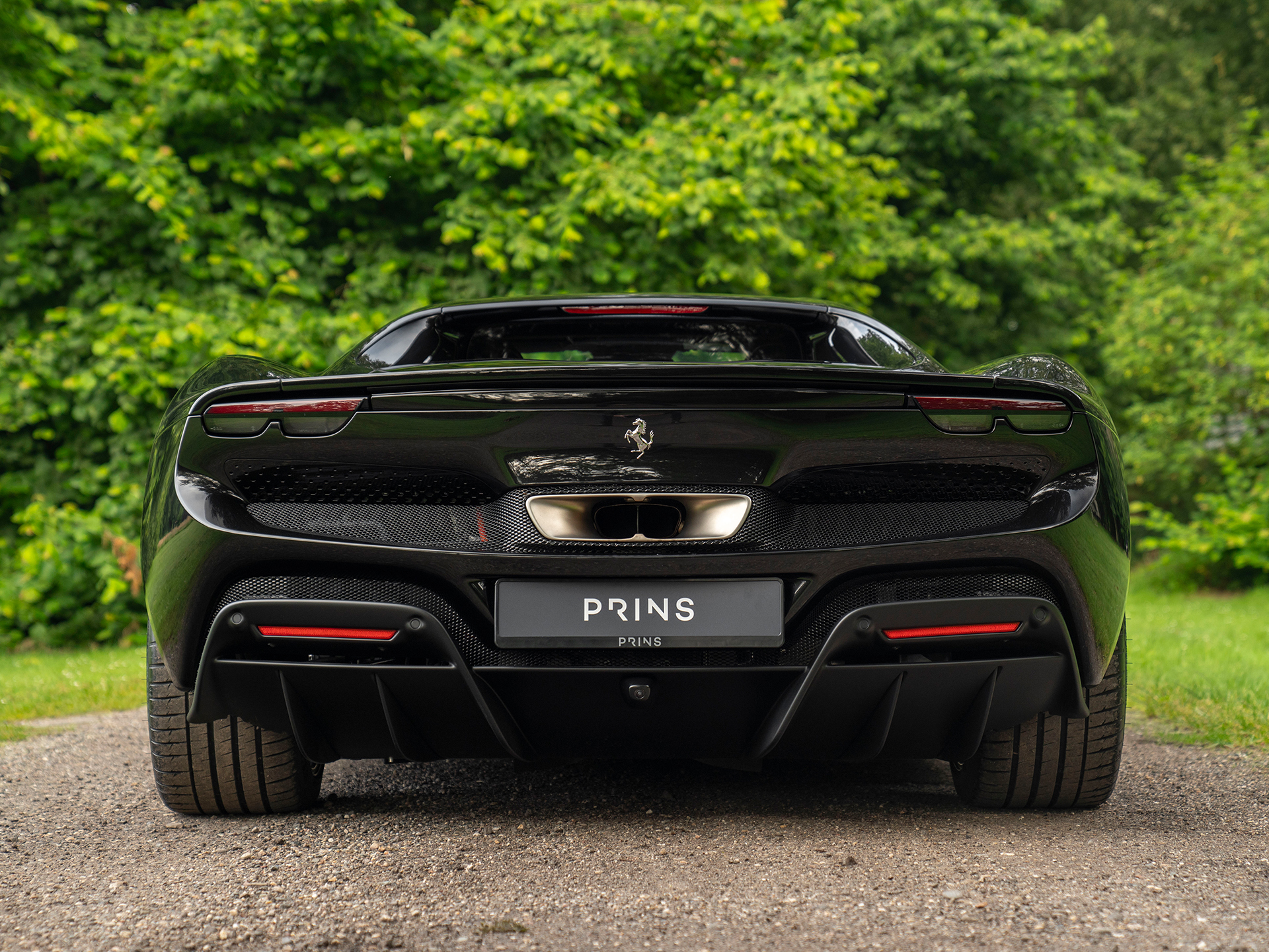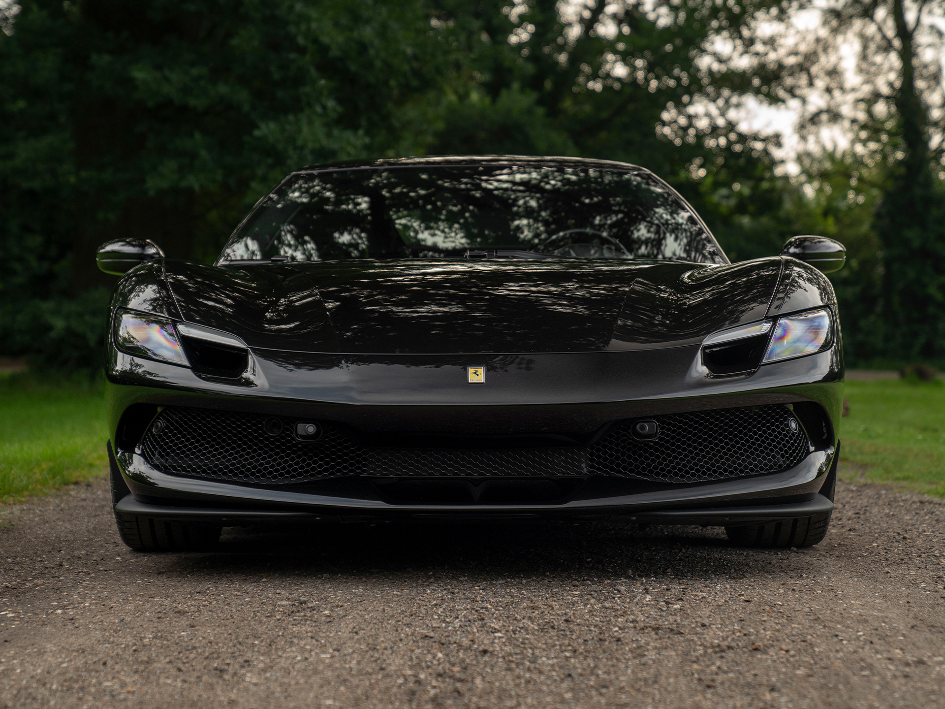 Heel puur en tegelijkertijd helemaal vol met opties: deze schitterend gespecificeerde Ferrari 296 GTB is origineel Nederlands geleverd en komt rechtstreeks bij de 1e eigenaar vandaan. Het inktzwarte lakwerk is een bekende uit Maranello en zorgt voor een mooie, cleane uitstraling. Dat het juist op de 296 een Extra-Range Colour betreft, maakt ‘m dan weer extra uniek. Uniek is tevens de kilometerstand die niet verder komt dan een enkele rit Parijs. Niet geheel verrassend is het een btw-auto en dat kan voor u fiscaal dan weer gunstig uitpakken. Ook gunstig is het feit dat u een nagenoeg niet van nieuw te onderscheiden Ferrari kunt rijden – en nog snel ook, in tegenstelling tot de levertijd die de fabriek afgeeft. Áls u al een nieuwe order kunt plaatsen… Niet meteen aan de buitenkant te zien zijn peperdure opties zoals Carbon Racing Seats inclusief Racing Seat Lifter, een carbon stuur mét LED Shift Indicator, een front-liftsysteem, camera’s voor + achter en nog heel veel meer. Klaar om vol in de lichtgewicht kuipstoelen te worden gedrukt terwijl er 830 paarden in 2,9 seconden van 0 naar 100 km/h galopperen?