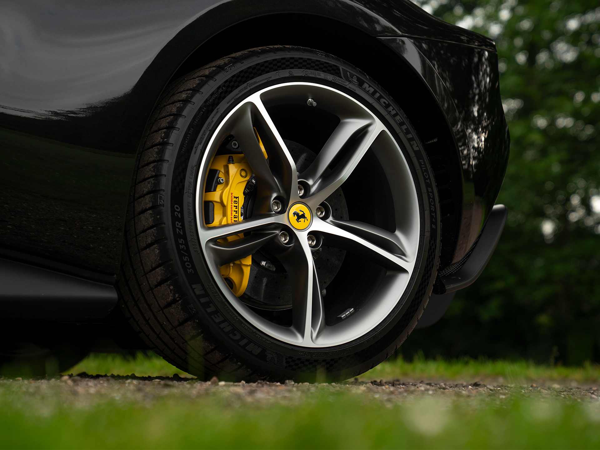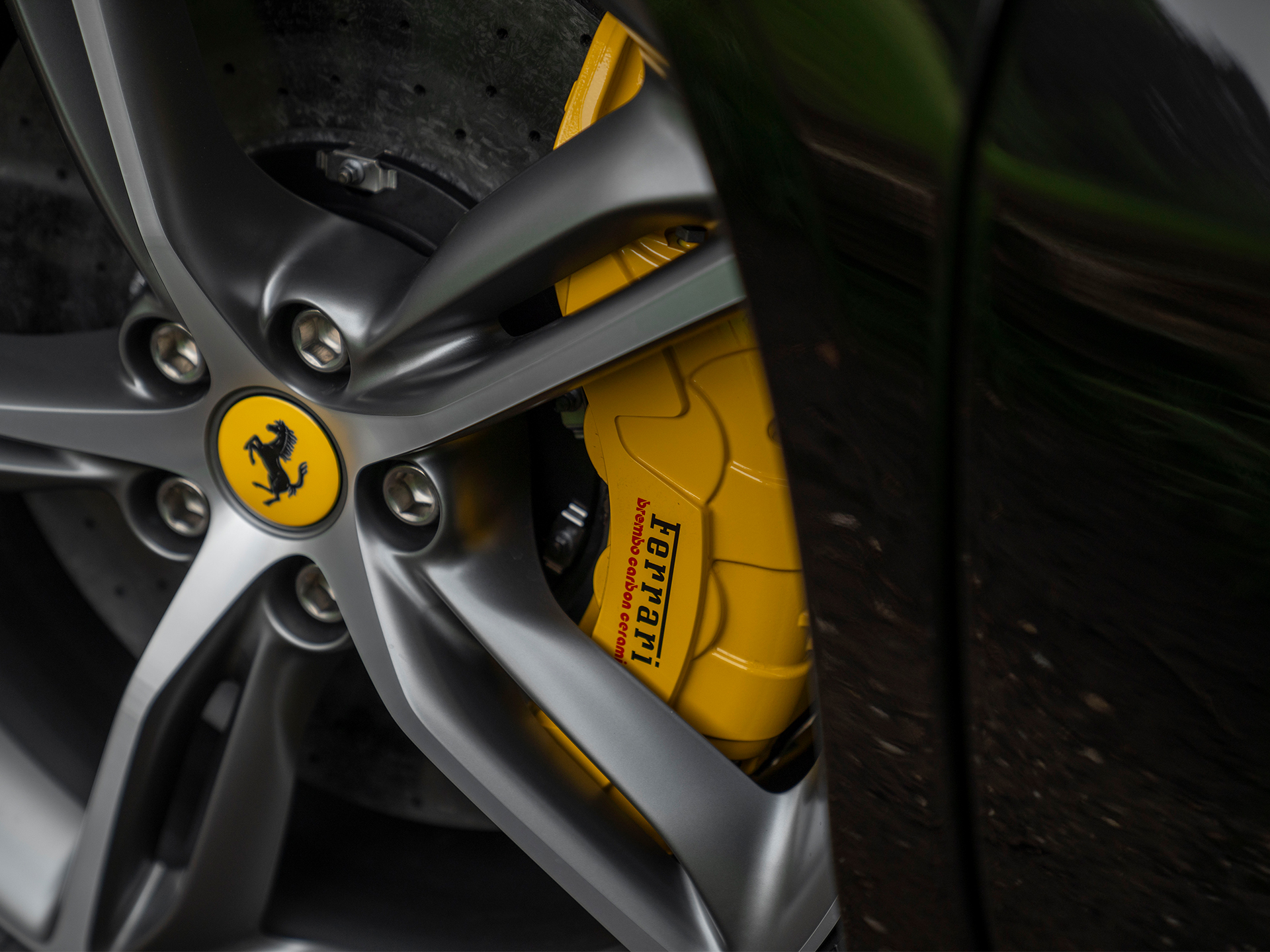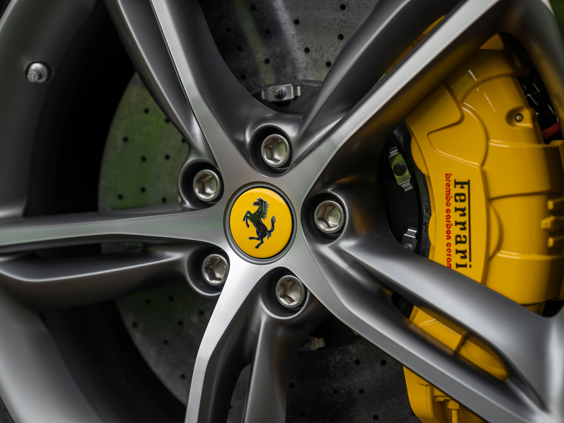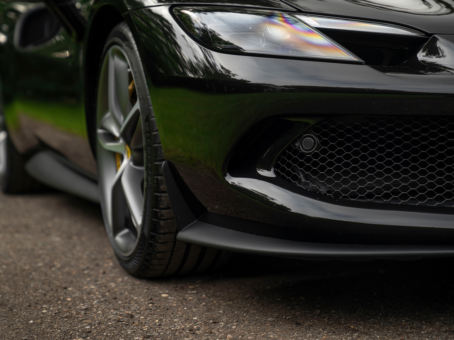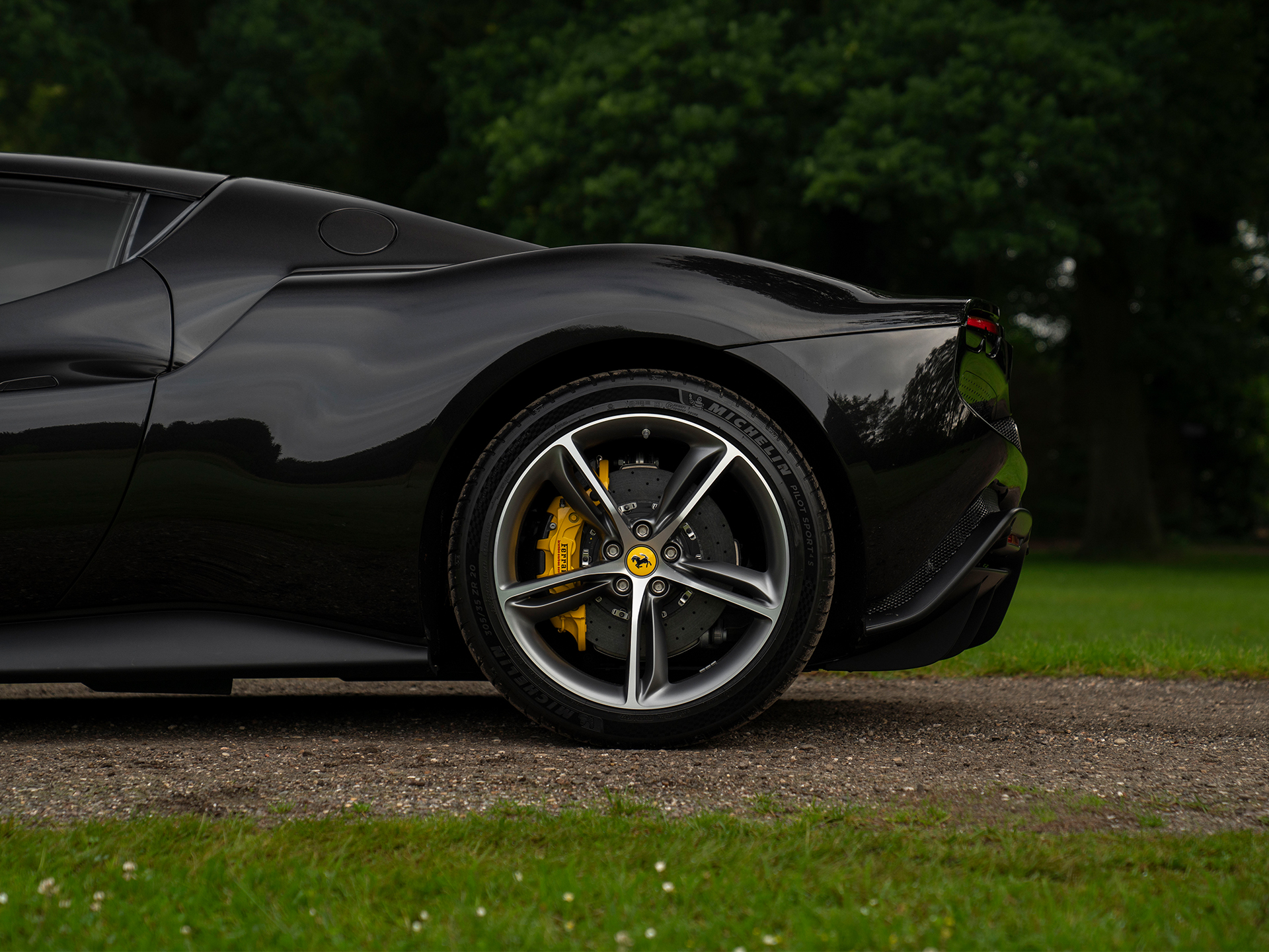 Paraderen kan onze 296 Gran Turismo Berlinetta ook als de beste. Met zijn vlijmscherpe design en geavanceerde aerodynamica steelt hij eenvoudig de show op plekken waar je de Ferrari wel én niet verwacht. Gezien de baanbrekende performance spreekt het voor zich dat de GTB opvalt op het circuit. Echter, zet hem in een traditioneel kunstmuseum en al het andere valt in het niet. Zelfs of juist in een ingetogen kleurstelling zoals Nero Daytona weet de Ferrari 296 ons Italiaanse autohart te stelen. Fijnproevers zullen het extra interessant vinden dat het diepzwarte lakwerk op dit model tot de Classic Colours behoort in de designstudio van Maranello. Extra-Range dus, deze tijdloze en bloedmooie samenstelling! Ook rijp voor het museum zijn de Matte Diamond Polished Wheels voorzien van heuse Titanium Wheels Stud Bolts. Waarom zou pure schoonheid extra kilo’s op de weegschaal moeten brengen? Achter de wielen schitteren Giallo remklauwen die kleur-technisch fantastisch matchen met de Scuderia Ferrari Shields op de voorste schermen. What else?