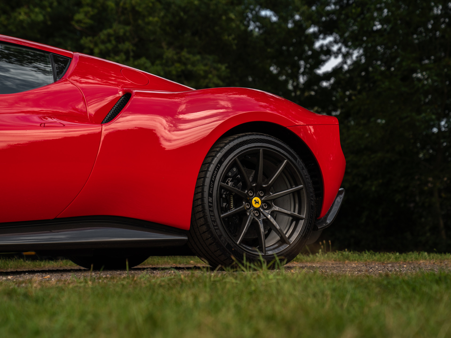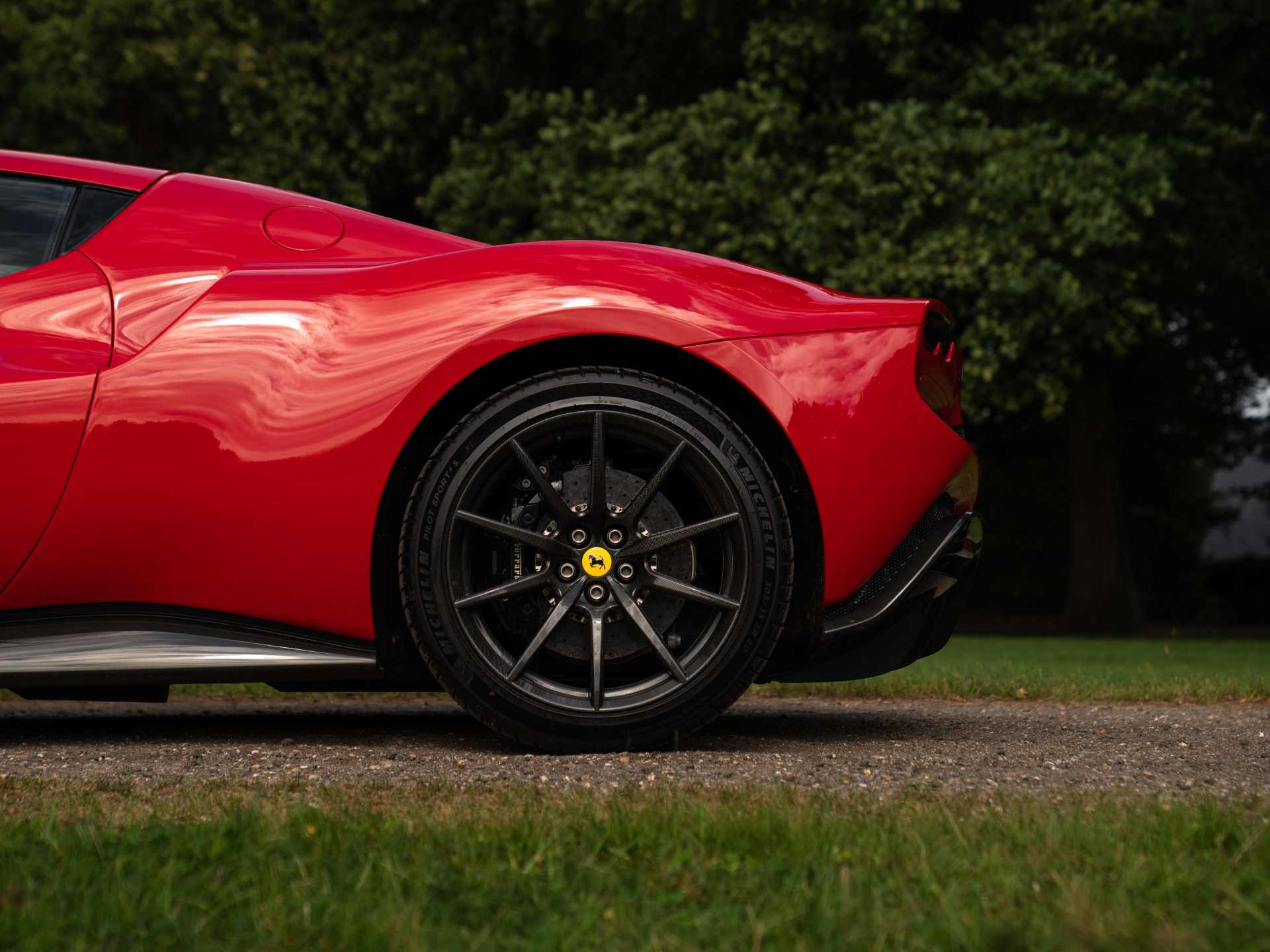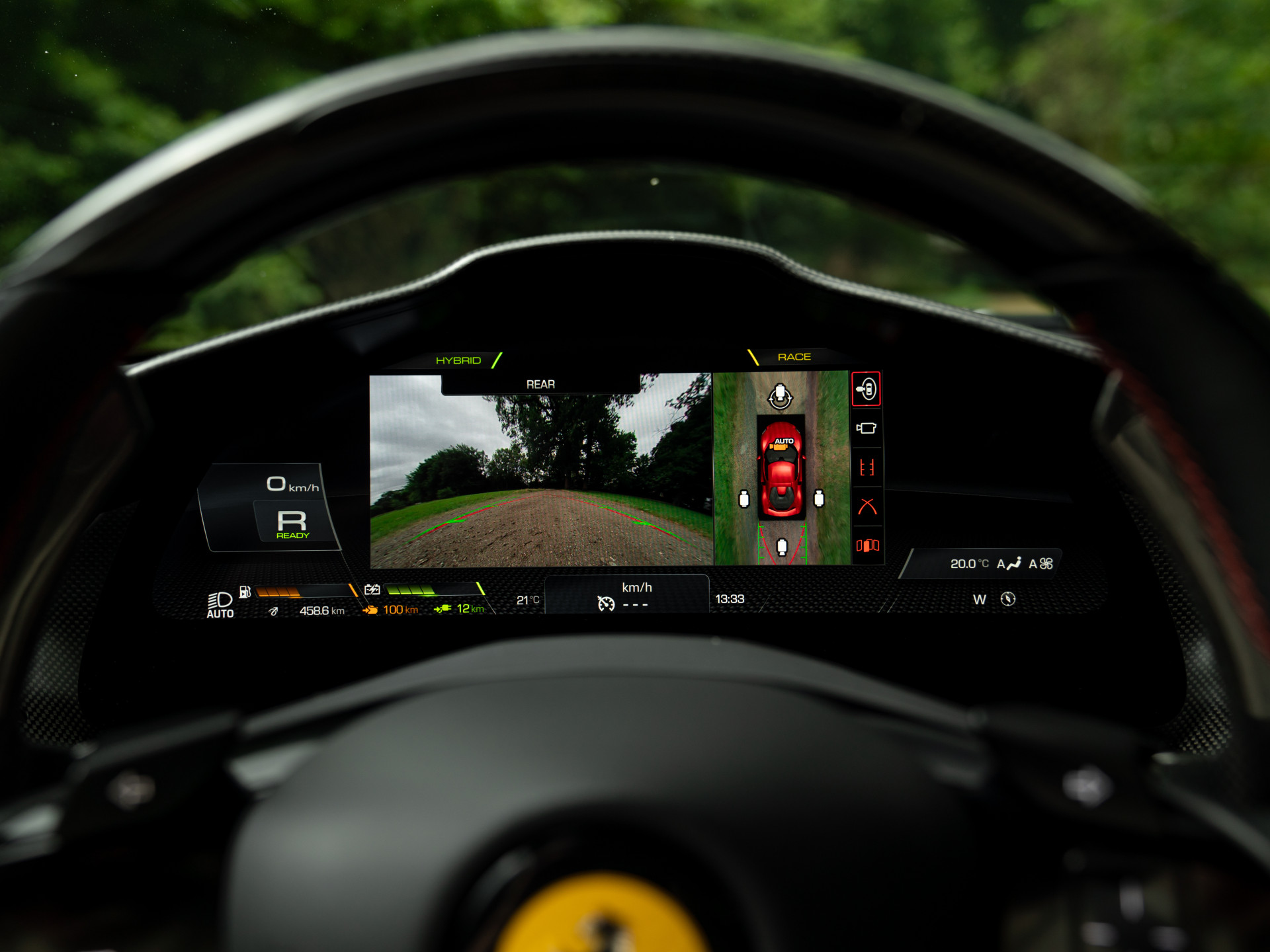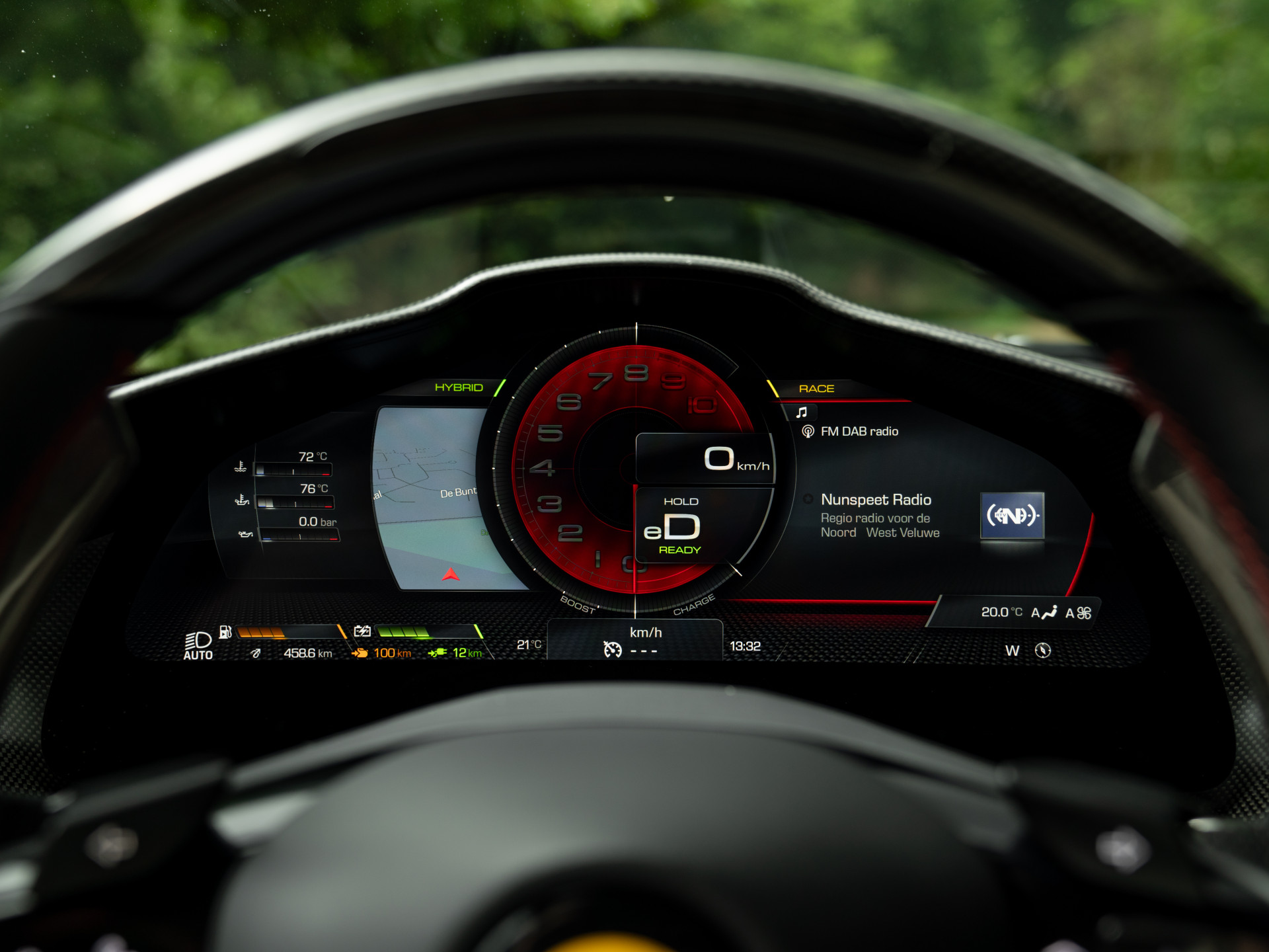 Naast een opwindende carbon uitdossing, staat Assetto Fiorano gelijk aan een grotere achterspoiler voor meer neerwaartse druk, speciale Michelin banden voor extra grip en zogenaamde Multimatic dempers voor optimale stabiliteit. Daarbovenop is onze 296 GTB uitgerust met zaken als Apple CarPlay, een Surround View Camera en draadloze oplader. Dit soort dingen benadrukt nog eens dat deze racer pur sang geschikt is om mee op pad te gaan in een leven naast de baan. Al zal het circuit altijd lonken…