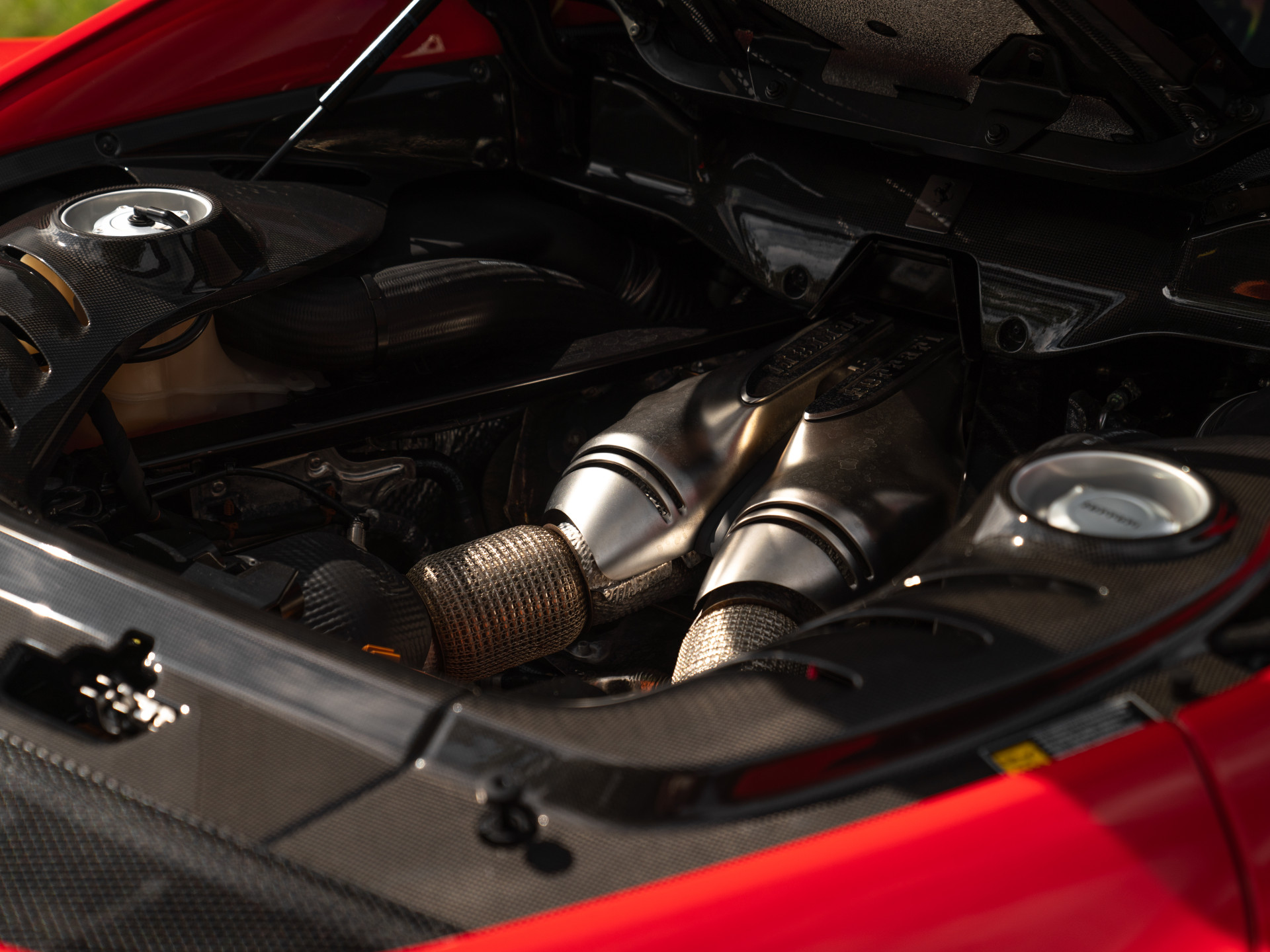 Al met al een nogal heftige machine. En dan hebben ze in Maranello ook nog het lef om het overige deel van de flitsende carrosserie een vurige Rosso Corsa tint te geven… Wauw!