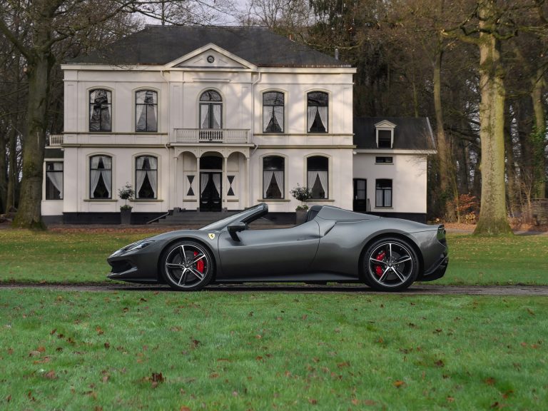 Met deze beeldschone Prins primeur gaat bij ons het dak eraf. Letterlijk, want zie hier onze allereerste Ferrari 296 GTS – inclusief opvouwbare hardtop! Maranello spreekt tegenwoordig over “Classic Colours” als een modern raspaard de tijdloze kleur Grigio Silverstone draagt. En inderdaad: hier staat een klassieker in wording. Vanwege het oogstrelende design, maar ook de elegante aankleding van dit specifieke exemplaar doet een hoop: dankzij het Alcantara interieurpakket gecombineerd met Rosso details bloeien traditionele Ferrari gevoelens op aan boord van de 296 GTS. Daartegenover staat een hypermodern, hightech uitrusting inclusief in hoogte verstelbare (!) Carbon Racing Seats in Size XL, een carbon interieurpakket, Front Radar, Front Lift System, Passenger Display en Surround View Camera. Door al dit moois zouden we haast vergeten dat de 6-cilinder Hybrid techniek achterin het tot een verpletterend vermogen van 830 pk en 740 Nm koppel schopt. Haast gaat u dan ook zeker krijgen met een acceleratietijd van 0 naar 100 km/h binnen 2,9 seconden… Power is niets zonder grip zegt u? Qua aerodynamica leunt de Ferrari 296 sterk op geavanceerde technologieën ontwikkeld in de koningsklasse van de autosport. In dit geval zijn die nog volledig ongebruikt, op een paar fabriekskilometers na. Wie mag zich binnenkort de allereerste eigenaar noemen van onze allereerste 296 GTS?
