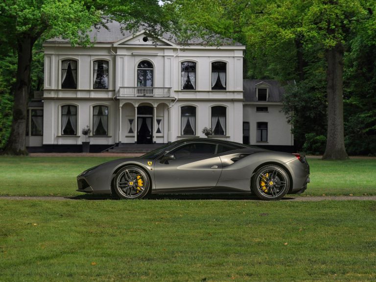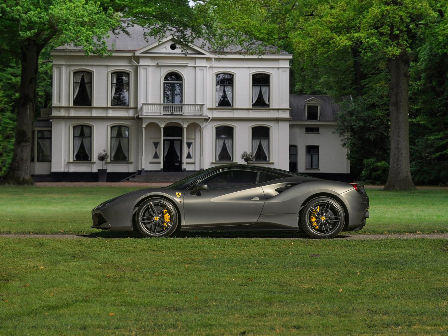 Ferrari staat symbool voor snelheid en emotie. En precies dat laatste is waar deze 488 GTB in uitblinkt. De beeldschone creatie laat zien dat een supercar niet altijd de beste of de snelste hoeft te zijn. Zolang het zijn ziel maar blootlegt. De grijze koets is niet zomaar grijs, het heet Grigio Ferro en is een Historical Color. Met andere woorden: er zit nogal een historisch verhaal achter de elegante tint. De meest exclusieve exoten uit Maranello kregen dezelfde kleur, waaronder de legendarische Ferrari 250 GT/L Berlinetta Lusso by Scaglietti, Ferrari 275 GTB 6C RHD, Ferrari 365 GTB/4 Daytona en Ferrari 330 GTC. Om maar even een illuster rijtje op te noemen… Onze Ferrari 488 GTB sluit zich daar moeiteloos bij aan. Niet in de laatste plaats vanwege de rest van de aankleding: voorzien van Atelier Special Equipment zijn de sideskirts, het dak én de engine compartment lid gespoten in Nero Daytona Lucido. Kennelijk vond de oorspronkelijke eigenaar extra ruimte voor exclusiviteit, want hij liet de engine cover en rear air-ducts uitvoeren in peperduur carbon. Verder staat de 458 Italia opvolger op 20 inch Forged Diamond wielen met daarachter Giallo remklauwen, en komt datzelfde geel terug in de Scuderia Ferrari Shields op de voorste schermen. Afgezien van de afwerking, zien de matzwarte uitlaateindstukken er hetzelfde uit als op elke andere 488. Echter, zo klinken ze niet…