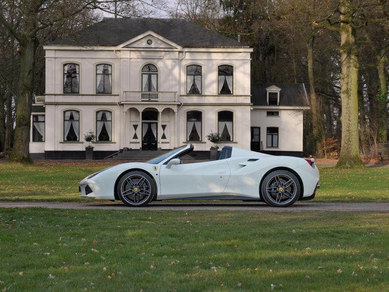 Behalve de verpletterende looks, is het de verpletterende performance die een exoot als de Ferrari 488 zo ongelooflijk begerenswaardig maakt. De 670 losgeslagen paarden zorgen voor een explosieve acceleratie: van 0 naar 100 km/h hoeft niet langer dan 3 seconden te duren. Via 7 automatische versnellingen jaagt de Spider nagenoeg zonder onderbreking richting een topsnelheid van 325 km/h. In bochten doet de geavanceerde aerodynamica fantastisch zijn werk, maar bij het uitkomen van deze bochten is het de Twin-Scroll 8-cilindermotor die elke andere weggebruiker genadeloos in zijn of haar hemd laat staan. Eentje welke uiteraard niet in de buurt mag komen van de maagdelijk witte esthetica van dit exemplaar. Bezoek ons en u bent geheid om.