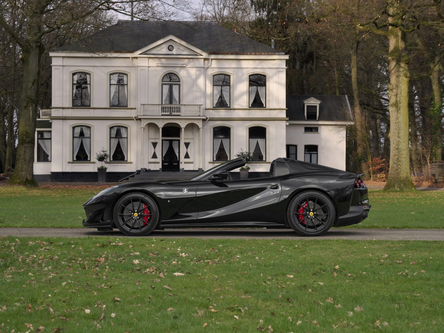 Once you go Nero, the chance you want something else is Zero. Precies daarom ging Ferrari “all the way” bij de aankleding van deze Gran Turismo Spider: naast de uitzonderlijk (en) mooie DS 1250 lak, zijn de Forged Racing Wheels Matte Black uitgevoerd, kregen de tailpipe tips een Black finish en zijn de Scuderia emblemen gemaakt van carbon. Kortom, zwarter dan dit wordt het niet. Hoewel… Typische Ferrari tinten mogen op welke manier dan ook niet ontbreken, al hielden ze het in Maranello wel bescheiden met Giallo naafkapjes en Rosso remklauwen. De mysterieuze uitdossing staat de 812 GTS werkelijk fenomenaal. Het sierlijke, exotische lijnenspel van dit aerodynamische wonder ontpopt zich zowaar tot een heuse Batmobile. Hufterproof en wel, verwijzend naar de complete en professioneel aangebrachte Paint Protection Film. Weinig auto’s die zó uitgesproken zijn in het zwart! Met het targadak eraf blijft de egaal zwarte uitstraling intact, zo blijkt wanneer u instapt…